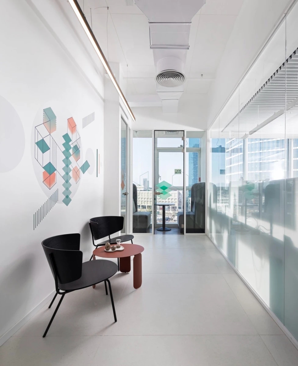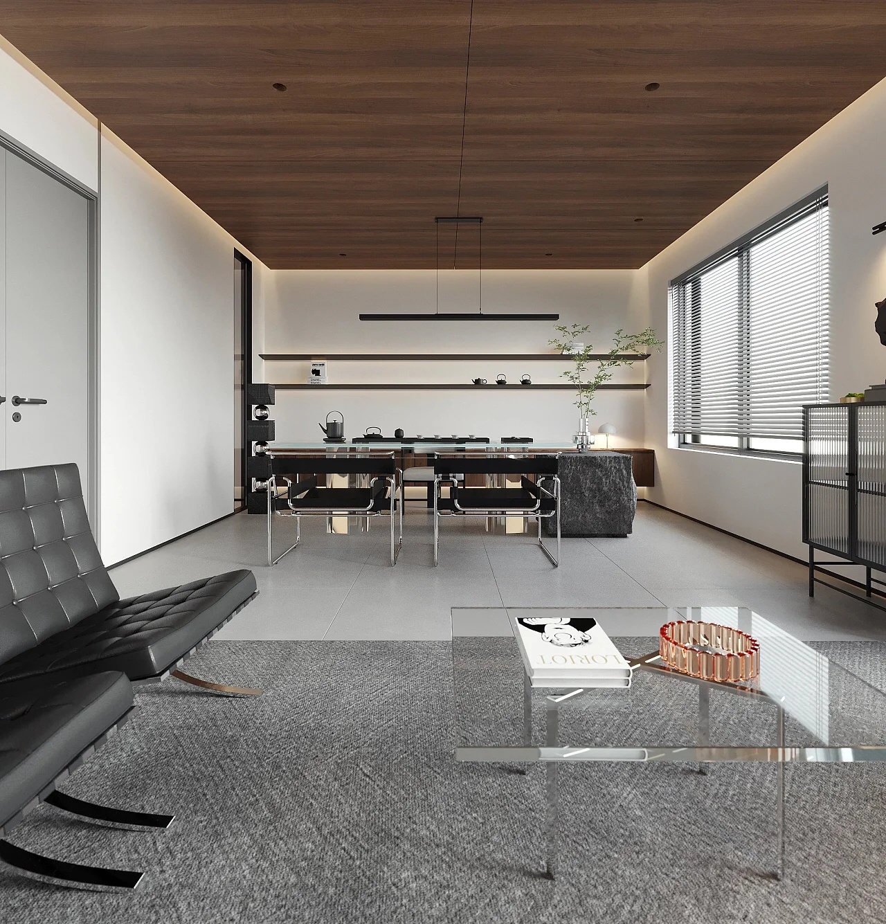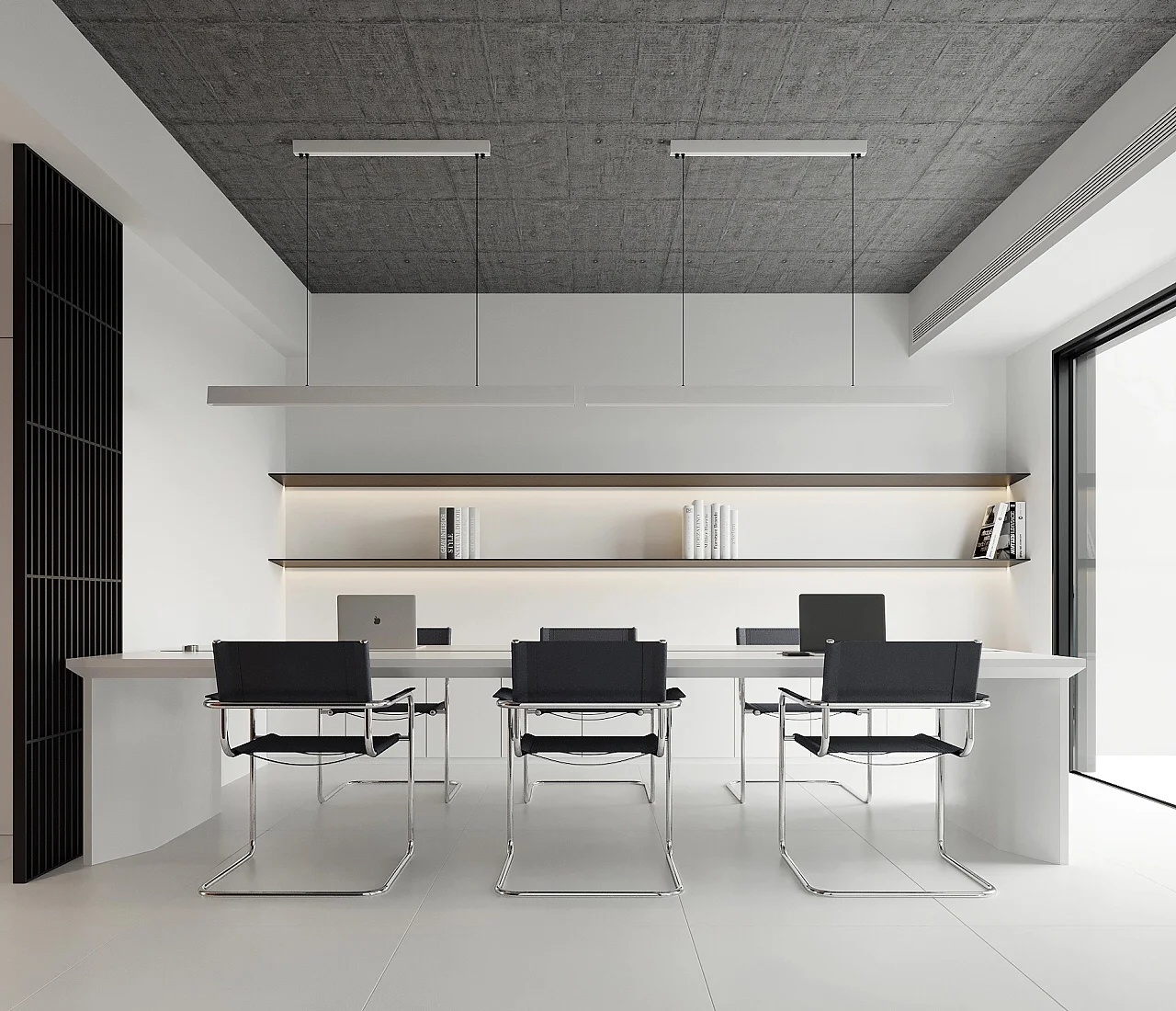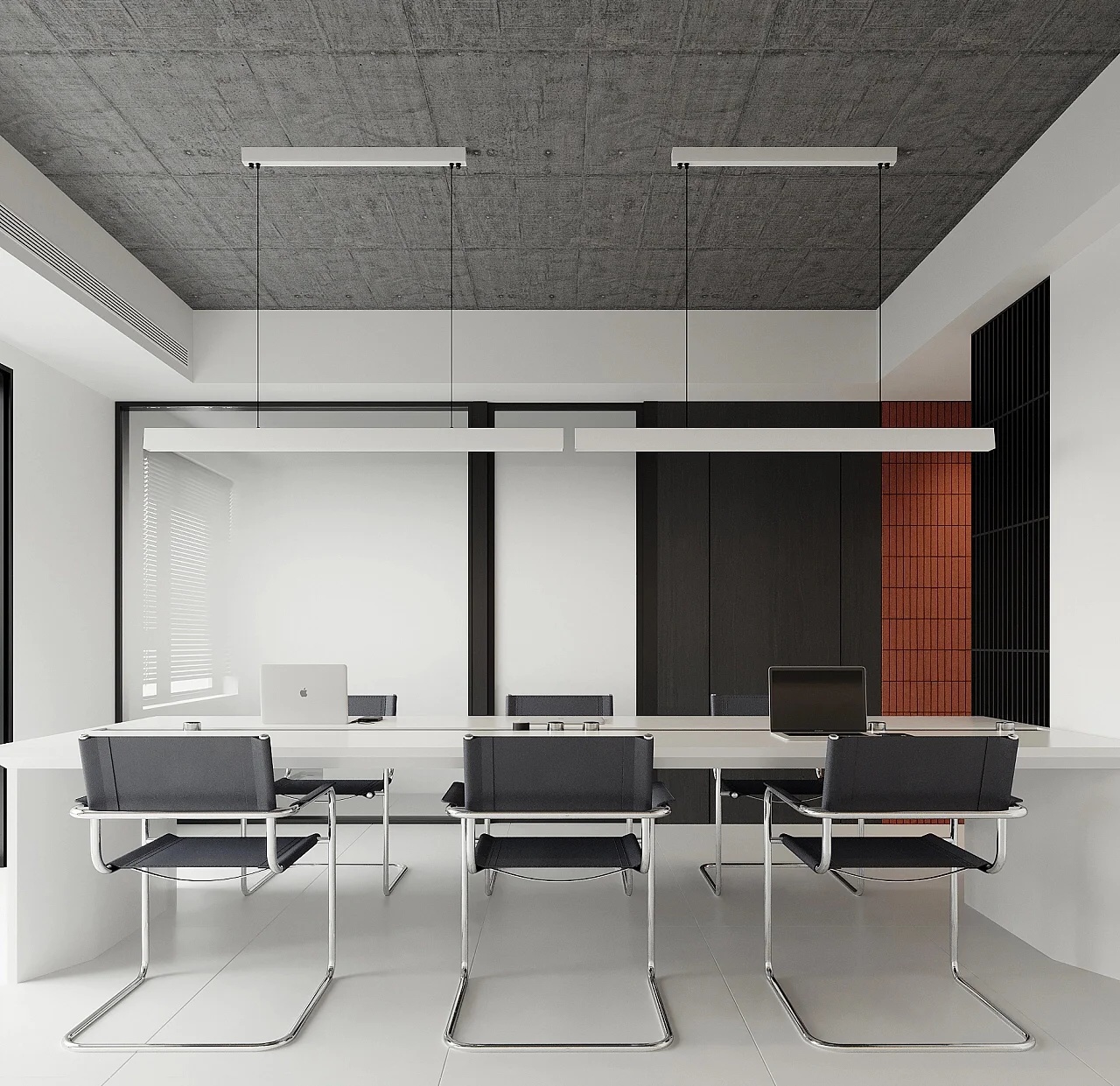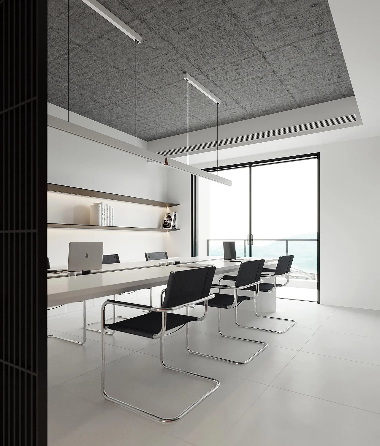 设计师选择了克制的调色板和简单、永恒的材料,创造了凝聚力和复杂氛围,既平静又充满活力的工作环境。设计师根据公司的品牌书选择了一个简单的方案,偶尔使用天然木材。这创造了一种宁静而鼓舞人心的氛围,并有助于突出建筑的精确几何形状和干净的线条。整个空间使用的材料都是耐用和高品质的,但也不引人注目,创造了一种既实用又美观的低调奢华感