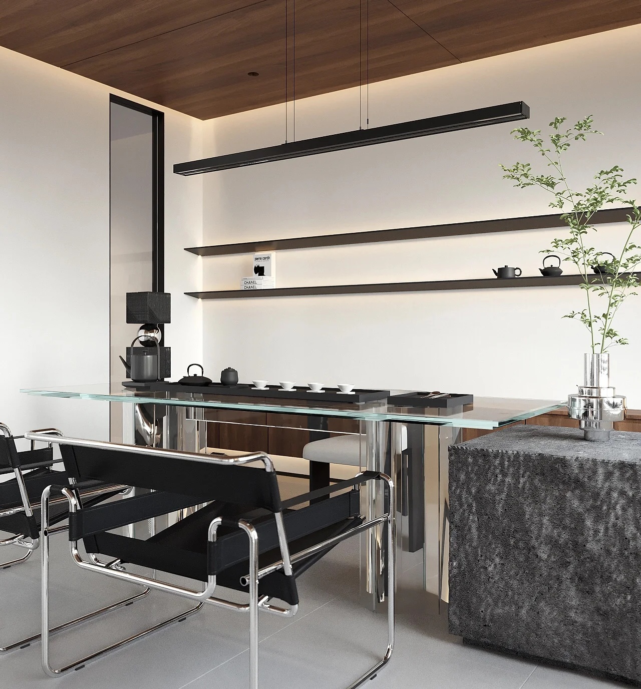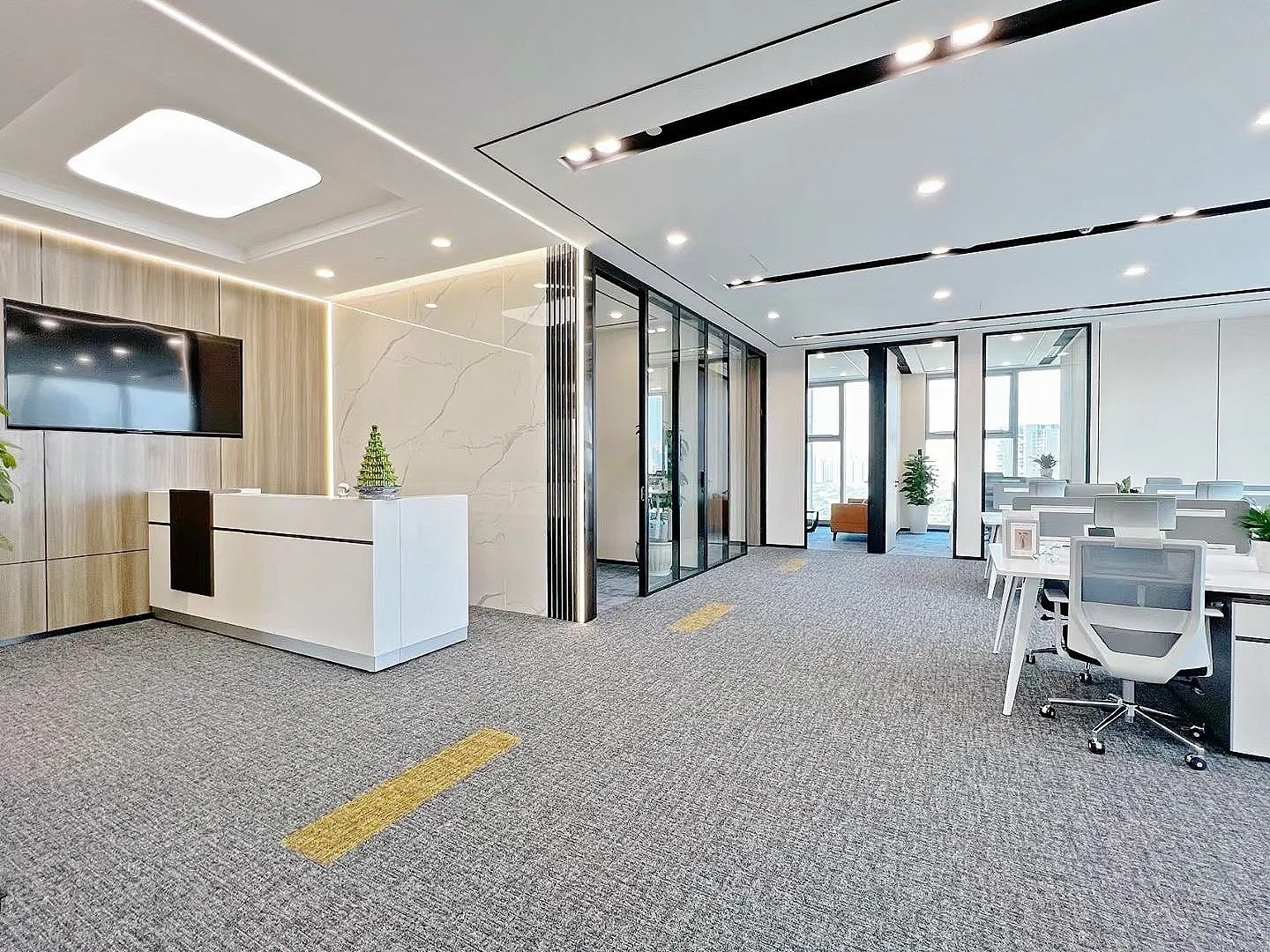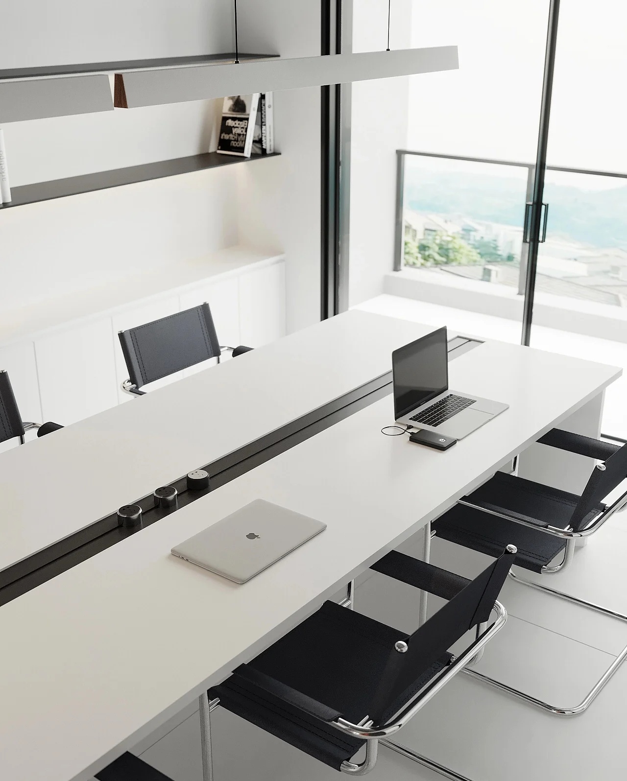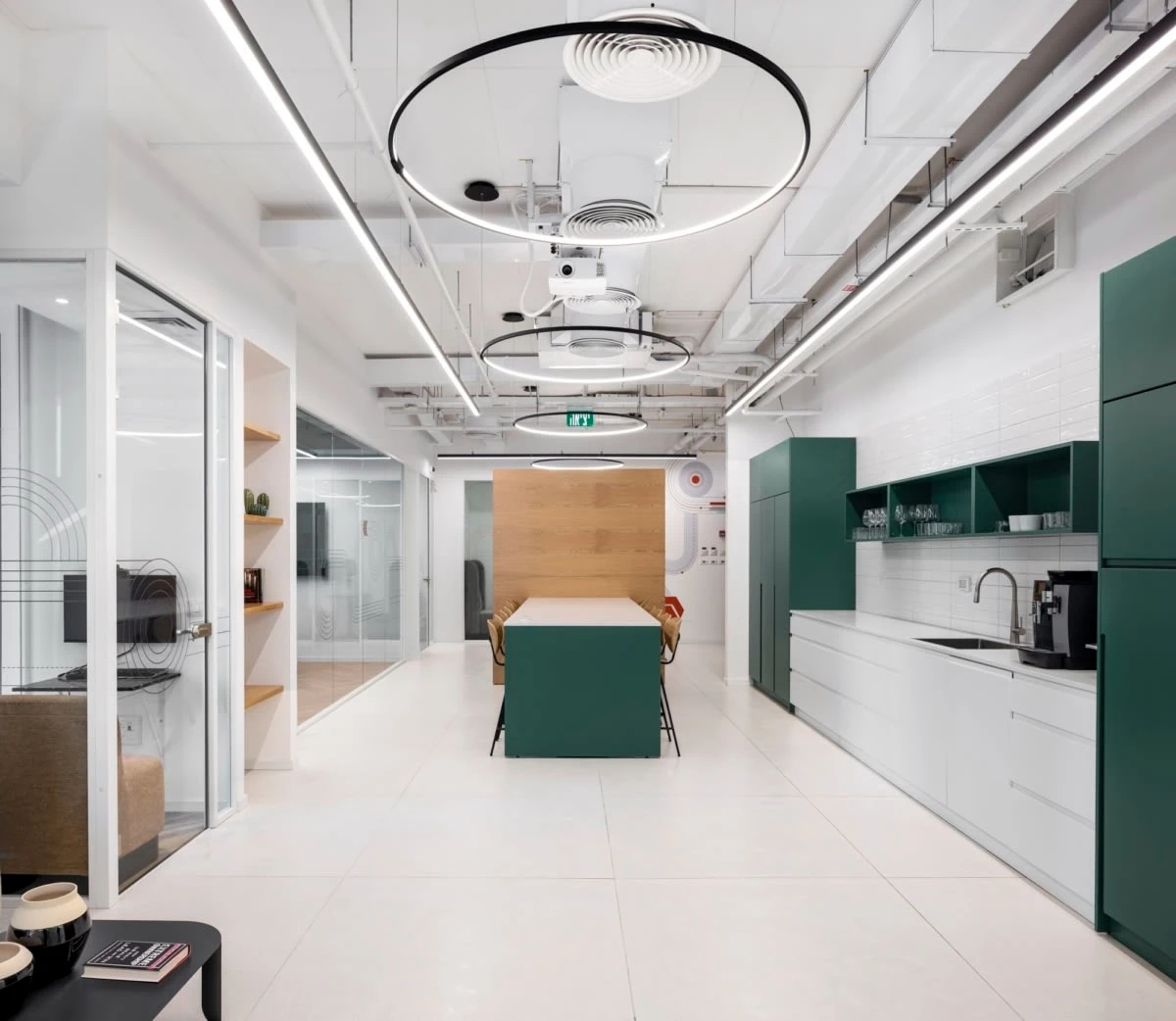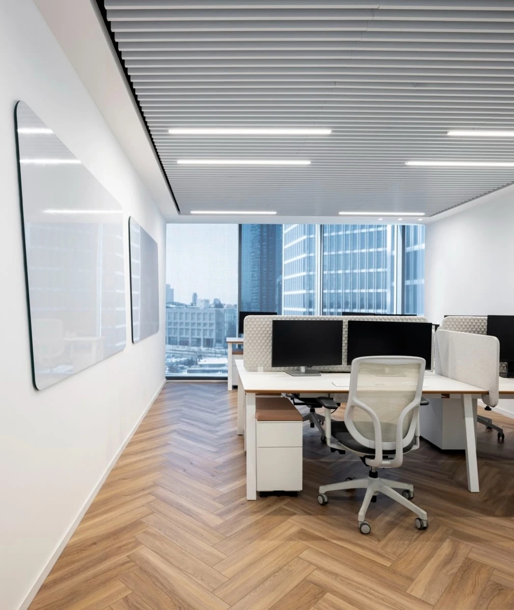 设计师选择了克制的调色板和简单、永恒的材料,创造了凝聚力和复杂氛围,既平静又充满活力的工作环境。设计师根据公司的品牌书选择了一个简单的方案,偶尔使用天然木材。这创造了一种宁静而鼓舞人心的氛围,并有助于突出建筑的精确几何形状和干净的线条。整个空间使用的材料都是耐用和高品质的,但也不引人注目,创造了一种既实用又美观的低调奢华感