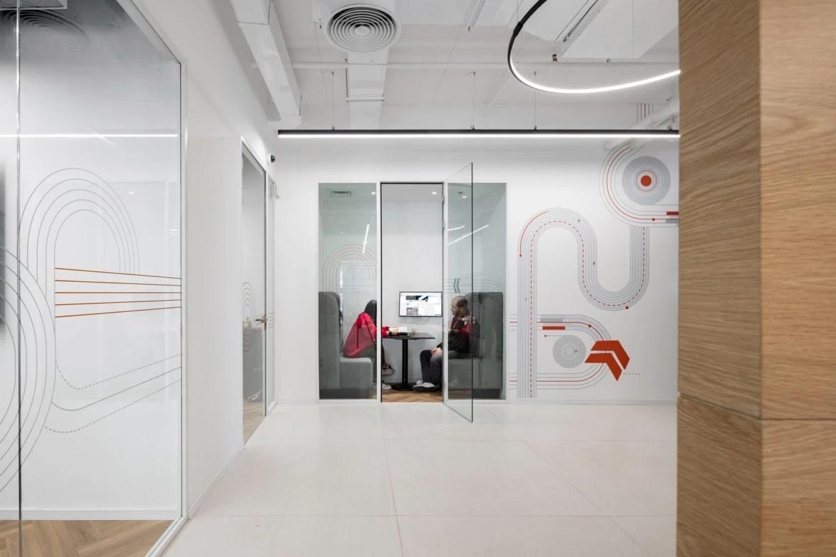 除了使用克制的调色板和简单、永恒的材料外,该设计还以各种功能空间为特色,以满足公司及其员工的特定需求。这里有小型的“一对一”房间,销售和电话展位,大型团队房间,开放式工作站,供个人和协作工作,以及私人会议室,供更集中的讨论。开放式布局非常适合正在进行的工作的协作性质,而私人房间则提供了安静的空间,可以集中注意力和保护隐私。