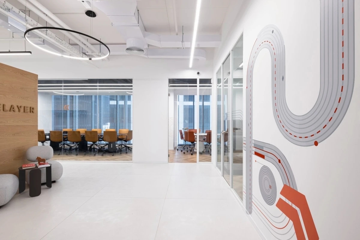 关注细节和使用低调而优雅的饰面。家具和照明是光滑和简约的,干净的线条和简单的形式补充了建筑,而不减损它。整个空间使用的材料都是耐用和高品质的,使得这个科技公司能够在一个舒适而充满灵感的环境中工作