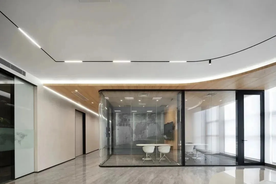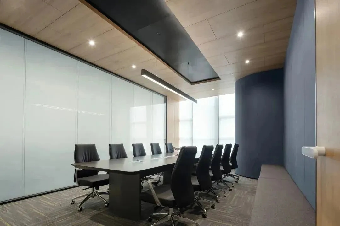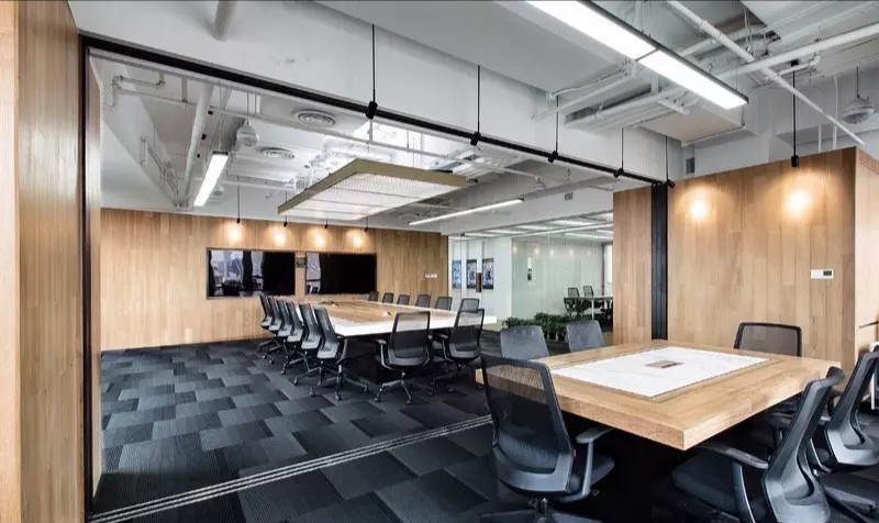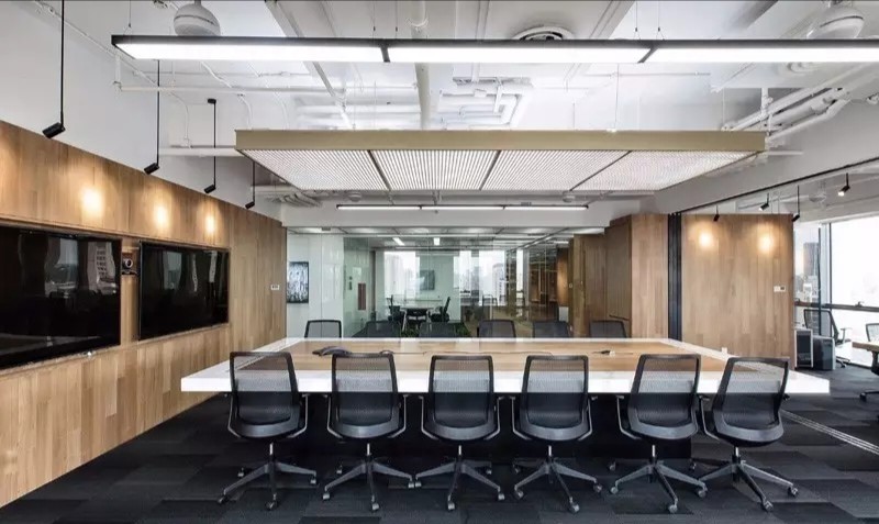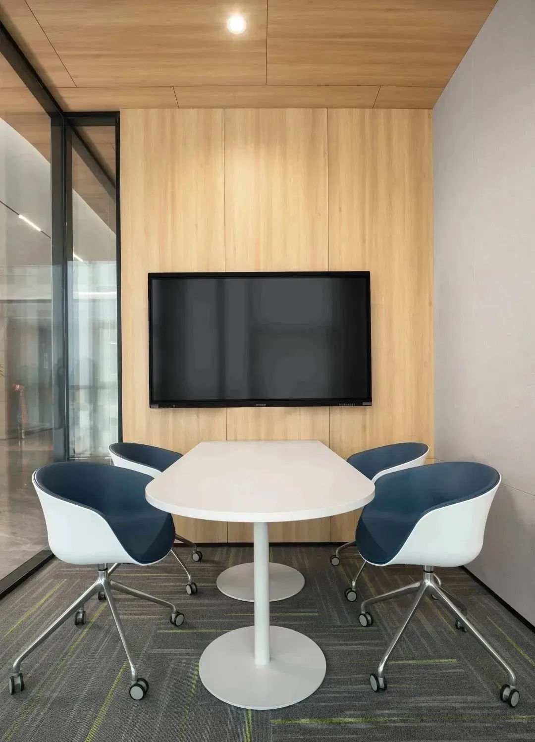 会议室以黑白灰+原木色调为主,整个空间看上去非常干净利落.