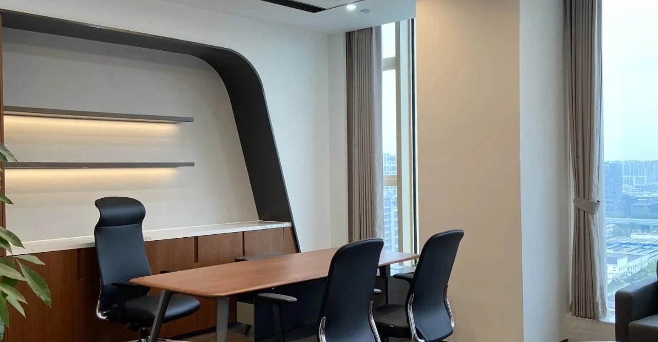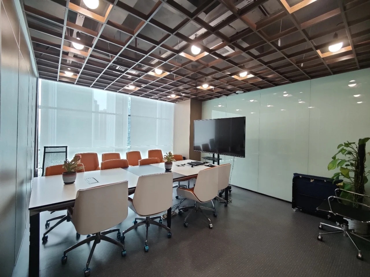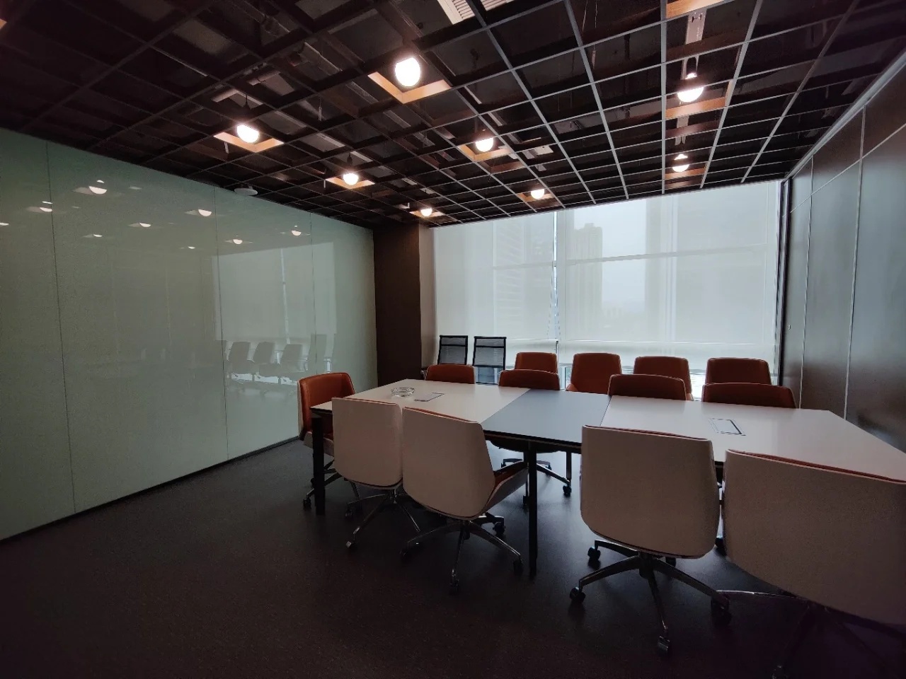 会议室以黑白灰+原木色调为主,整个空间看上去非常干净利落.