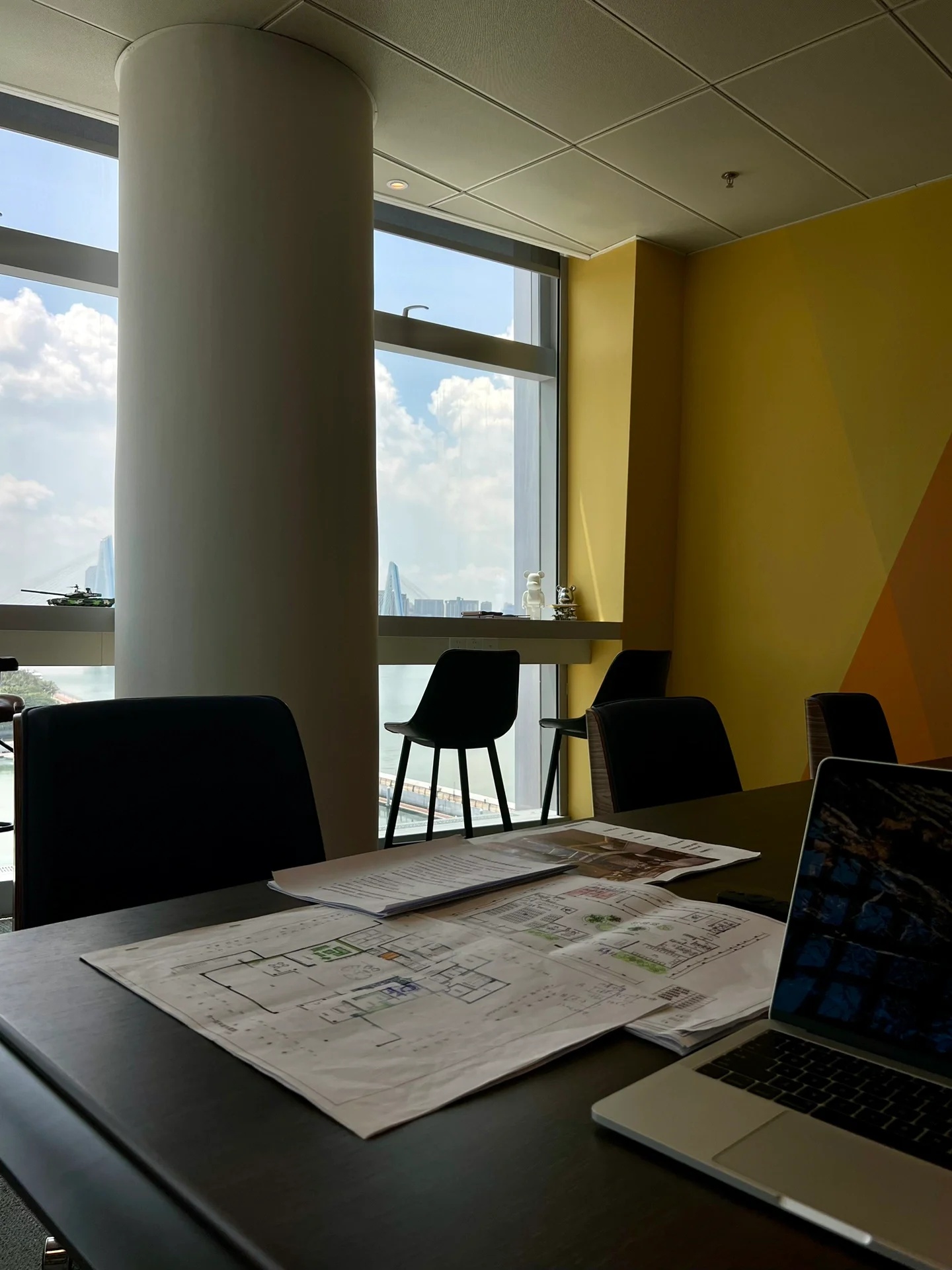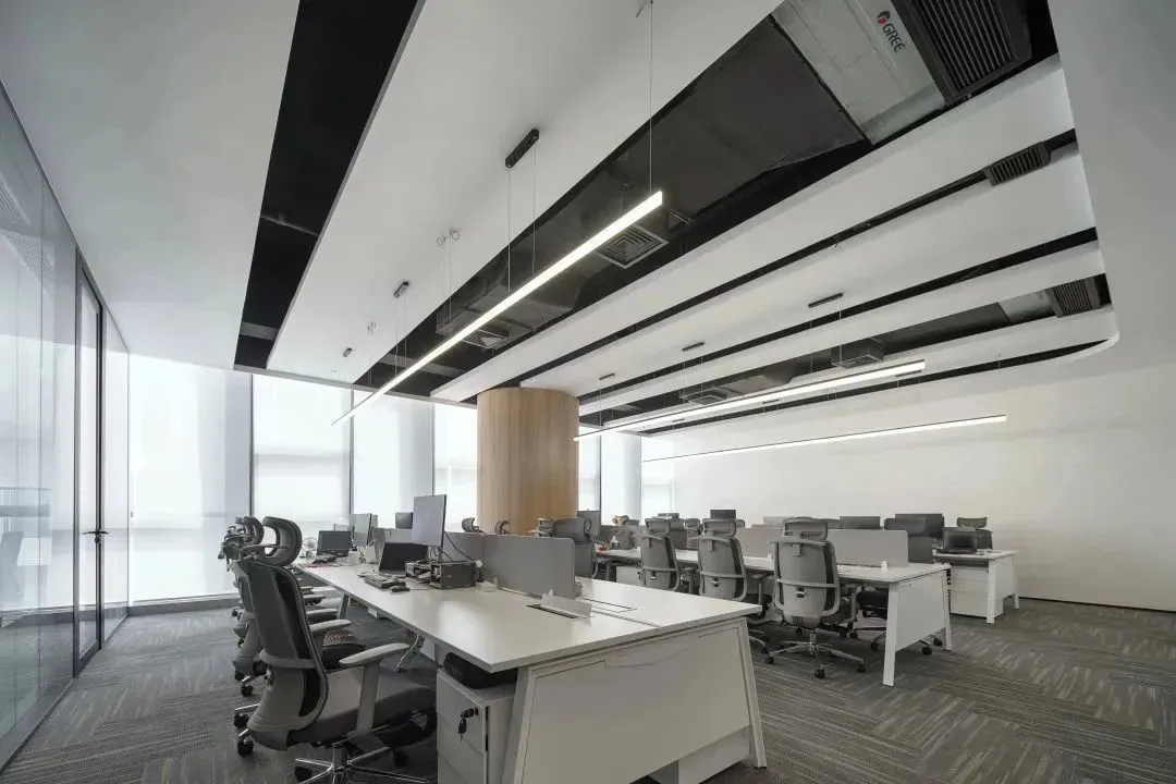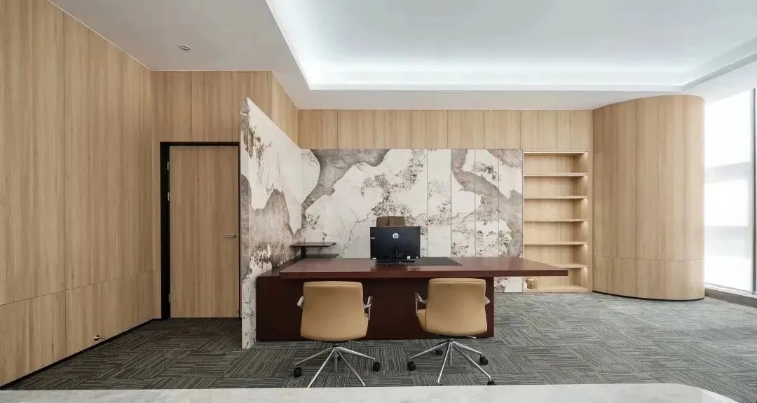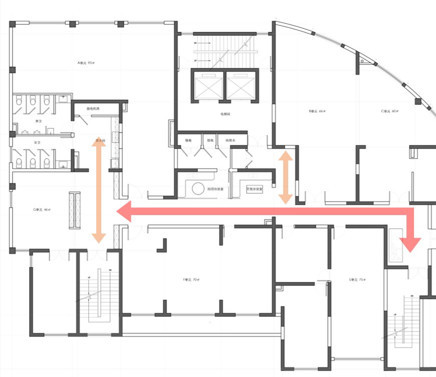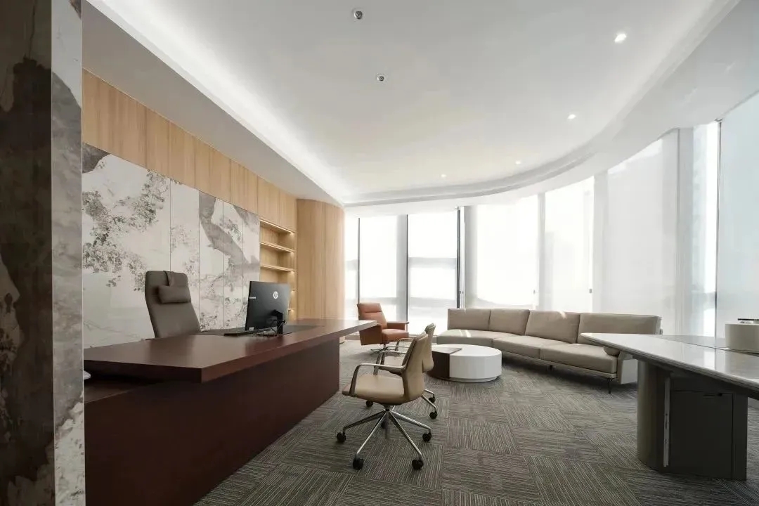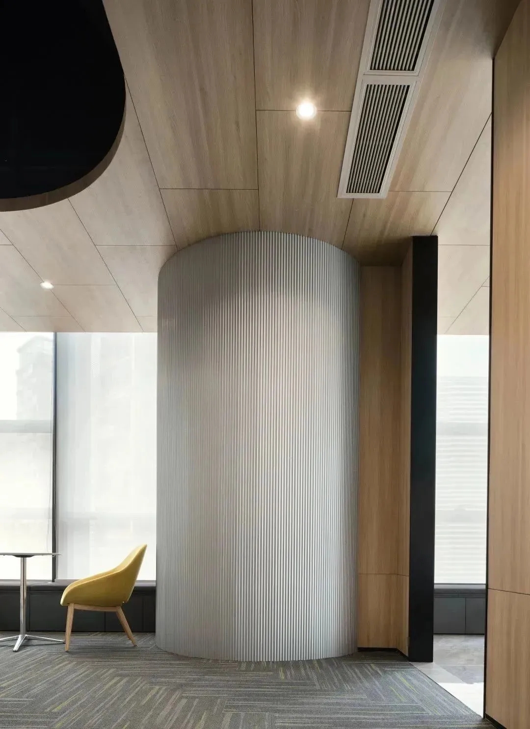 了解两个公司的需求之后,平面功能布置上采取了“左中右”的结构,既左右为两个公司各自的使用空间,中间为共享空间、如大会议、前台等候区等。