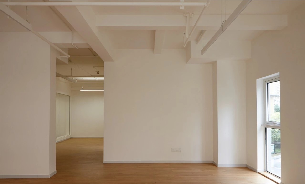 墙面材料使用了超白磨砂烤漆白玻,同soho内大量使用的烤漆白玻形成呼应、却又更加柔和,从电梯厅空间的高反射,过渡到前台接待区的温和低反射。