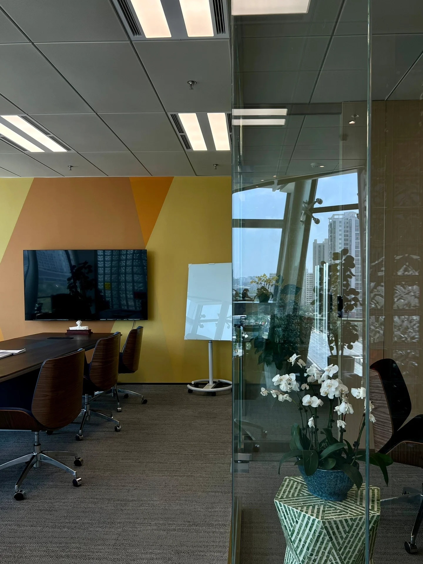 98寸液晶屏前的一件点睛家具,选用了西班牙高端办公家具品牌Viccarbe的Seasons系列产品,设计师Piero Lissoni。定制的Kvadrat百分百纯羊毛面料,这个组合应该是上海唯一的一件。