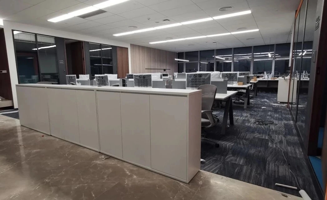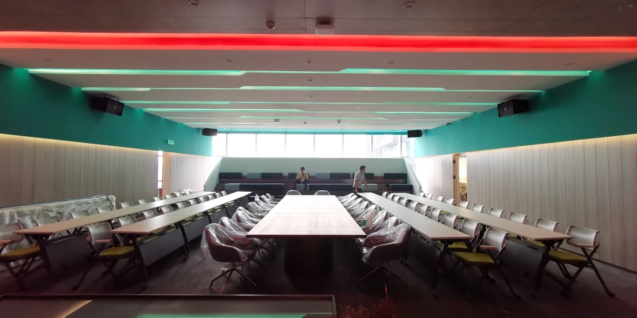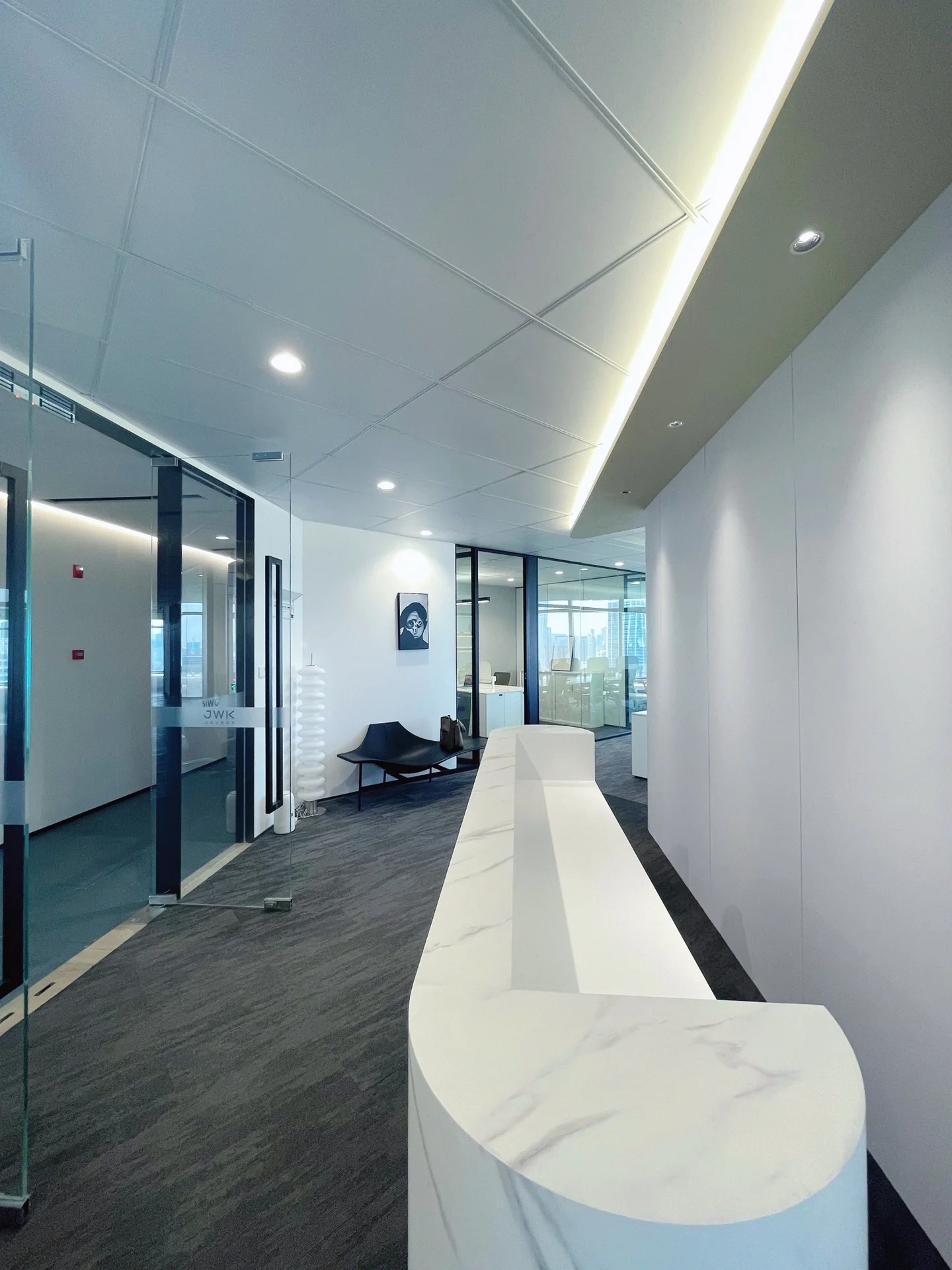 设计师将空间合理分割,使之拥有二十余个相对独立的办公和会议区域,以及餐区、休息区、洽谈区…还有足矣容纳150人的阶梯会议室,多种功能区域的划分组合,让办公节奏得以张驰结合,并为其提供了照明、办公家具等整体空间规划方案及落地,营造出一个知性的、优雅的,具有浓郁时尚感,但又充满着商务气息的现代化办公空间。