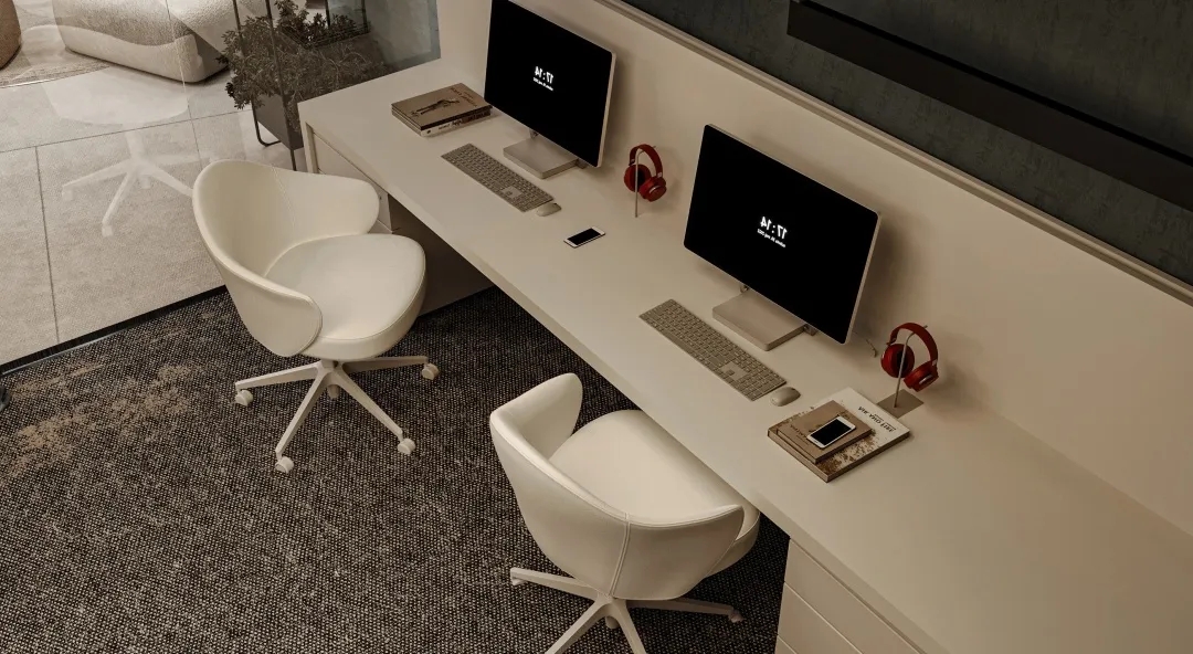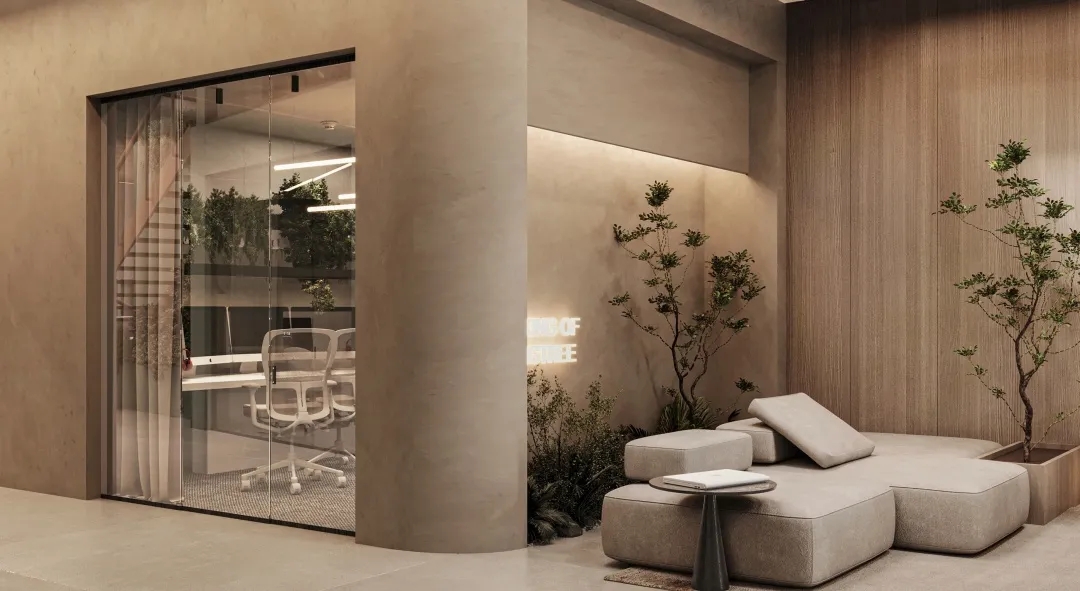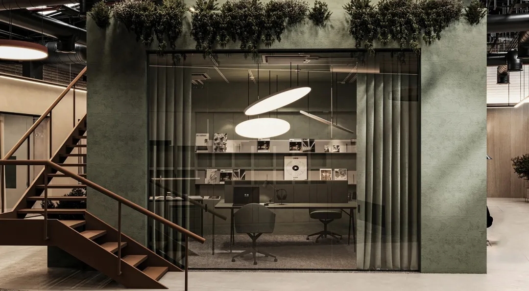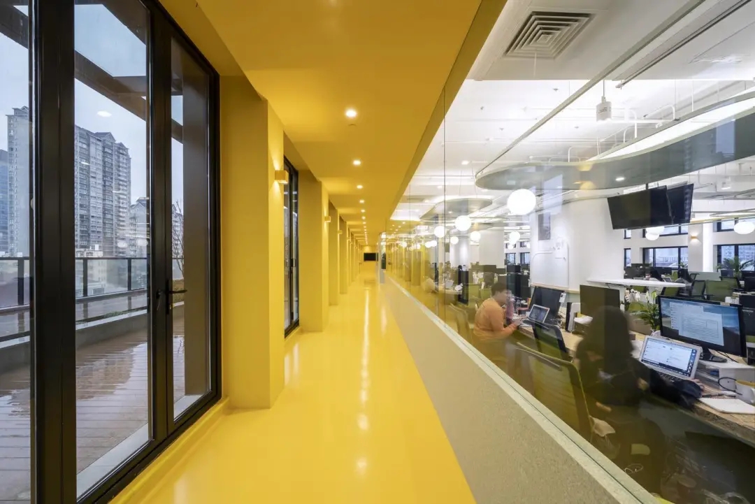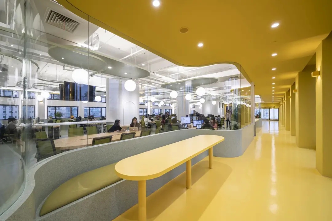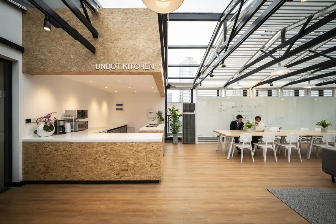 本案的设计概念来源于植物细胞中不可或缺的线粒体和叶绿素。线粒体负责提供能量,叶绿素负责光合作用。这样的概念暗示了“公司提供环境,员工负责创造”的企业文化,将员工与企业的共生关系清楚地展示出来。unbot是一个年轻有活力的团队,员工的平均年龄只有20多岁,他们虽然年龄相仿,像是“复制”出来的,但他们的个性与能力却完全不同。年纪相仿让他们可以紧密地结合在一起,彼此理解;个性差异则让每位员工都能发挥自我的创造力。室内大量使用的黄绿两色也是为了契合这个设计的主体。黄色代表线粒体,绿色代表叶绿素。这两种颜色也是unbot独有的标志性色彩。