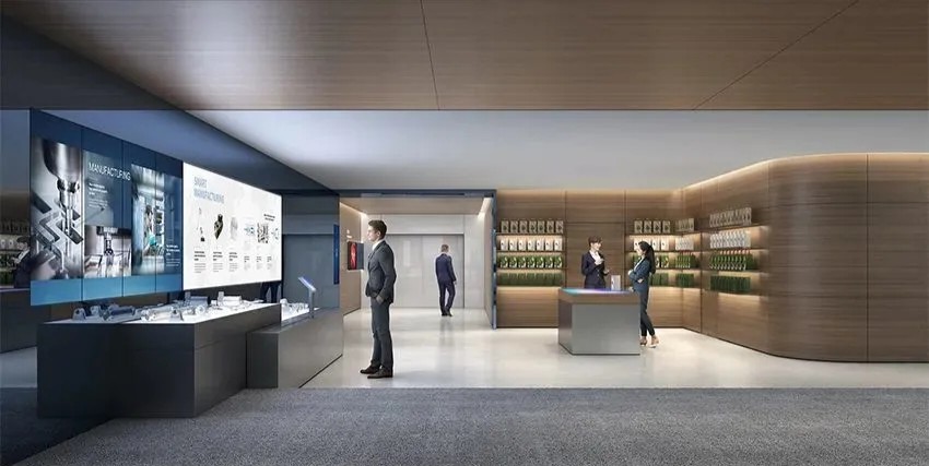 设计思考的重点关注到客户洽谈的实际需求,我们希望随着参观的递进,产业展区在“当下、此地”就可以转变成一个自由的对话空间。