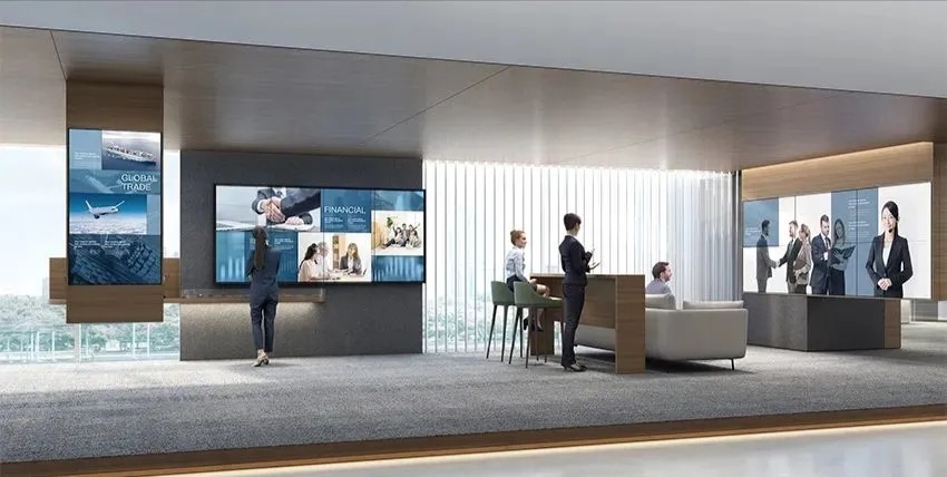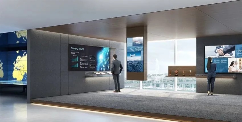 大数据信息互动屏丰富了企业现代化发展的内容深度,观众将在此见证国贸一路以来厚积薄发的荣耀风貌。
