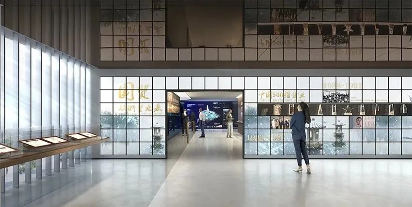 犹如曲水流觞,移步间的对话延续了未来的可能性,观众走在集团开阔广泛的产业布局中时,也在无形中开启了对未来共同的合作构想。