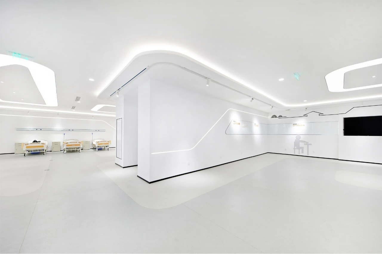 入口造型灵感来源于开启健康之门,点明展厅的生命主题。门头造型和周围的景观对应,整体感强,灯光射线从内部延伸贯穿空间,使展厅框架感更强,寓意生命和自然都有遵循的规律可言。