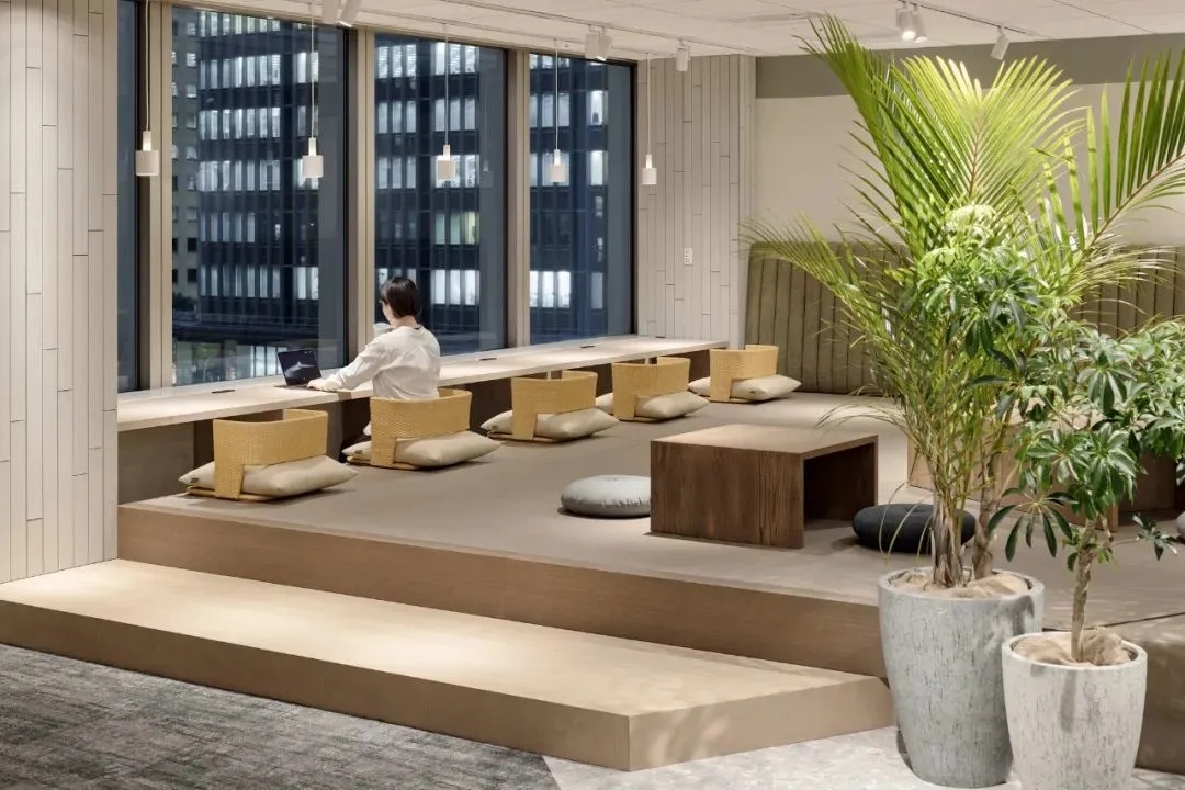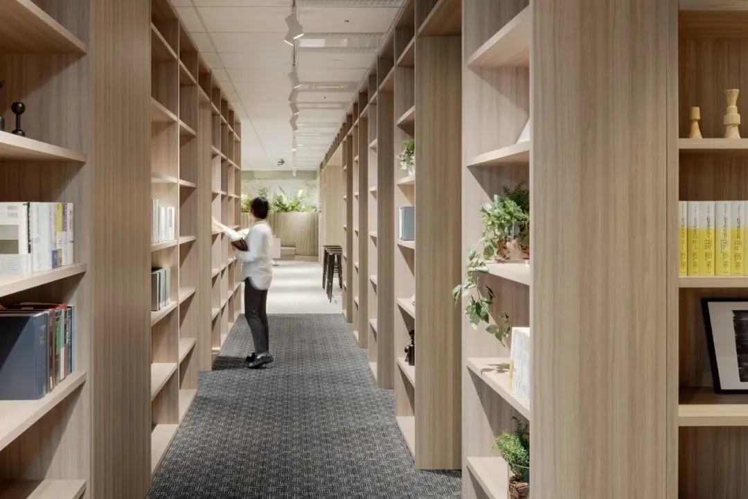 绿植可以给工作环境带来一个自然的、亲切的感觉,所以在休闲空间加点绿色非常的适合。绿植不仅可以提高空气质量,还有助于缓解员工的压力和心理疲劳。在这种设计中,可以在办公室墙壁和桌子上放置一些绿叶植物、花卉或其他可爱的小植物,这能够为员工创造一个更加自然的氛围,并制造出一个富有活力的工作场所。