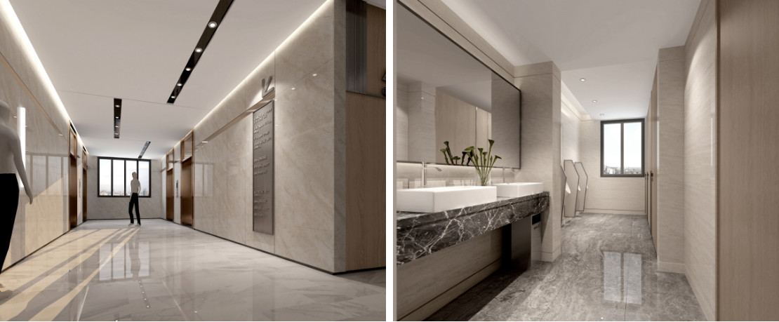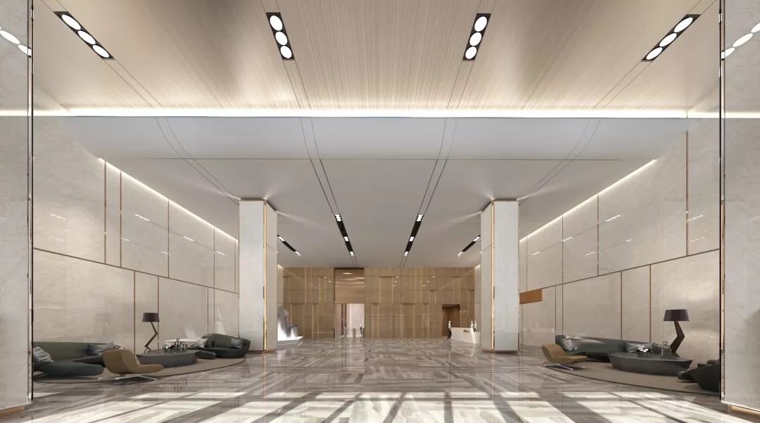 室内空间设计结合建筑概念,沿用建筑的方式延伸至室内,将空间进行大块面的重构,并用艺术手法将空间构成原理应用于空间的每一个细节,将企业文化、空间装饰艺术、标示系统完整的融入建筑;整体风格呈现出稳重大气、现代简约的空间特质。