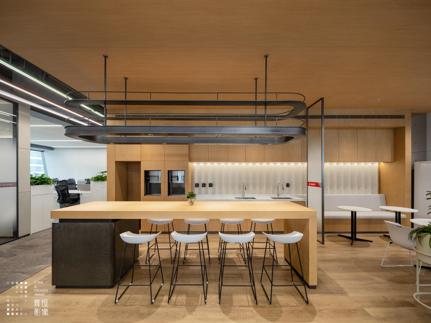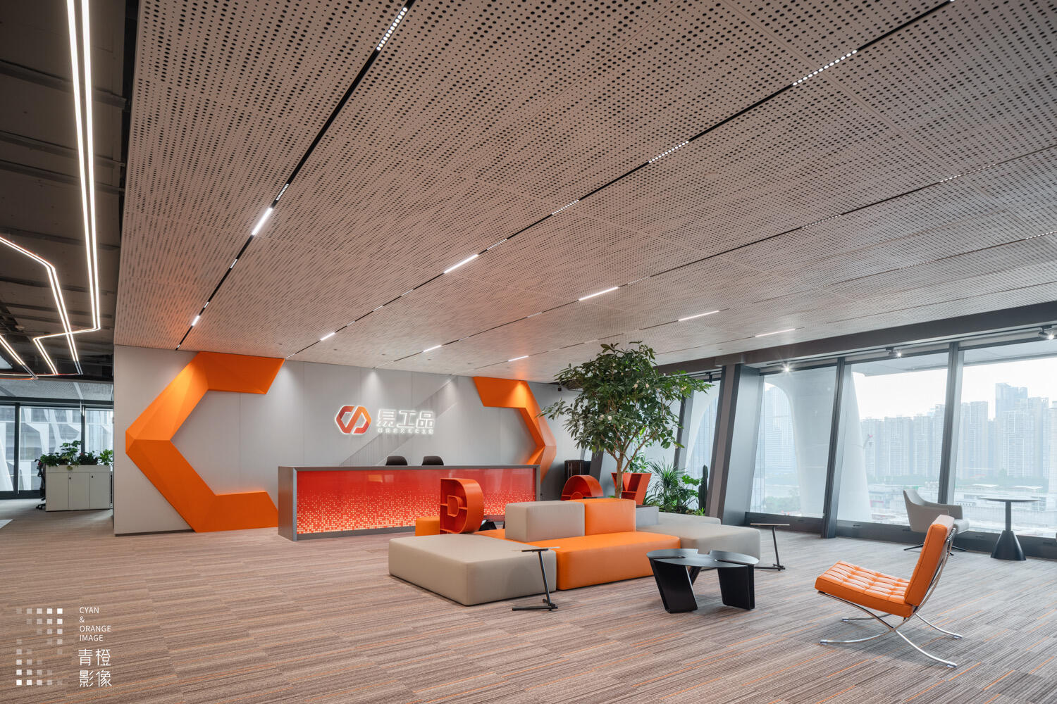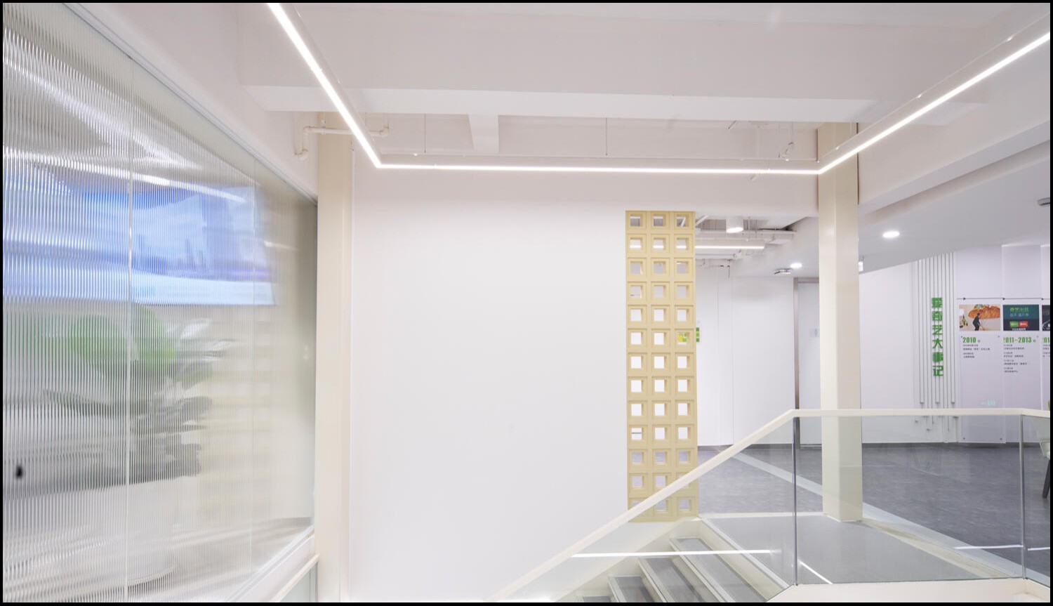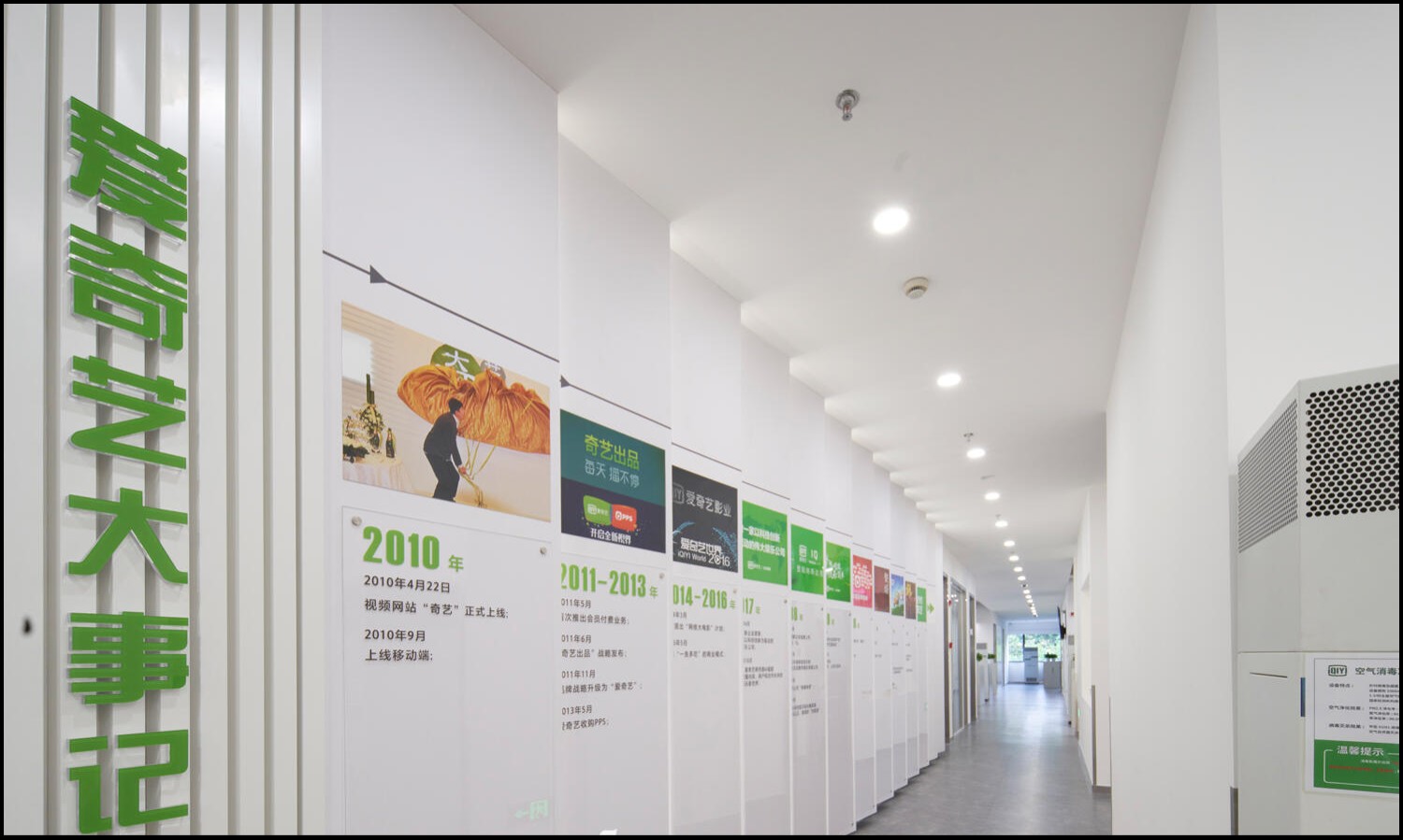 此外,建筑外立面加装炫酷的超大LED透明拼接屏,分时段播放多媒体宣传片,也给具有年代感的园区注入了朝气澎湃的动感活力。整个项目通过线条、块体与光影融合的设计表达,结合园区建筑形态,汇入爱奇艺企业文化及品牌理念,打造出一个充满企业个性氛围的灵动空间。