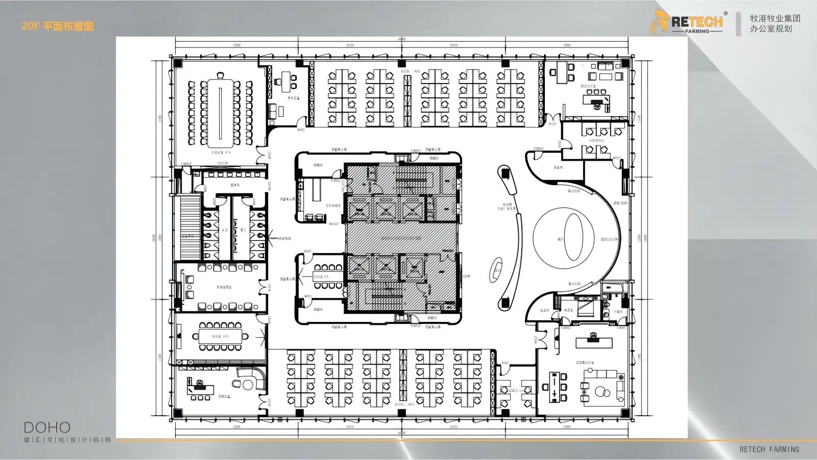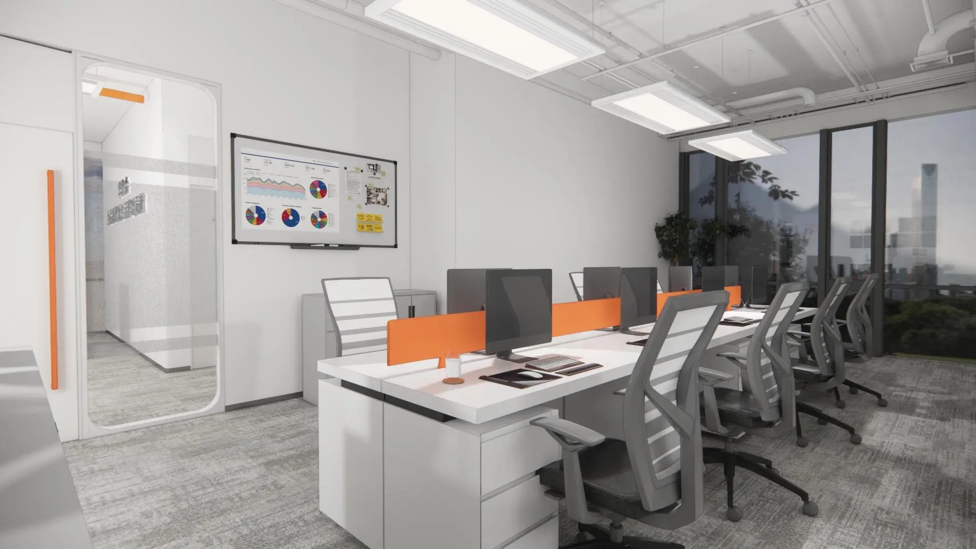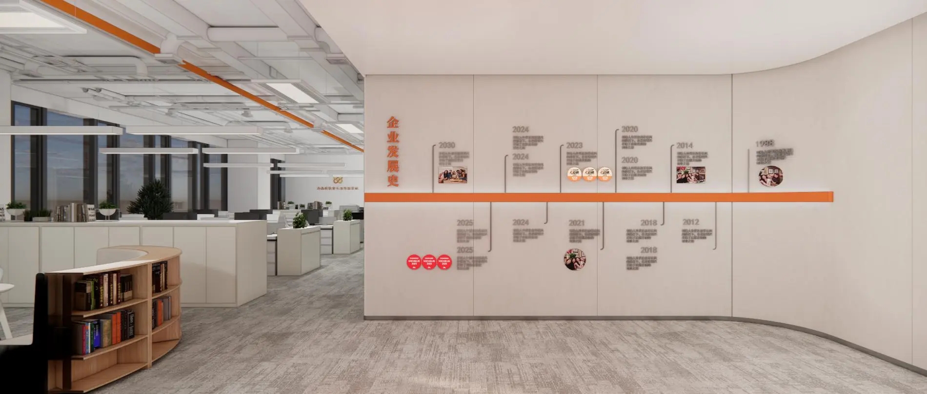 前厅作为一个欢迎枢纽,奠定了开放与连接的基调。橙色作为品牌色被点缀于各个角落,为整个空间注入活力,既彰显出积极向上、蓬勃生机的品牌个性,也寓意企业如朝阳般冉冉升起。