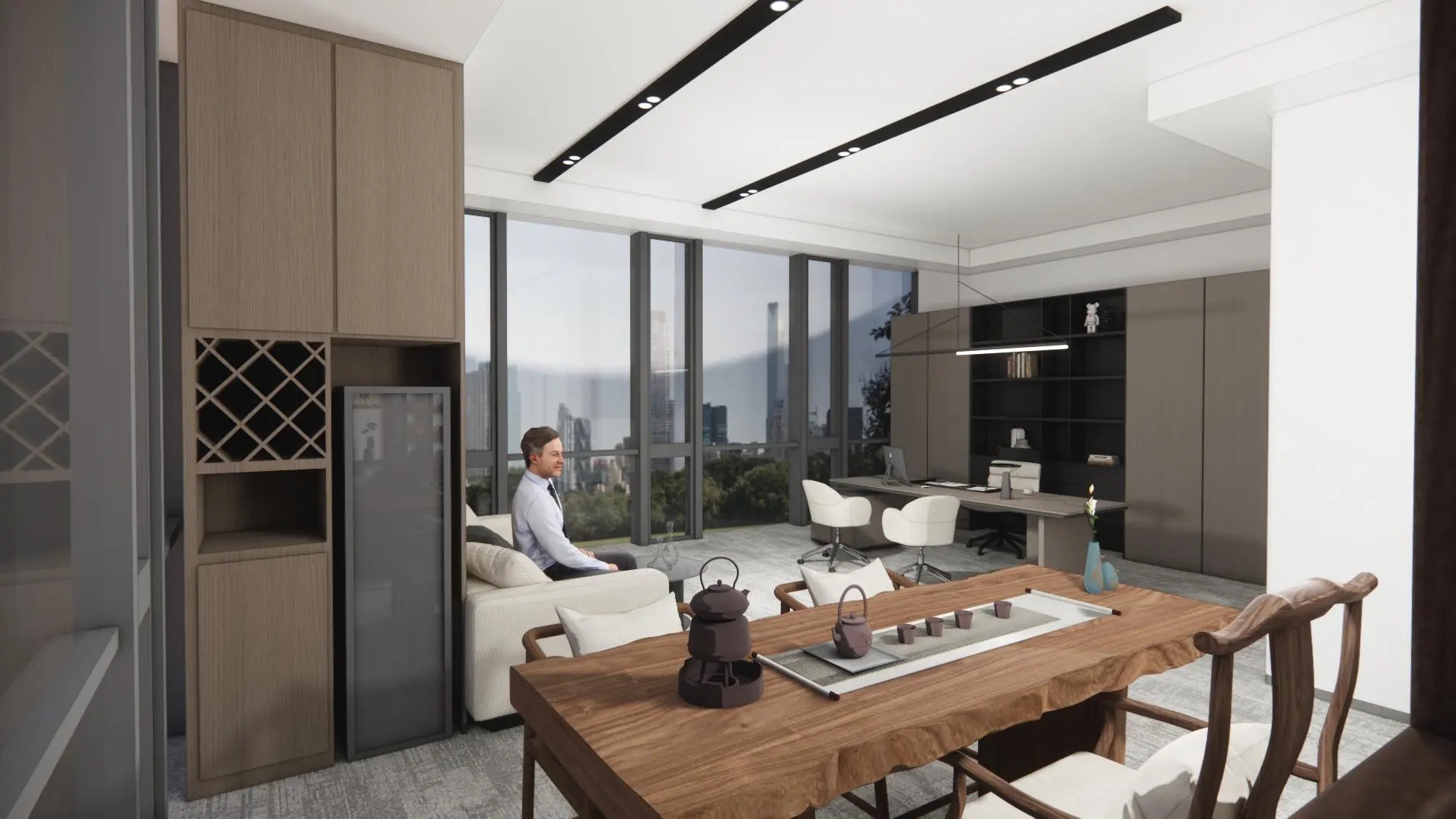 总经理办公室以低调内敛的笔触,勾勒出沉稳而不失温度的氛围。温润的木色平衡空间的韵律,令质感在素净中悄然流淌,每一处细节都彰显着内敛的奢华。