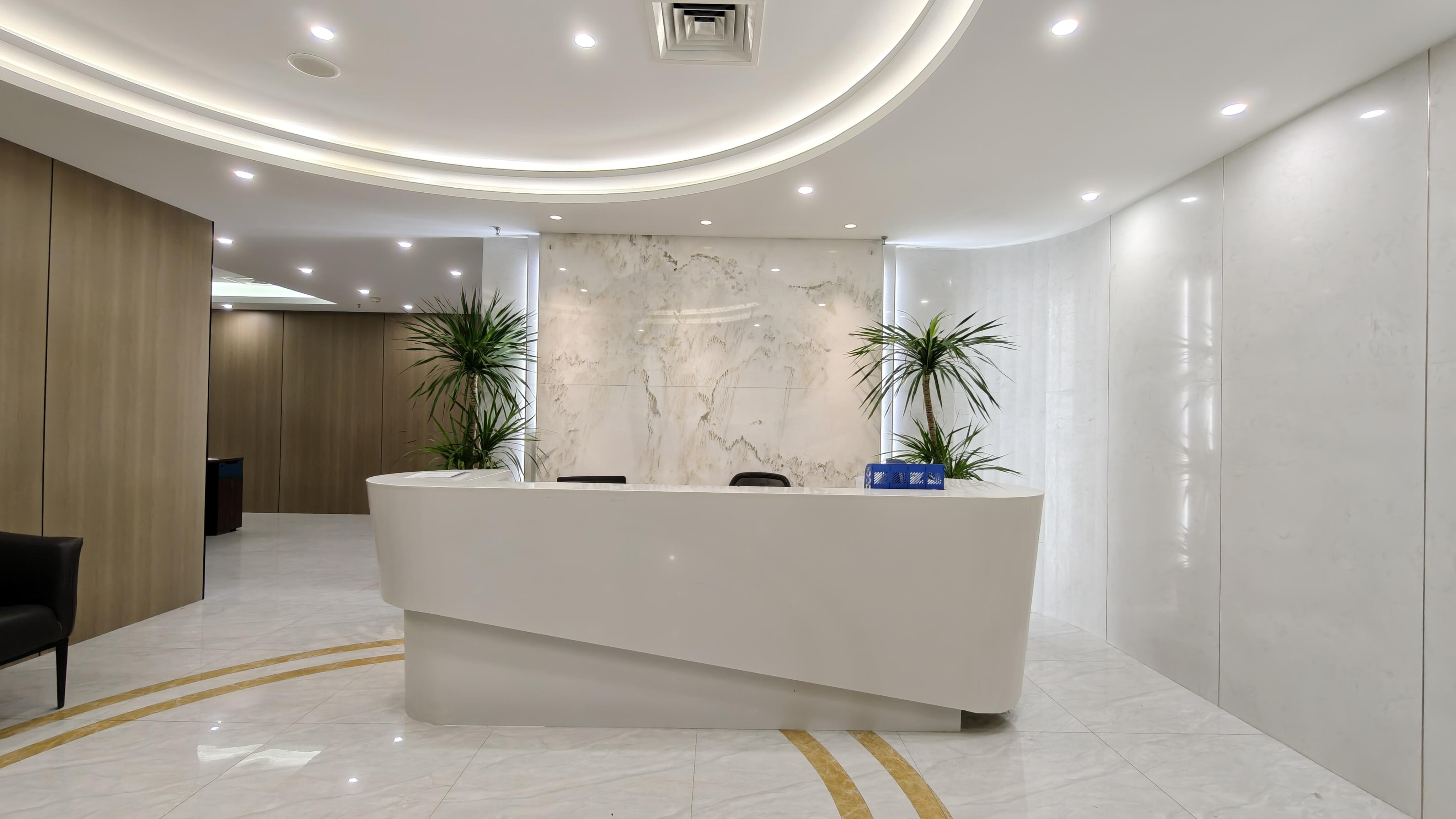 前厅宛若精心编排的戏剧舞台:利落的线条、亮眼的橙色玻璃前台与精心调控的照明,创造出独特的视觉景观,奠定了整体空间基调,为员工和客户构筑起情感联结,并转化为一场兼具情感共鸣与视觉沉浸的空间体验天然材质如木材、混凝土与织物奠定了整体空间的平衡基调,灵活的布局和雅致的材质运用则营造出亲切温馨的氛围,确保了工作效率与舒适体验能够和谐共存。