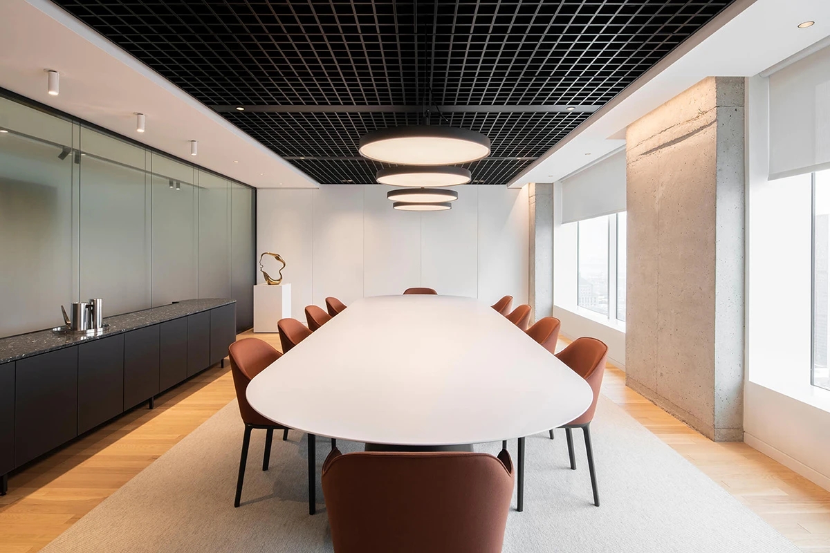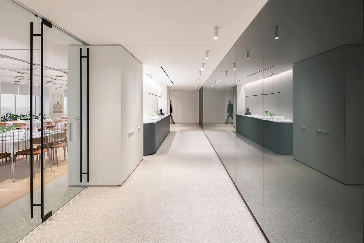 40层的设计确保所有高管办公室均能直接享受自然光照,这一理念成为贯穿设计的统一原则。安静的会议区则并置于建筑外角。为顺应灵活办公趋势,该楼层设置了非固定工位,且办公室均采用多功能设计,可随时转化为会议室。沿着专属走廊深入,高管办公套间为企业核心决策的开展提供了高度私密的环境。