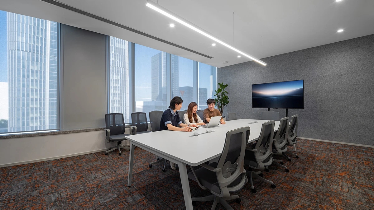 办公室的布局采用开放式的圆形设计,作为一个动态的连接点,巧妙地将不同功能区域连接在一起。无论是办公室、非正式协作空间,还是培训室,都被设计成能够无缝过渡的空间。开放的圆形布局打破了空间的隔阂,让整个办公室充满活力和流动性。通过使用磨砂玻璃和开放式隔墙,每个区域得以区分,但又不会造成封闭或压抑的感觉,保持了空间的通透感和舒适性。