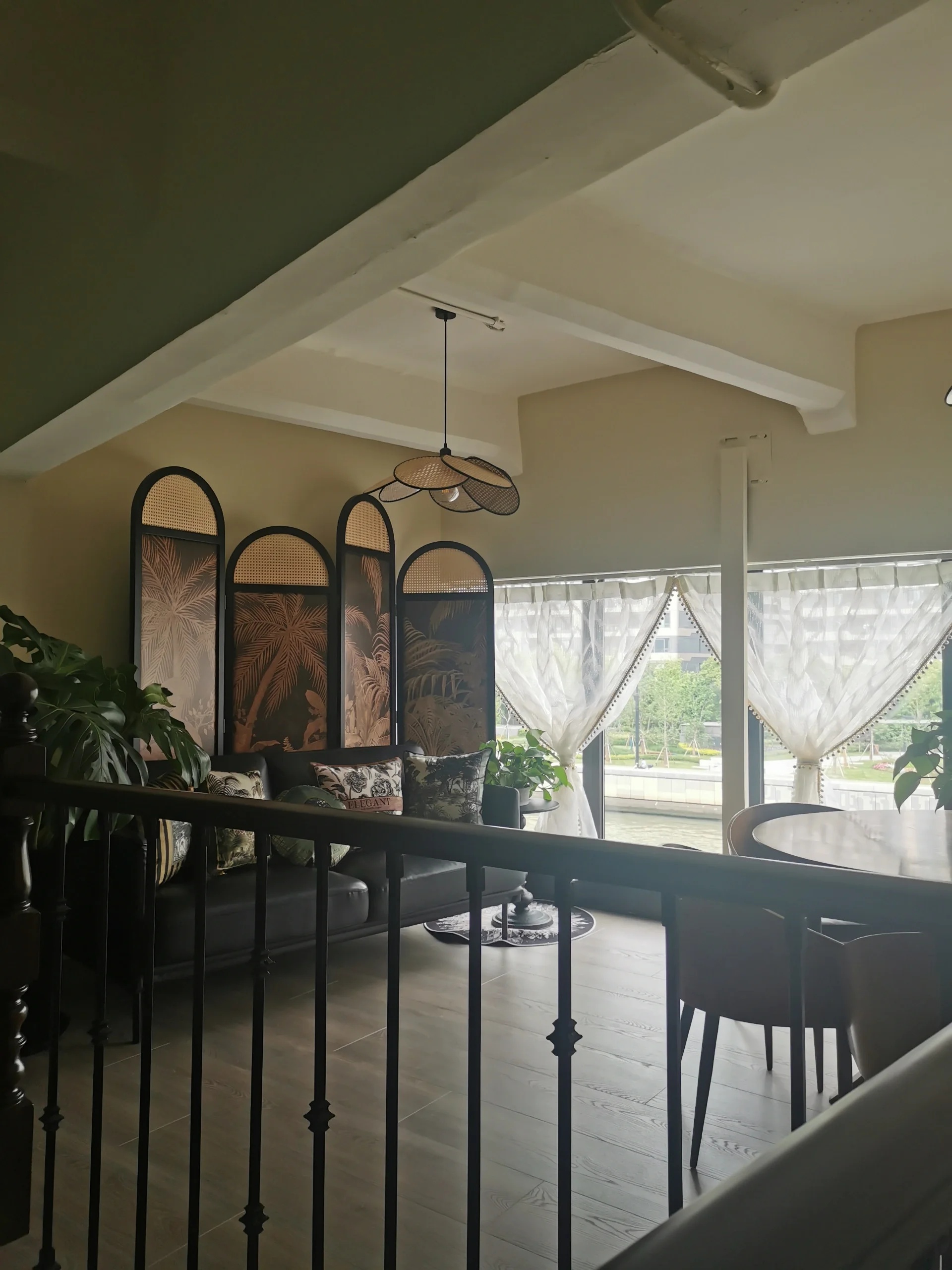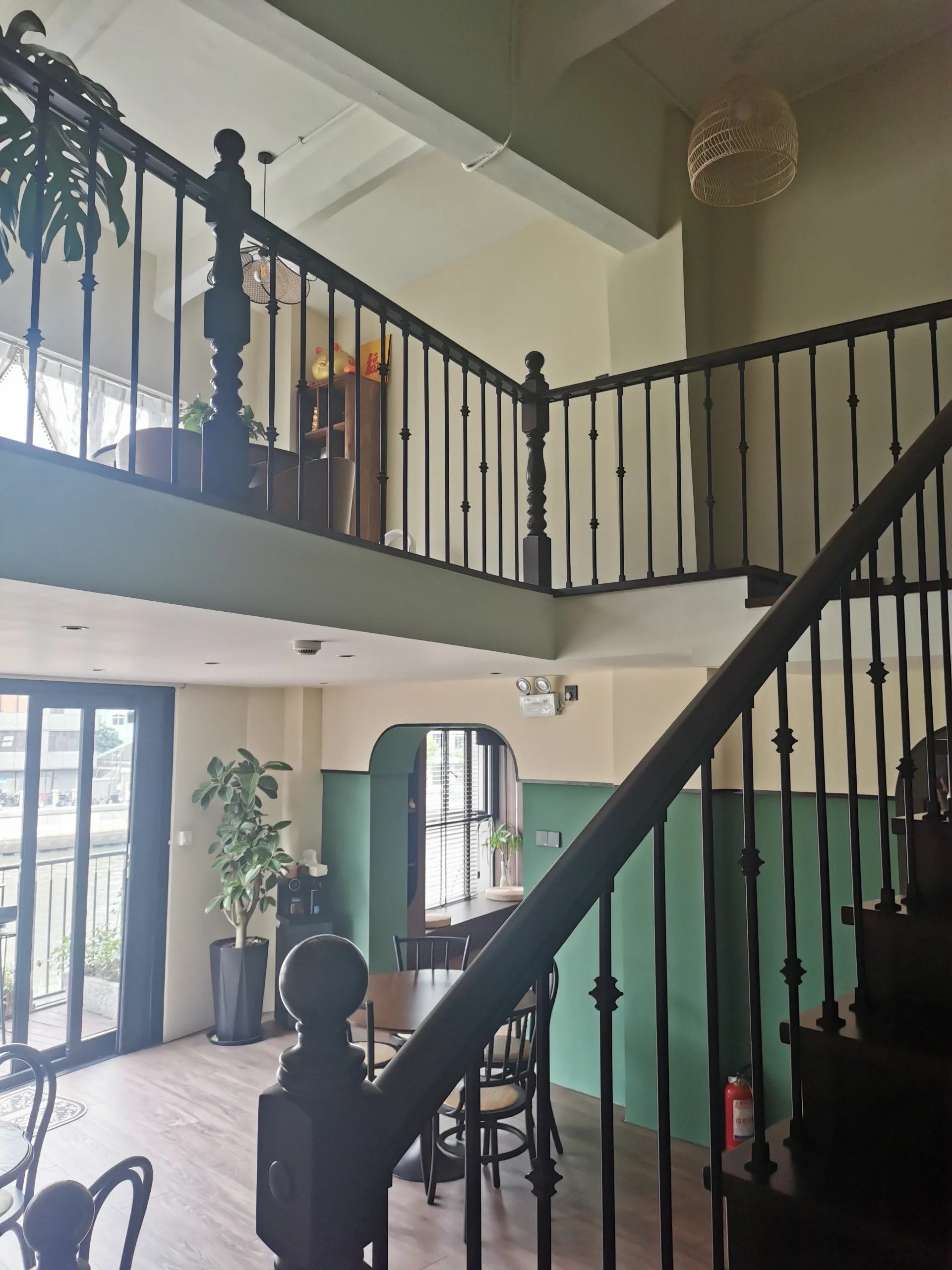 几何直线设计充满空间,构筑工业制造般的框架感。为大面积使用的黑色金属隔断为老楼增添现代感,玻璃墙保持良好的可视性;花槽柜保证储物空间的同时,还实现了分区功能的区分和转换。