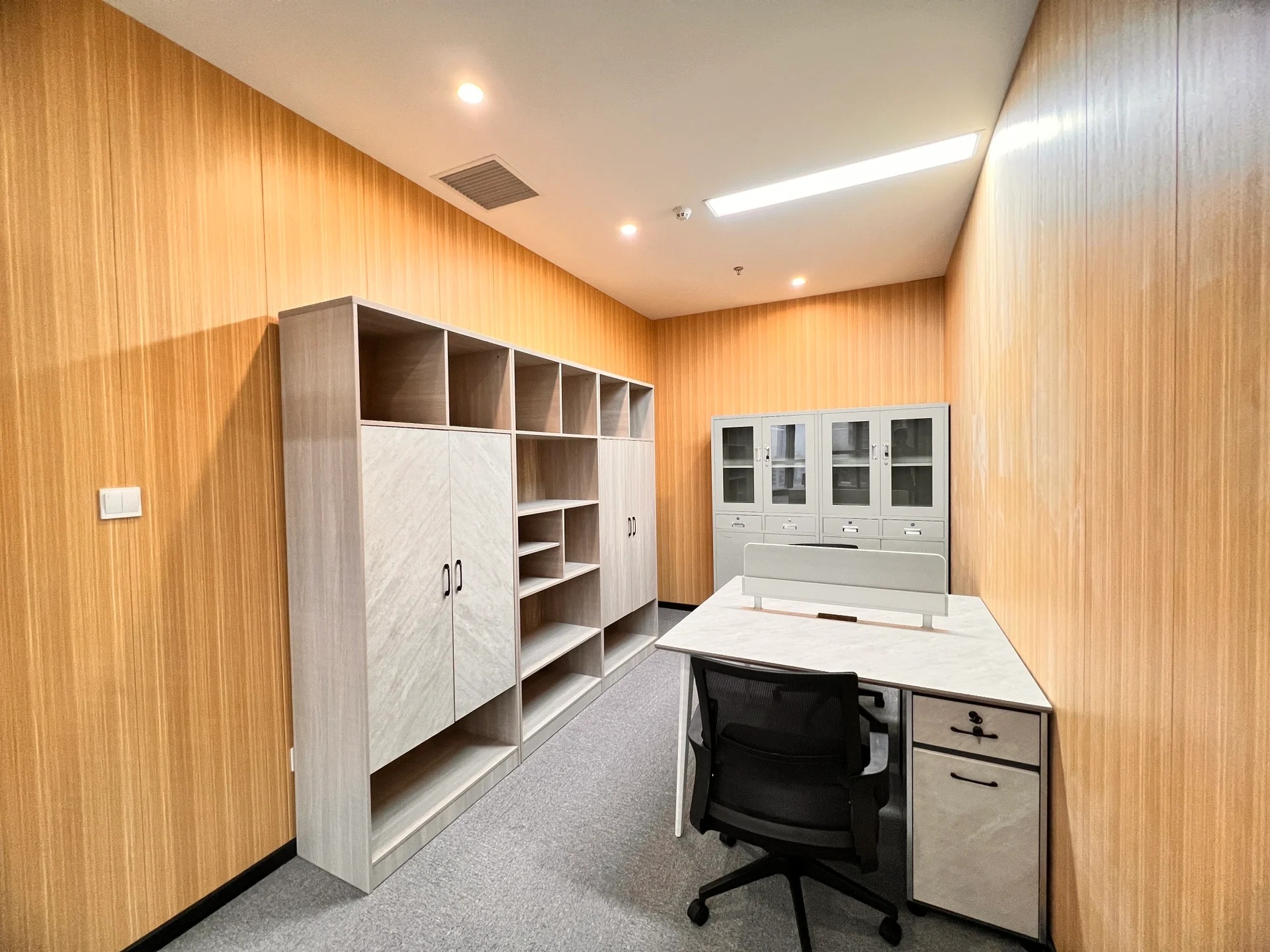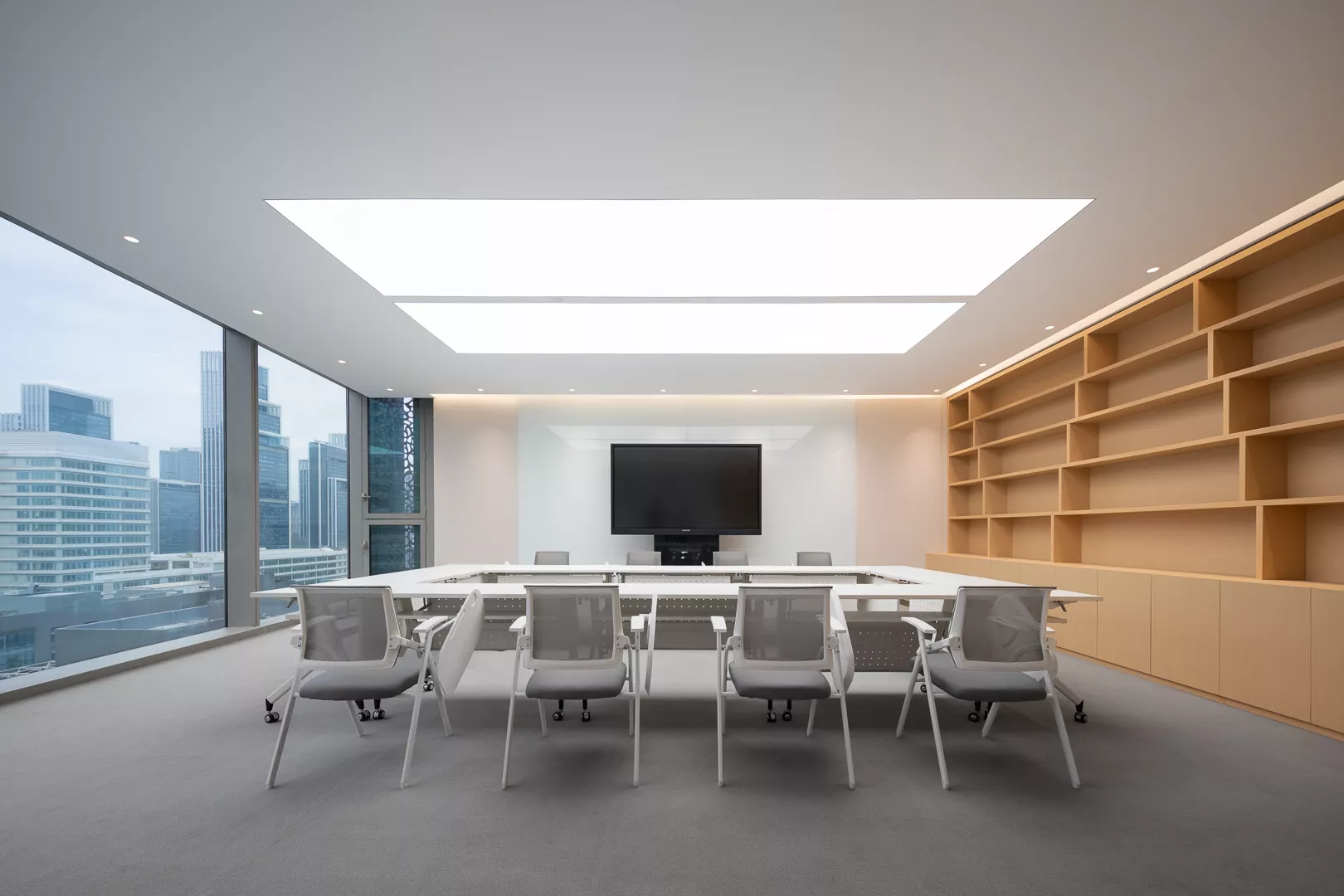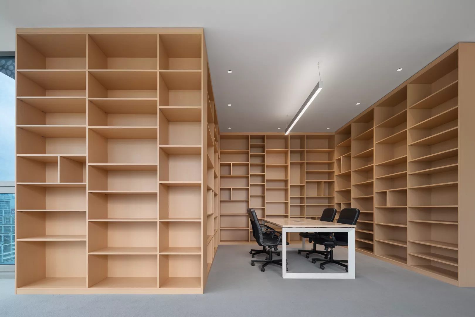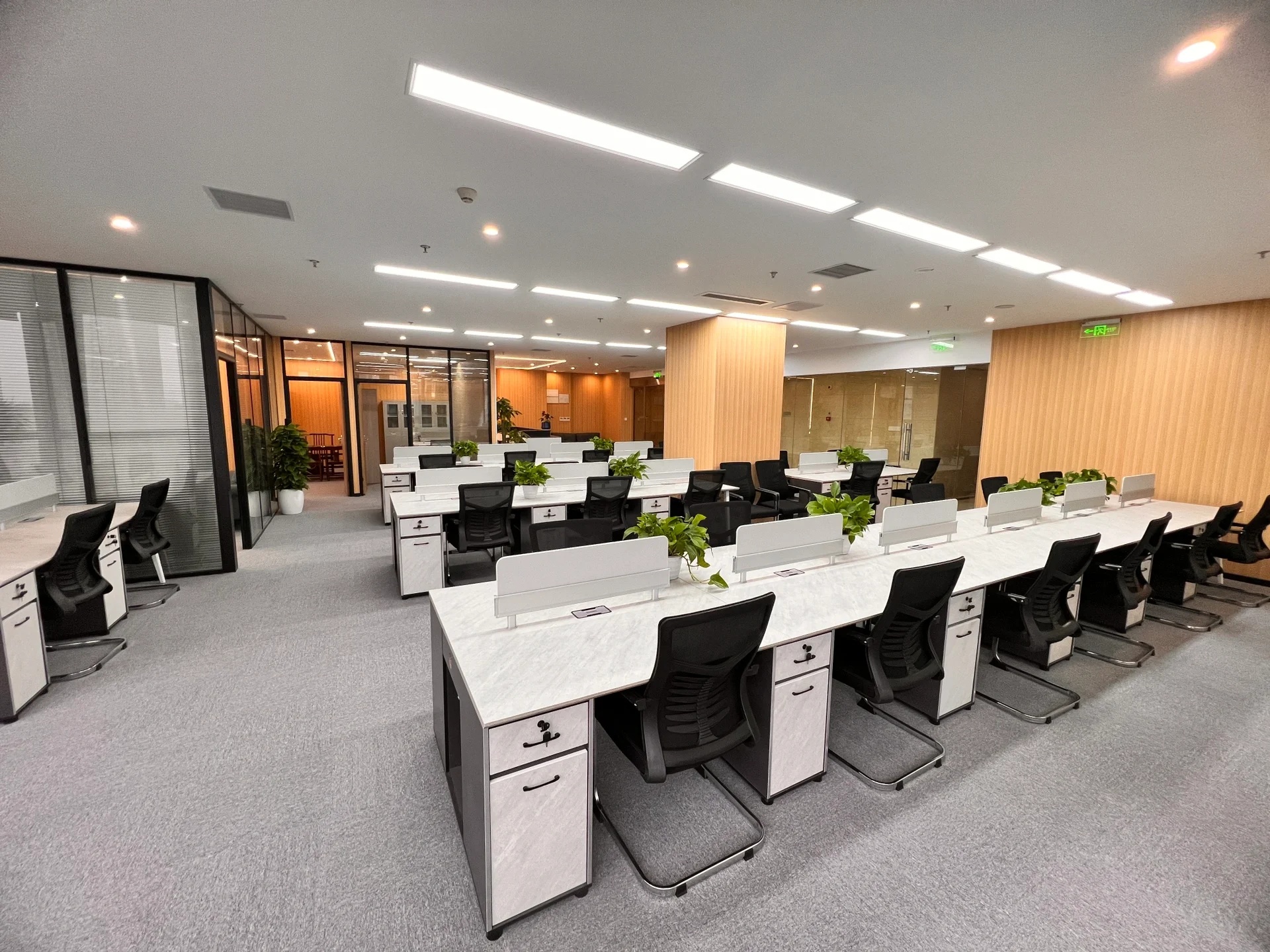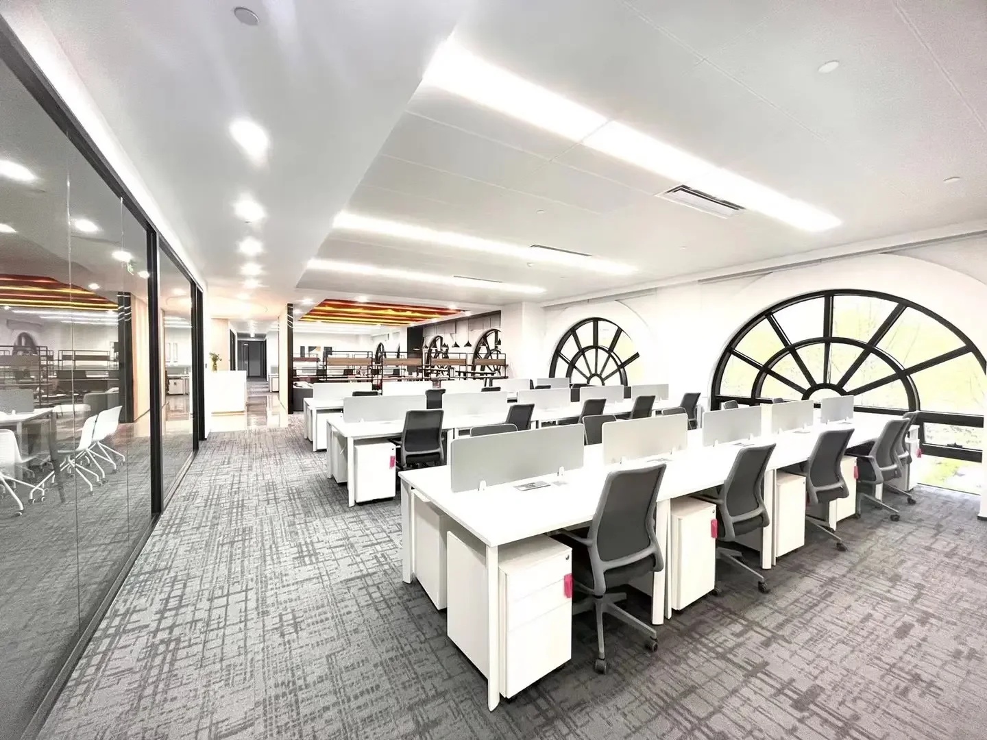 减少空间的墙而采用具有储物功能的柜子来进行空间的区域划分,最大化的提升工作交流的便利性在满足储物需求的同时让空间看起来更加的开阔和通透。