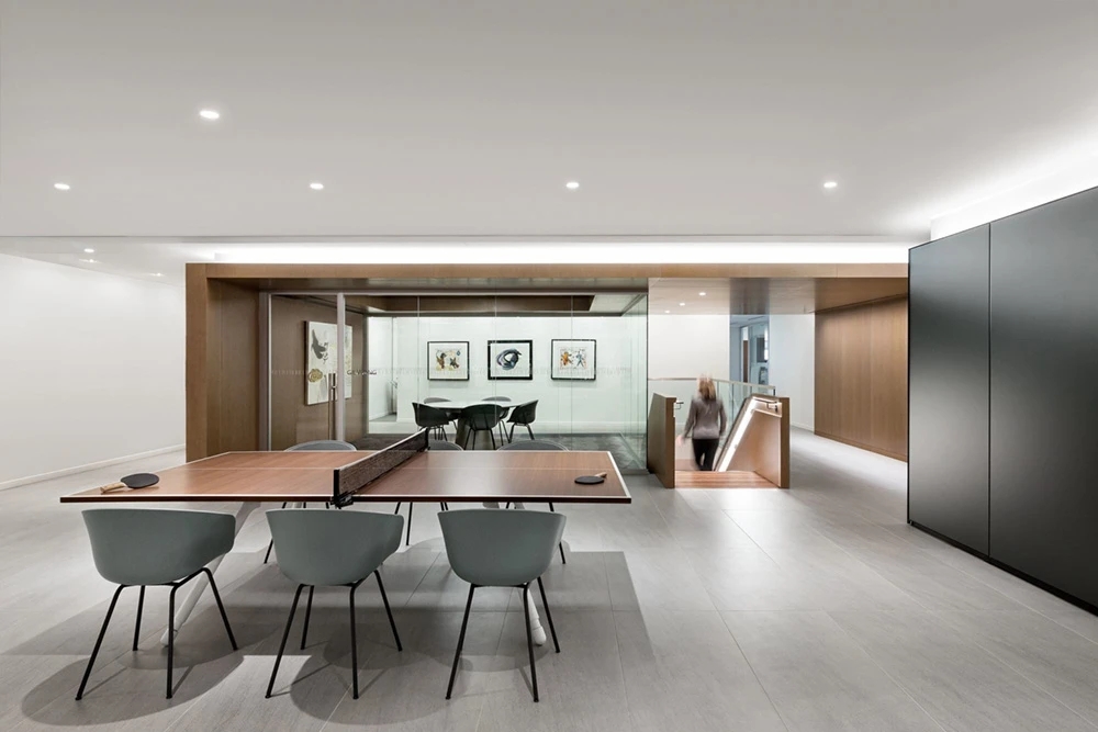 会客区的空间不仅可以全方位展示壹正企划自成立以来所获奖项荣誉,还可以给前来会面的客人提供宽敞明亮的交流空间。办公区的长方桌既是同事们的会议桌,也是乒乓球台,工作间隙还可以娱乐放松一下。