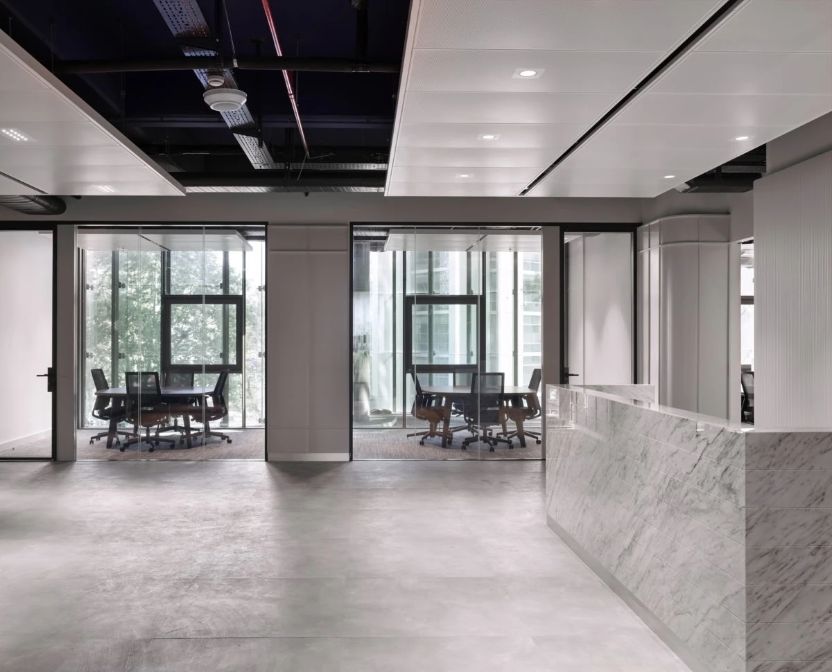 会议室和行政室的家具、大理石入口柜台和每层的木质存储单元都是由escapefrom沙发设计的,而Ersa办公家具则用于开放的工作区域。为了创建透明的办公室,TRIMline优先用于分隔私人和共享工作空间的分区系统。