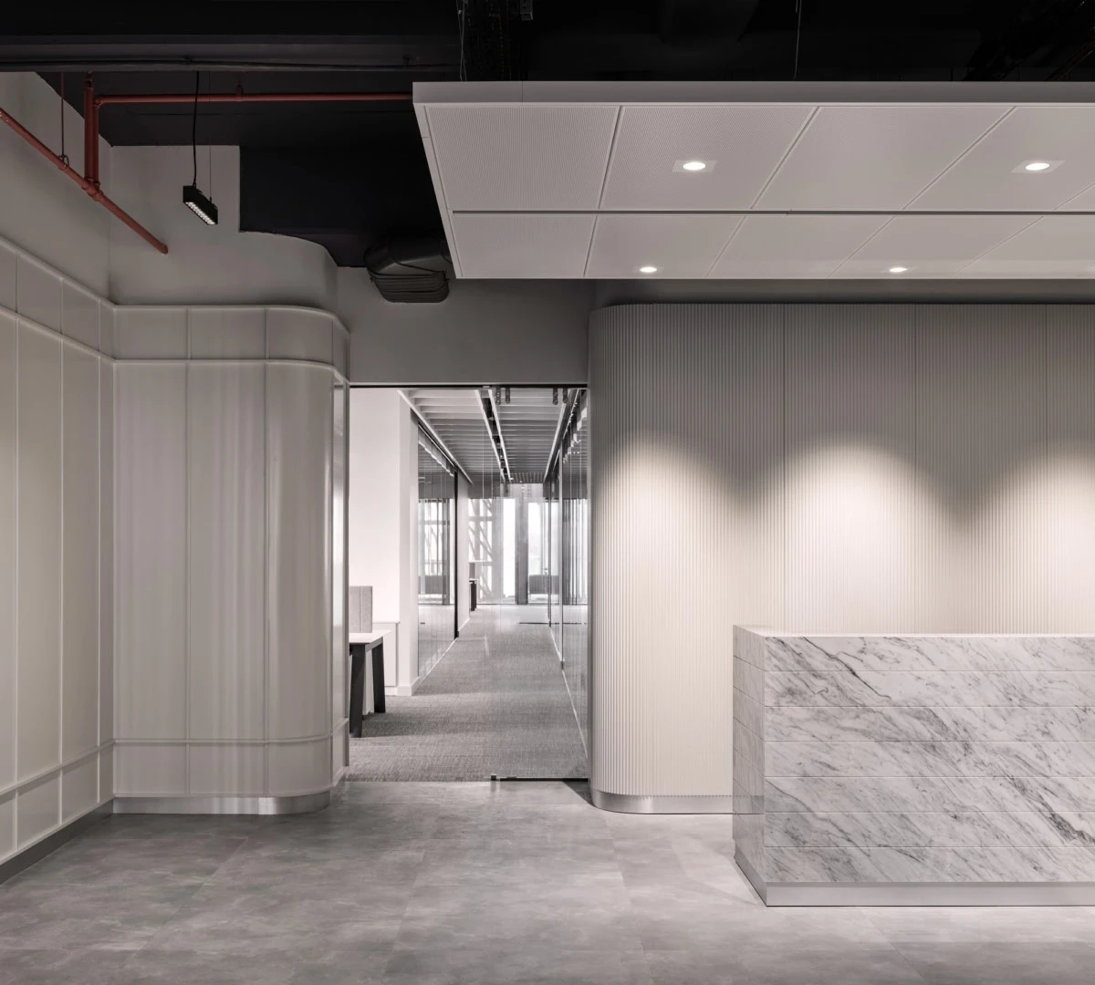 高颜值的前台设计代表着人们对企业的第一印象,整体设计在散发着秩序和庄严的同时,也营造出一种自然放松、活力向上的职场环境。极简的设计风格,恰到好处的细节处理,低饱和度的暖光色调,以及足够大的前厅空间,不仅提升了空间质感,更营造出干净、优雅的工作环境。