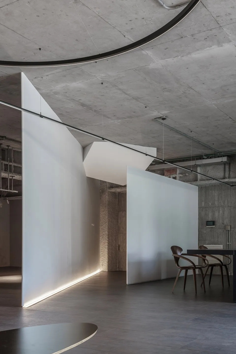 打破制式分隔空间的惯性,室内让出更自由的平面,少量而形体俐落的家具延续几何语汇。如艺廊的环境属性,使既存机能构造隐退到素净的表面之后,视觉自然定焦于令喧嚣沉静的艺术品上,即便静止,也能迸发出强大的叙事力量。