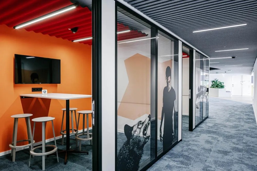 设计采用开放式办公室布局,以促进工作场所内部的沟通和团队合作,其间穿插着一系列开放空间、休闲区和协作区。同时引入了正式和非正式的空间,以便员工选择更适合其工作性质的工作模式。通常情况下,员工的工作既需要活跃的团队协作、也需要安静的独立思考,因此就有了团队型的协作房间到小型车厢座等各种设计,丰富的场景让人们随时在交流或专注之间快速切换。