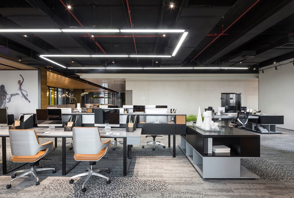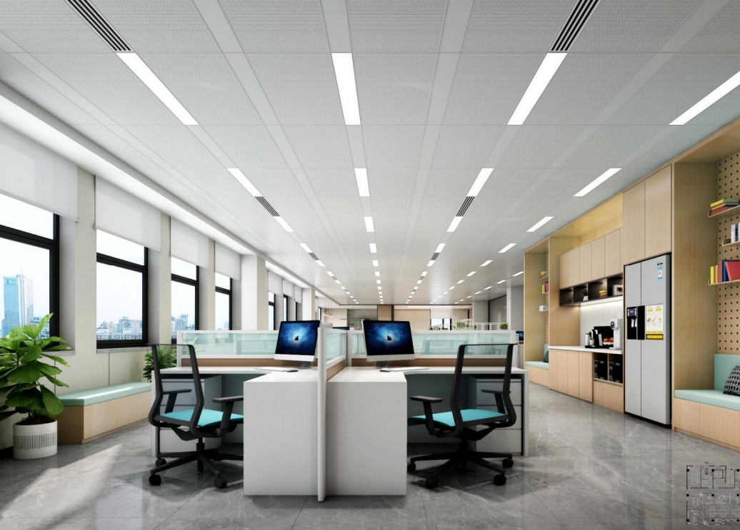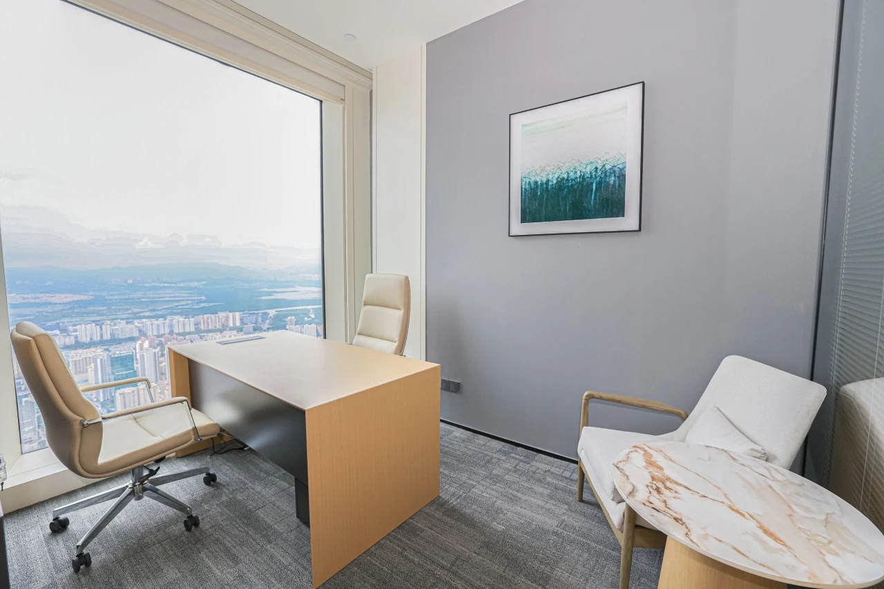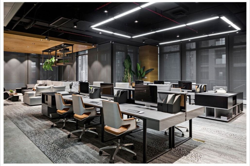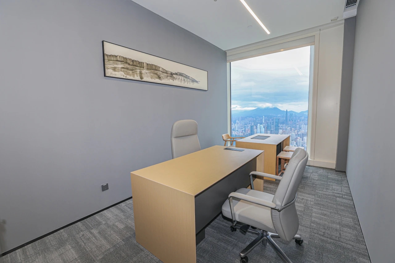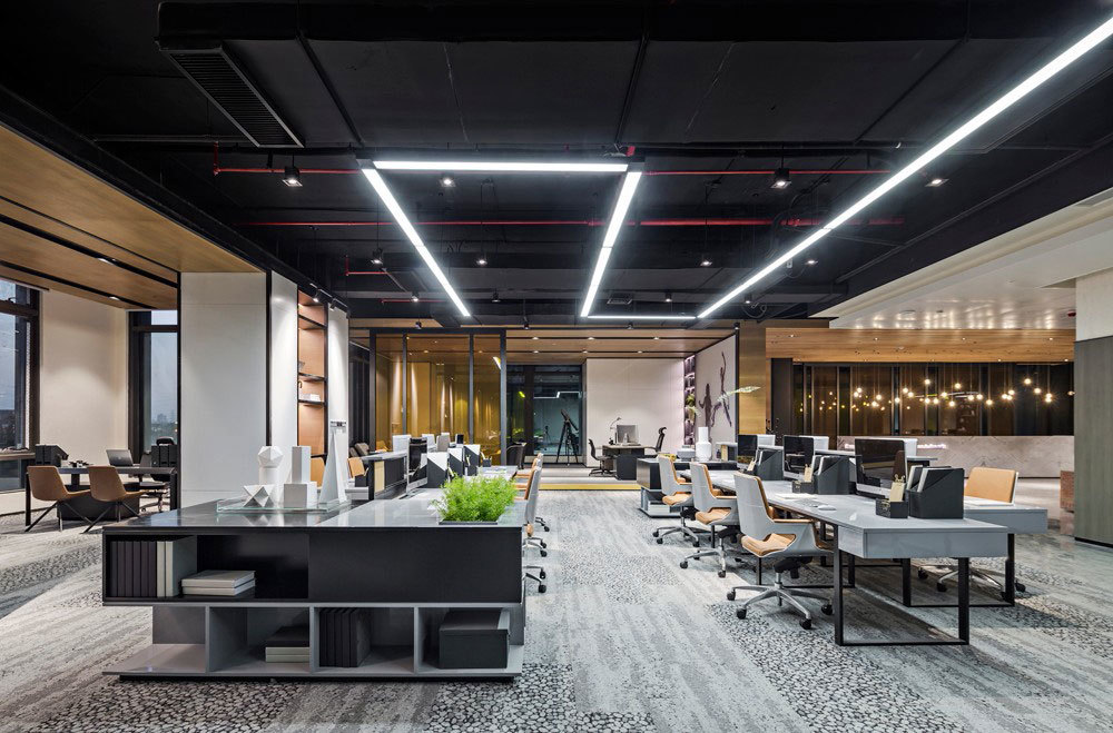 拐口入内,曲径通幽,便豁然袒露出一间宽敞明亮、动线布局流畅合理的接待场所。室内中轴备置简约木质平头长案,为其增添古人书写作画的雅致精调,实现现代与古韵相结合的空间特色;卧于窗边的软装配置舒适而敞亮,安全感满满的包围圈搭配大厦高层尊享的城市景观,令人时时喟叹于生活的忙碌和充实。
