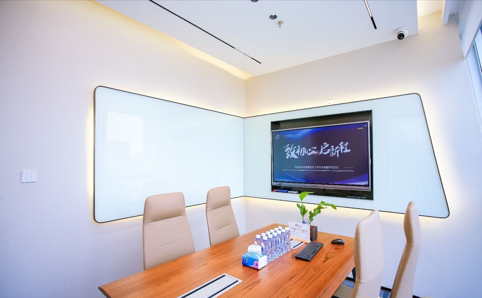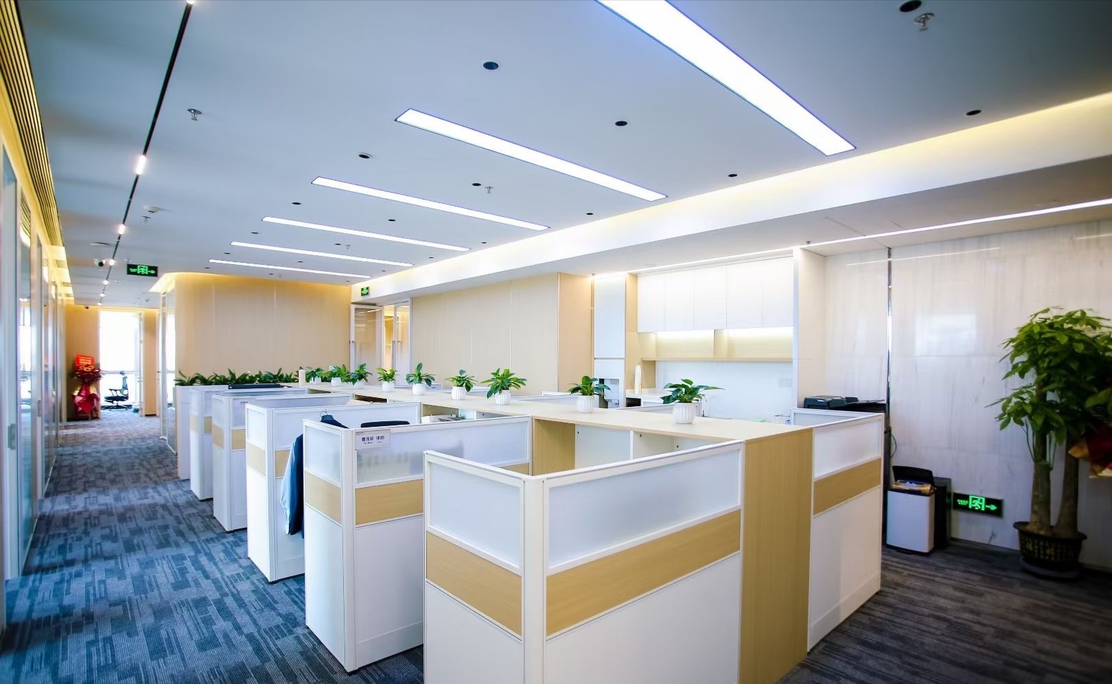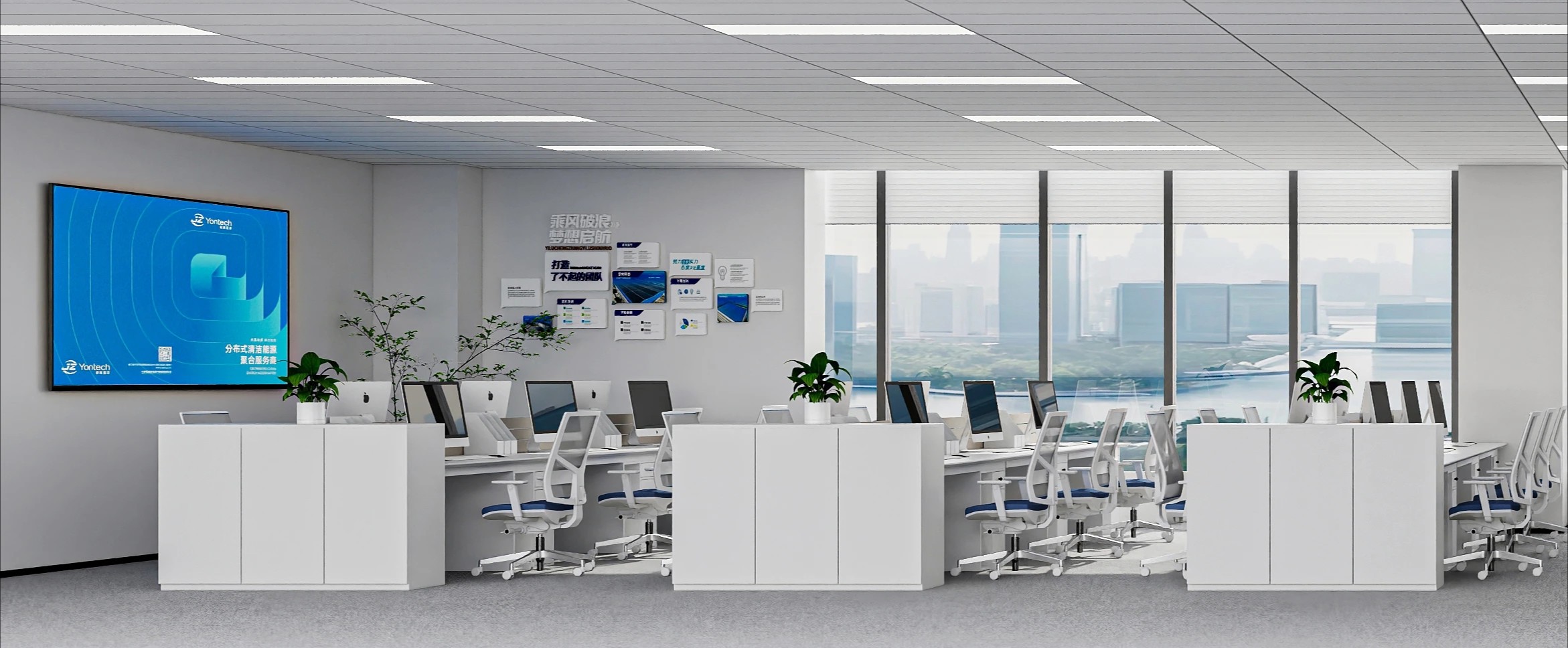 展厅作为前台的延展空间,风格色调继续保持一致。设计理念注重简约、科技感以及品牌展示。空间布局通透开放,利用线条灯带营造氛围,色彩上以蓝白相间为主色调。