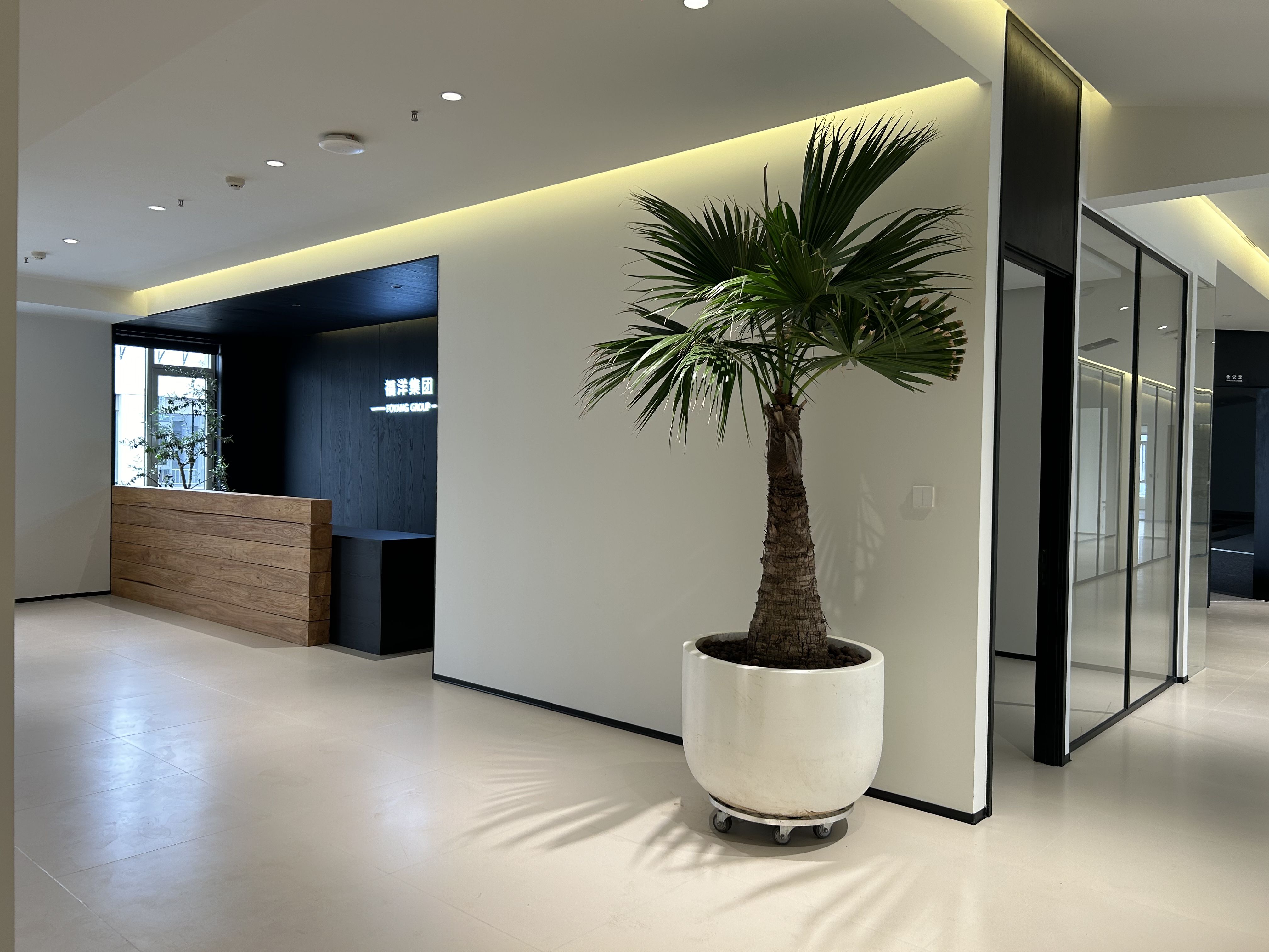 茶室整体风格简约而优雅,黑色大理石台面的茶桌能有效提升空间的整体档次,而灰色木纹元素则增添了一丝自然与温馨的气息,两者结合使整个空间看起来更有层次感。绿植的使用,让整个空间灵动而富有生机。