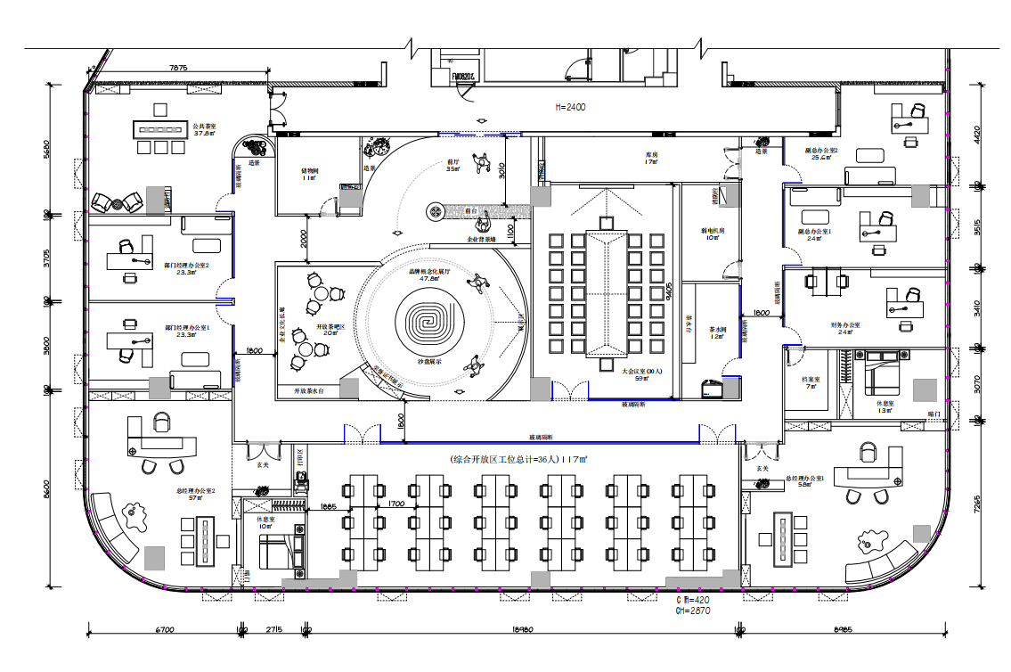 会议室的风格沉稳、大气,同时融合公司的文化氛围和品牌形象。选择了符合公司风格的颜色和元素,让参会人员感受到公司的文化内涵和品牌气息。经理室划分了办公区和休息区,空间宽敞明亮,于严谨的秩序与效率间巧妙注入舒适、轻松与明快的优雅气韵,让使用者在其中可放松身心、可高效工作、亦可缓解压力,赋予办公新乐趣。这是一个豪华的总经理室,整个空间采用了高级灰+木色的设计,给人一种稳重又不失温馨的感觉。头顶的吊灯和脚下的地毯相呼应,营造出一种奢华氛围。开阔的落地窗,能尽情享受空中极佳的视野与美景。