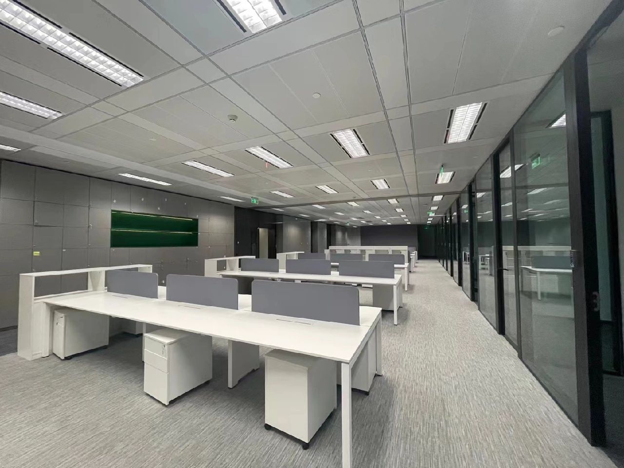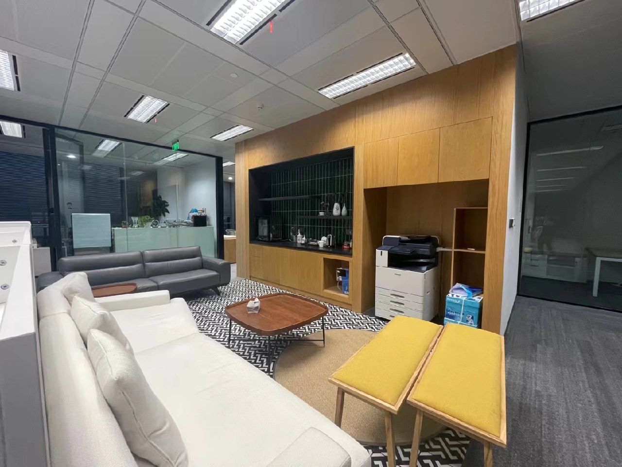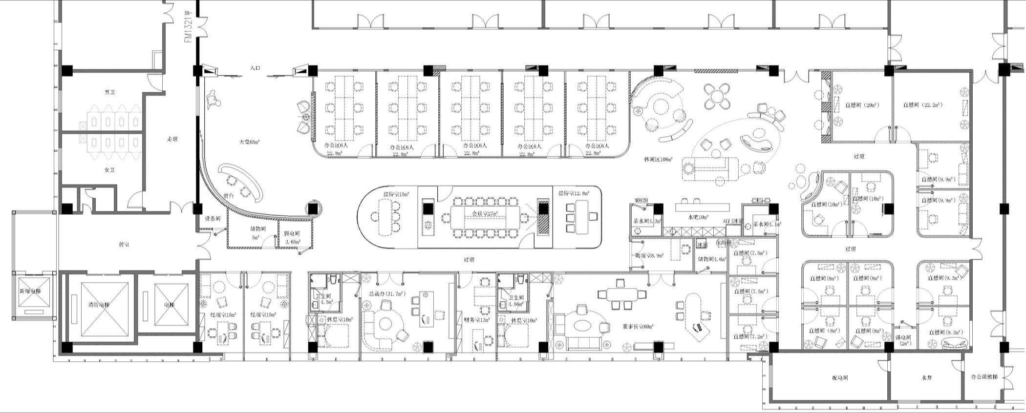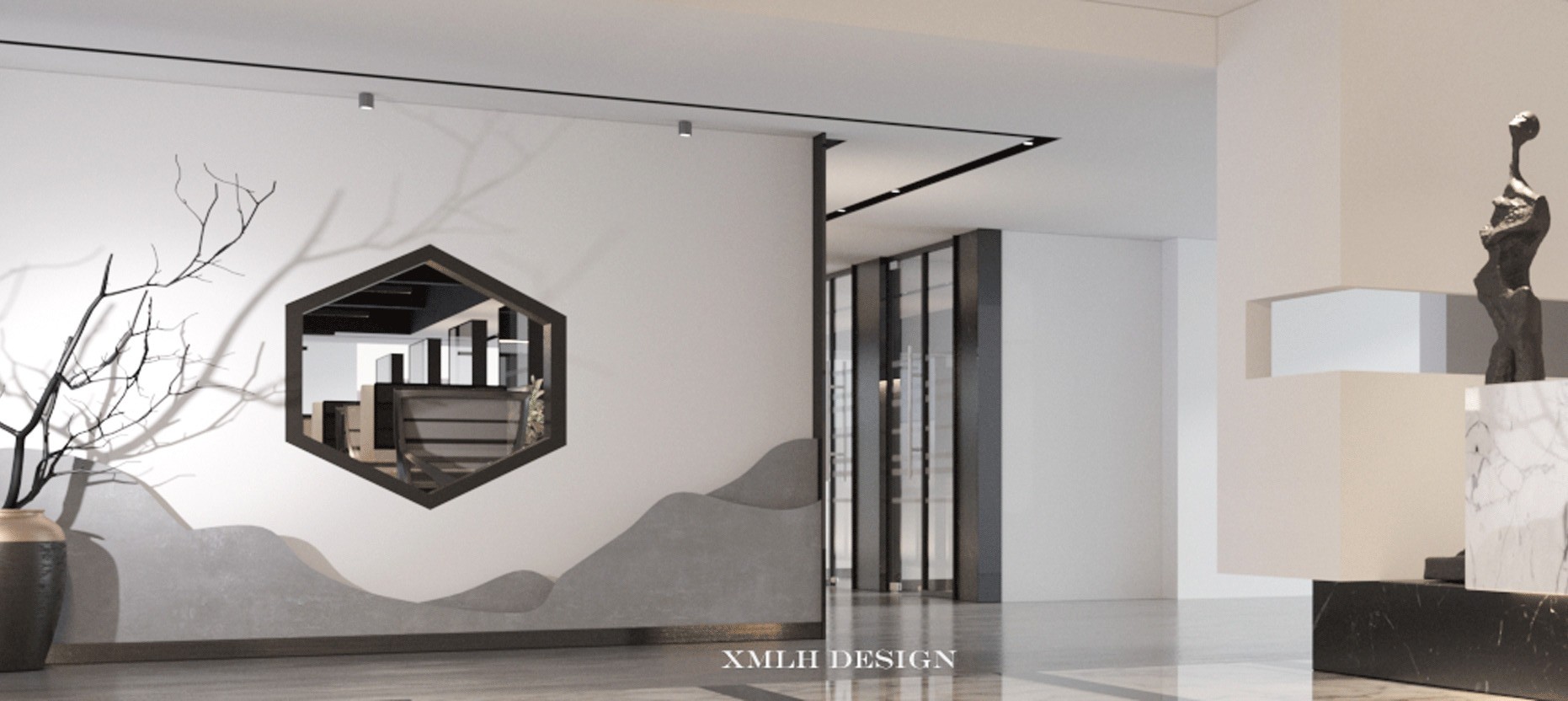 入口的细节,一进门的科技感,全景式交互让人瞬间沉浸其中,光以曲线的形式在天花游动。联结起空间的关系,同时运用弧形玻璃打造洽谈室,仿佛如遨游太空的船舱,提升空间的流动性和科技感。进门处的洽谈室和办公区的会议室均使用了渐变玻璃,颜色由紫红色向透明过渡,呼应罗丽芬LOGO。 开放办公区以自然感为主,给人以放松愉悦的办公环境,过道天花采用椭圆形透光膜照明,灯膜与地板的弧线相互呼应。来到多功能办公空间,办公IP以从事医美相关行业人群为主,开放的空间搭配轻巧的办公桌,可为后续培训或是聚会做出改变,空间元素上采用裸粉色加上具有女性代表的弧度,让空间更具柔美感。