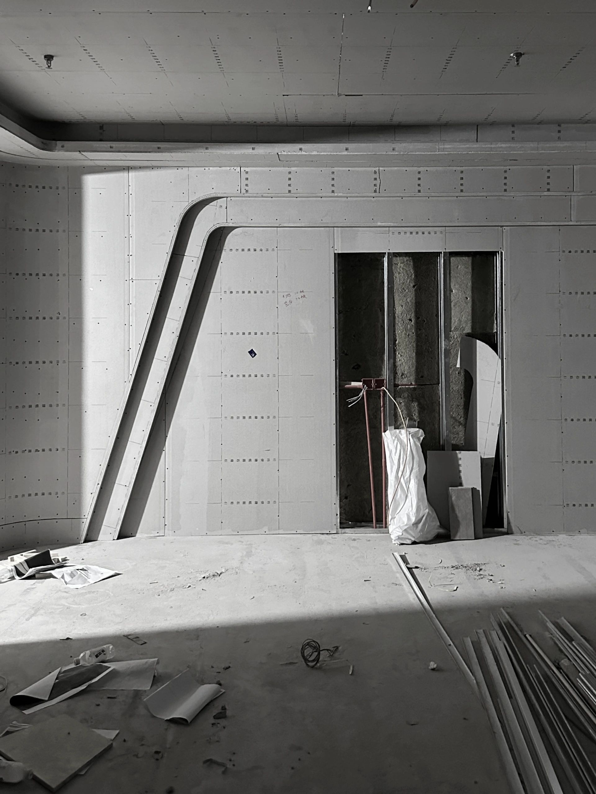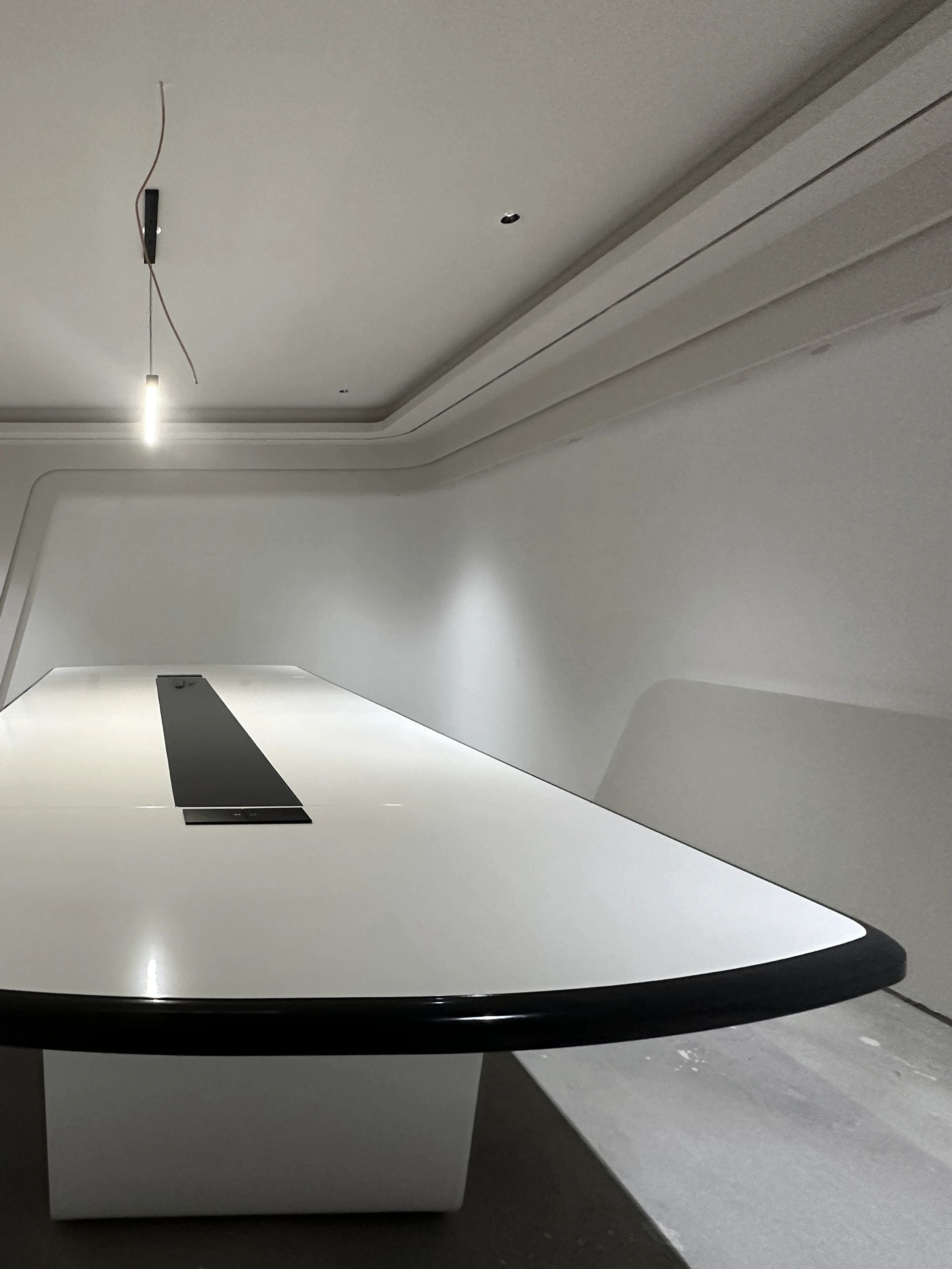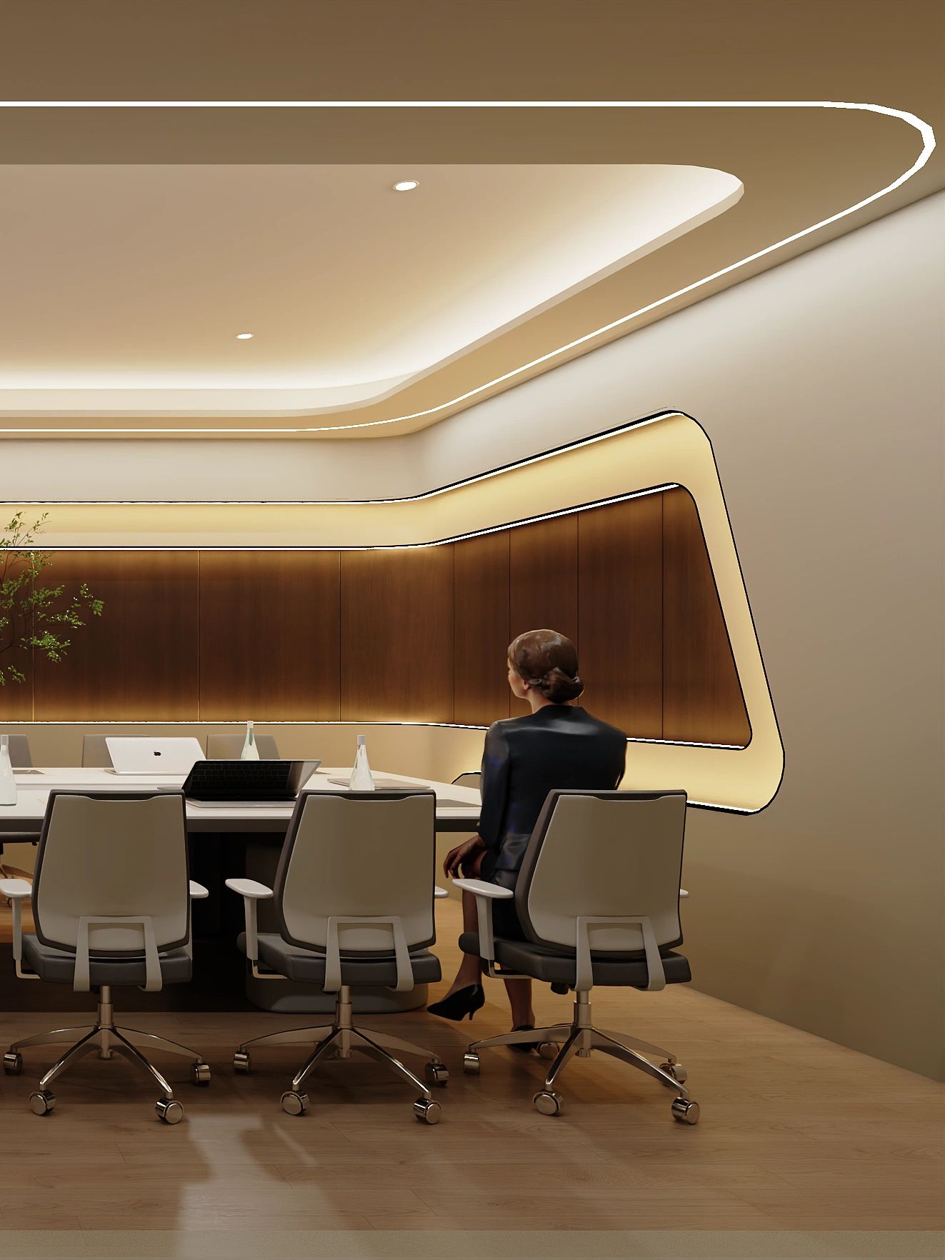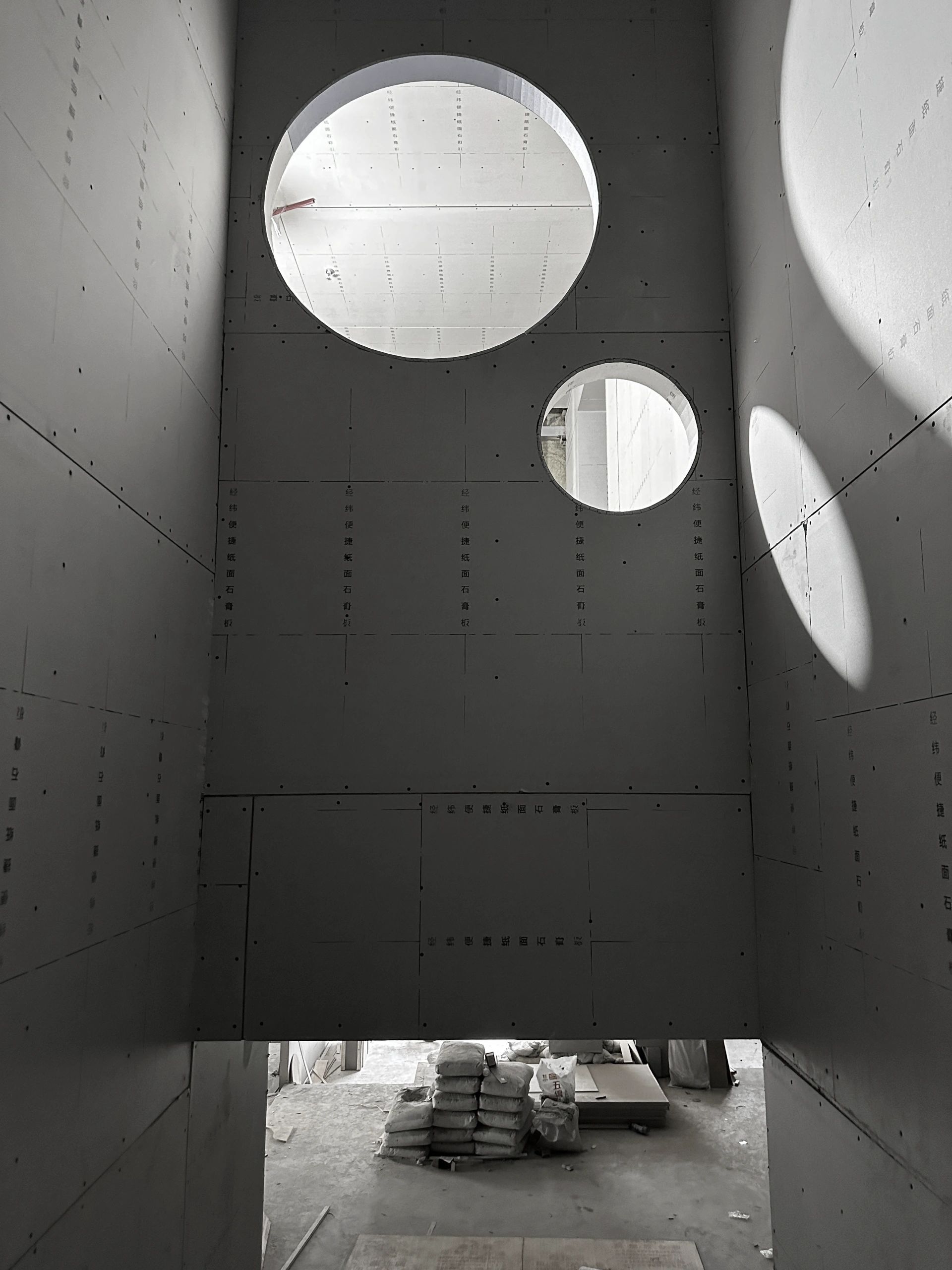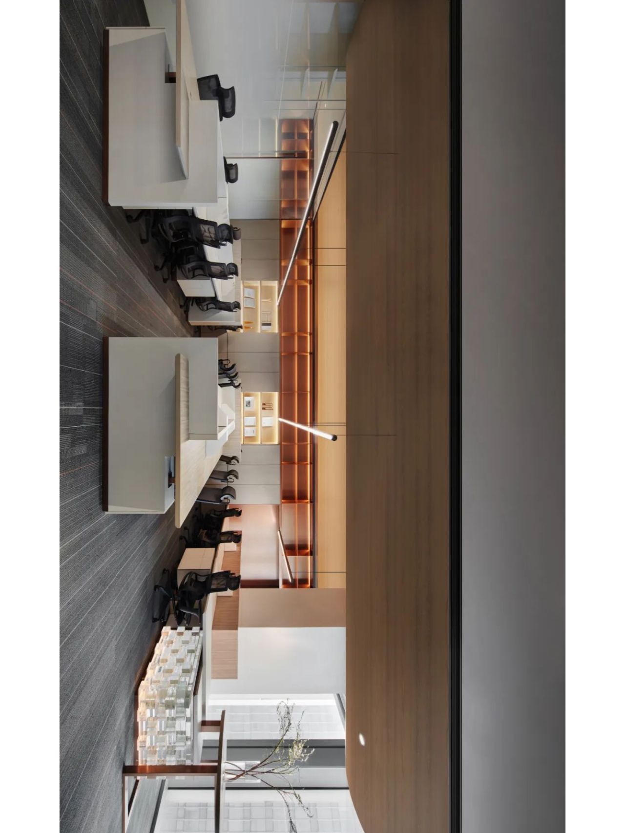 空间充斥着弧形,设计师将重要枢纽设计为一个圆柱空间,即独立又与整体机构融为一体,成为一个动线枢纽,一个视觉焦点。