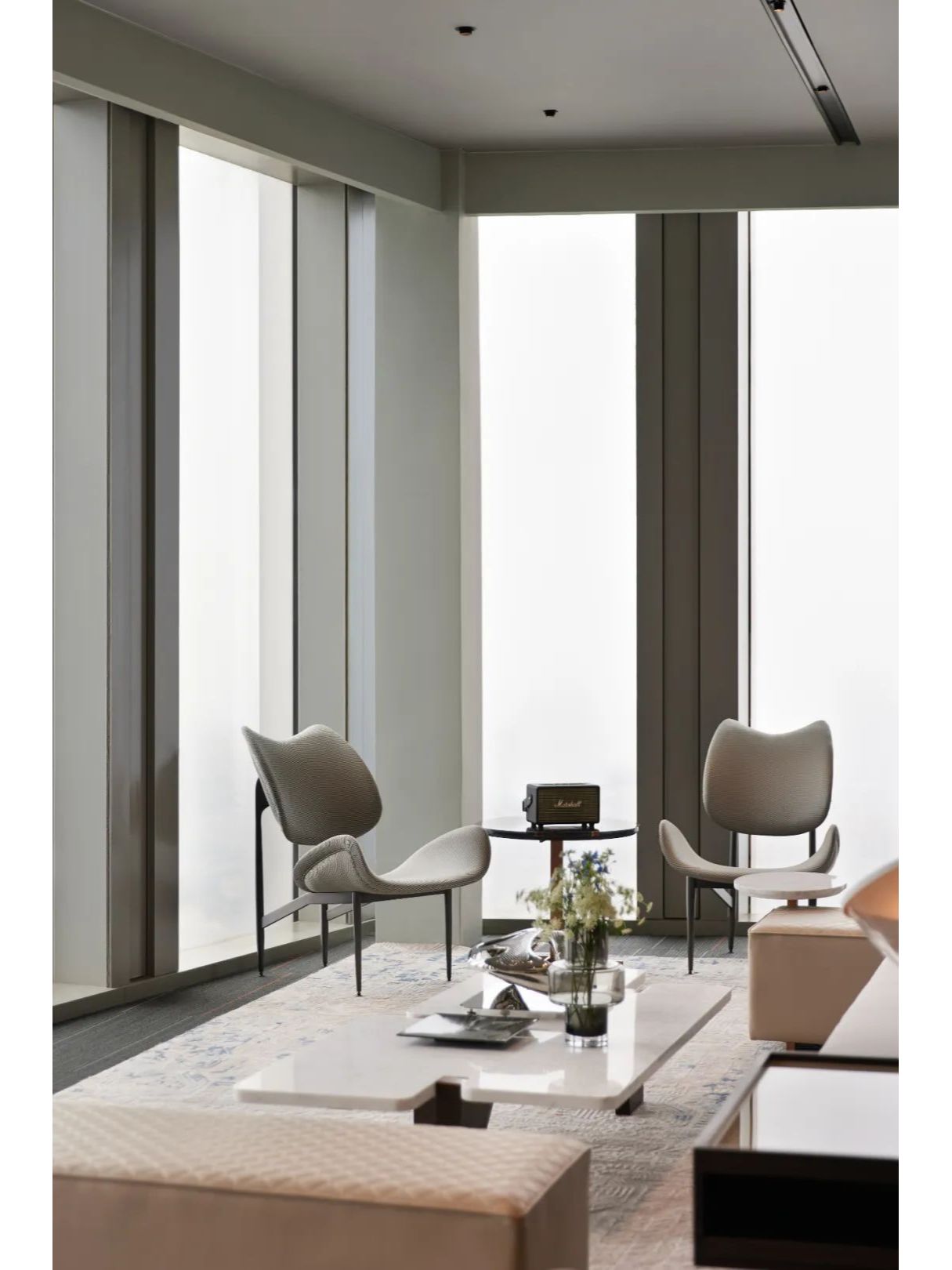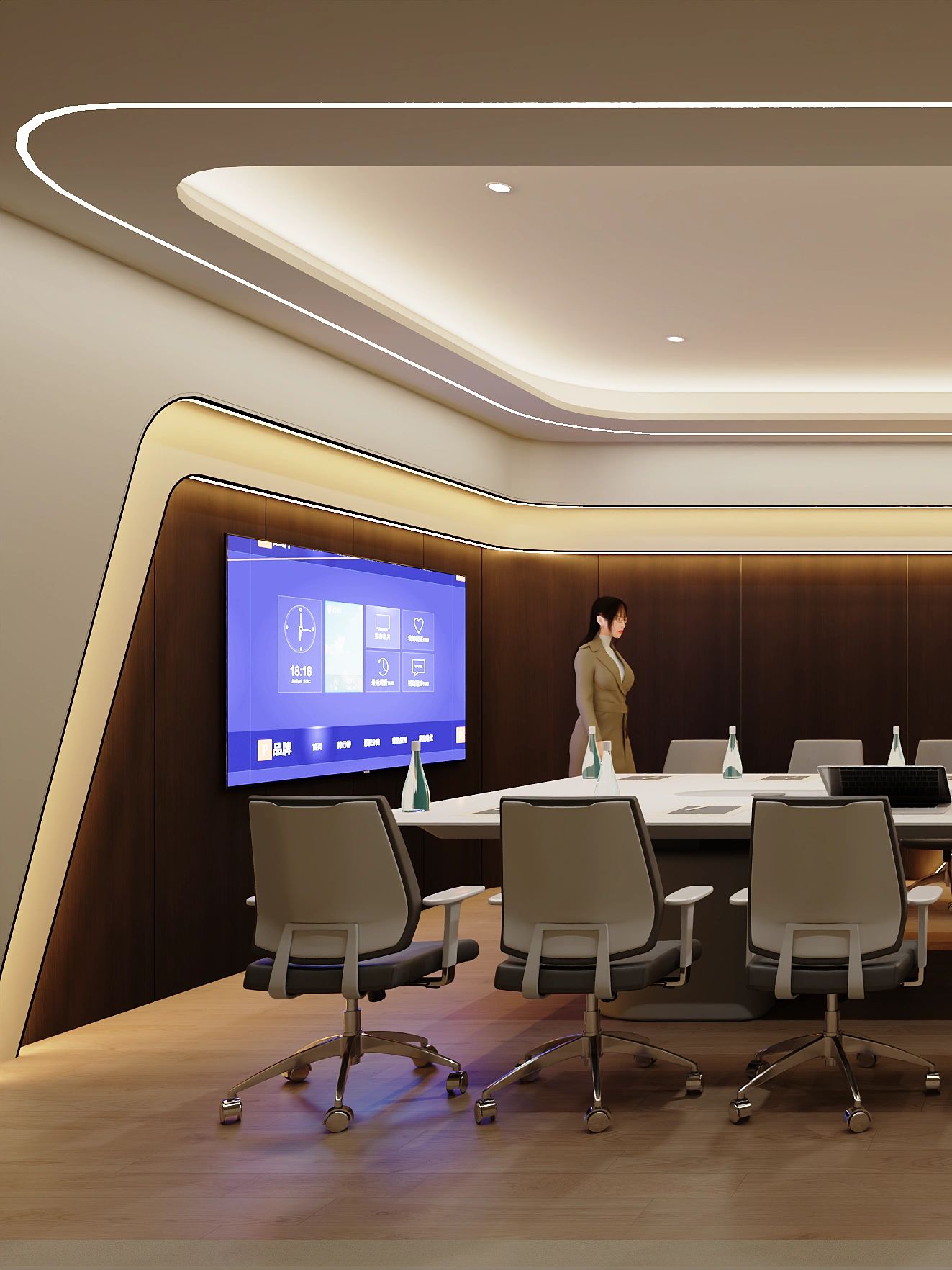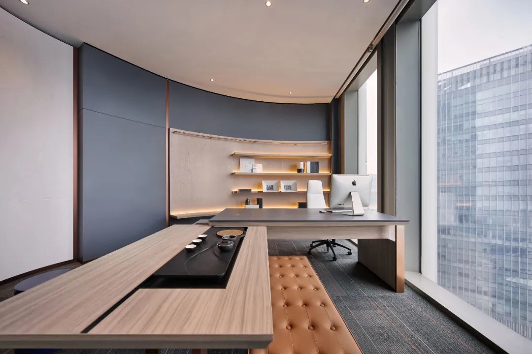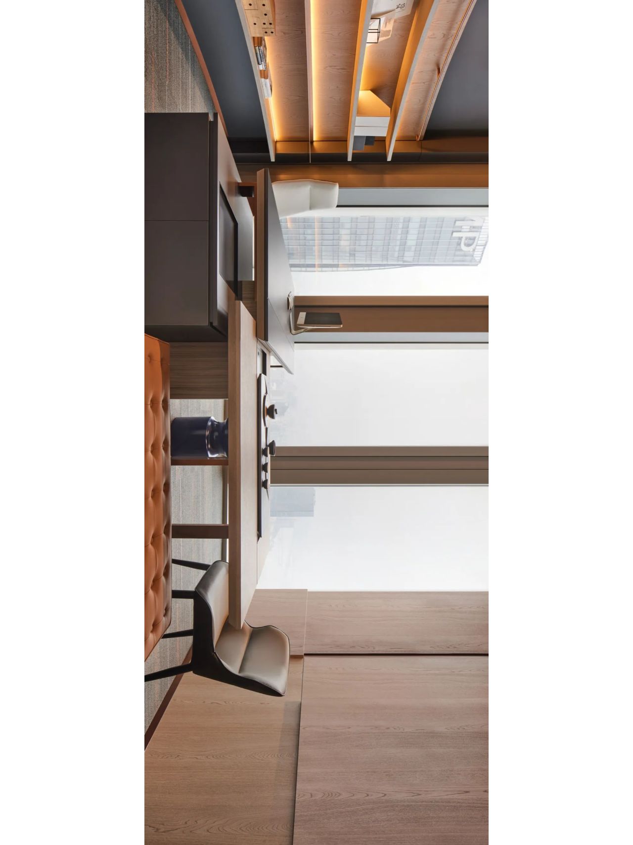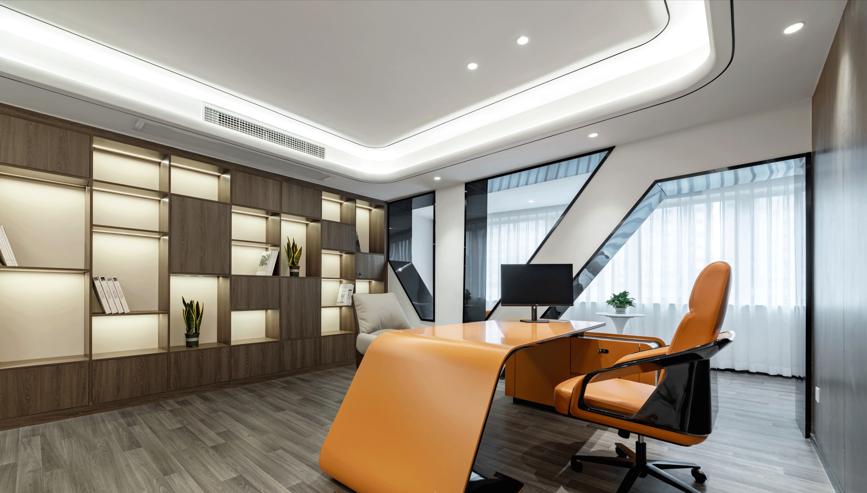 空间充斥着弧形,设计师将重要枢纽设计为一个圆柱空间,即独立又与整体机构融为一体,成为一个动线枢纽,一个视觉焦点。