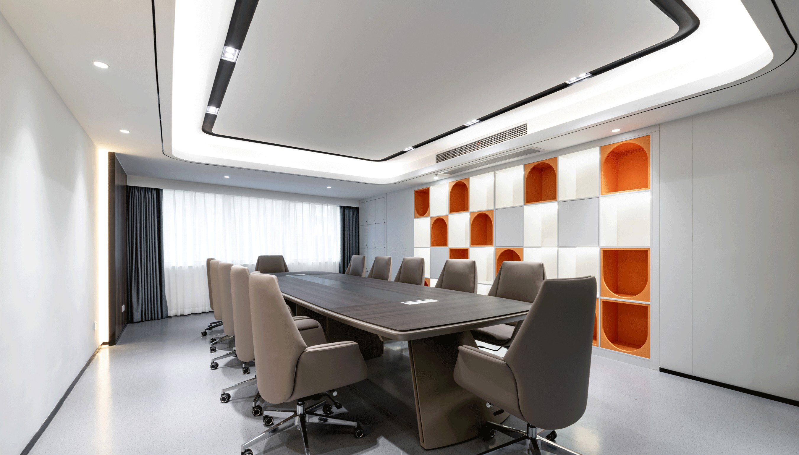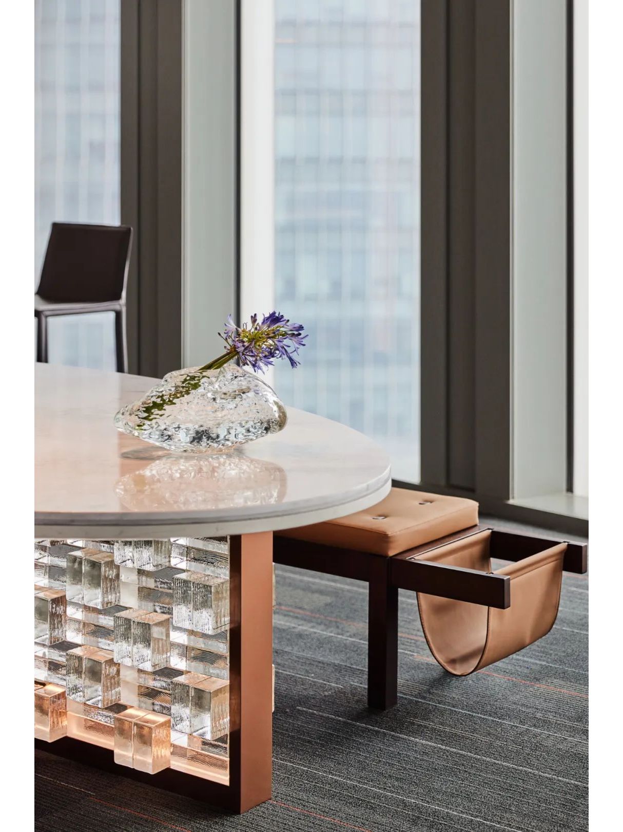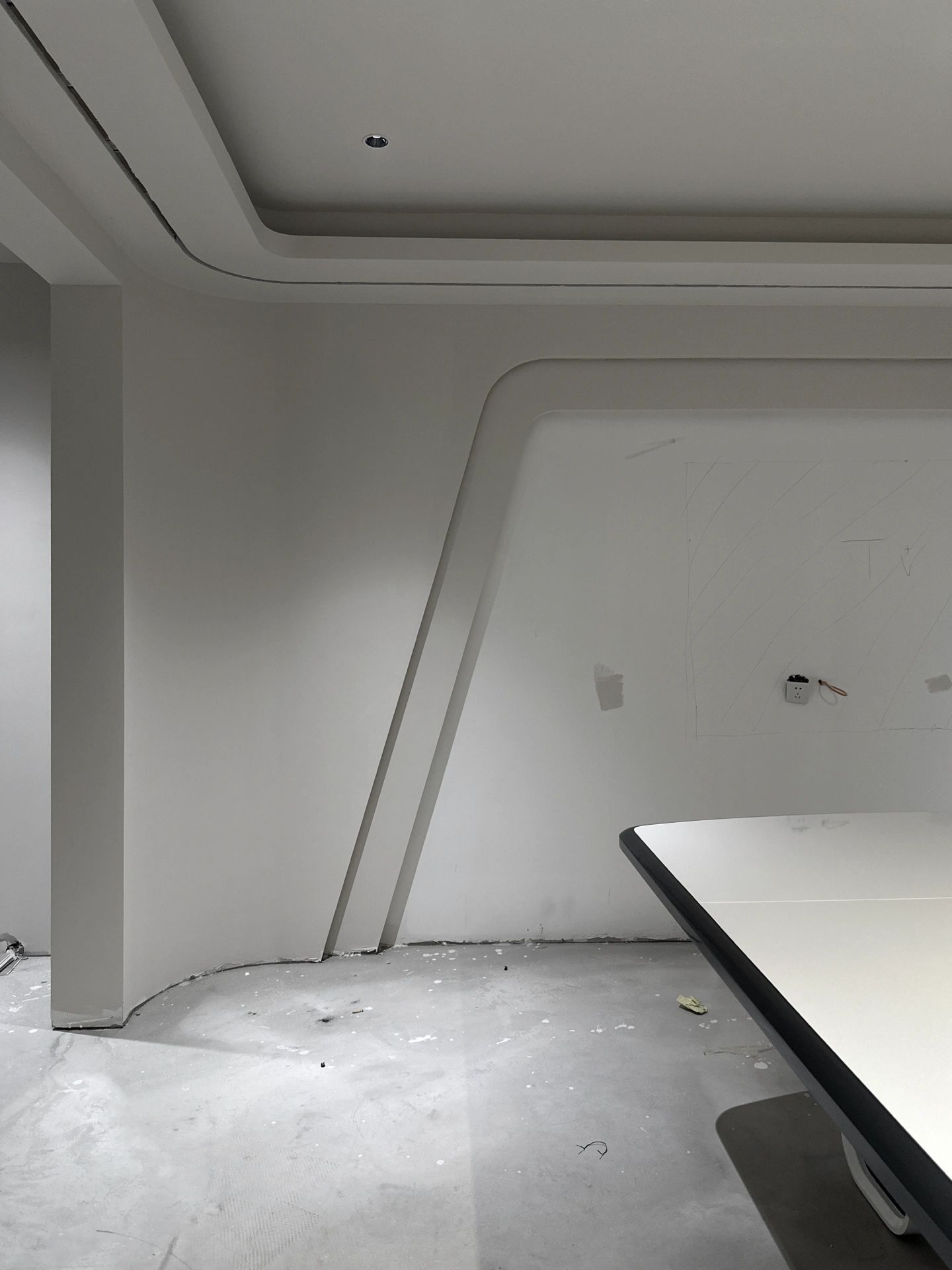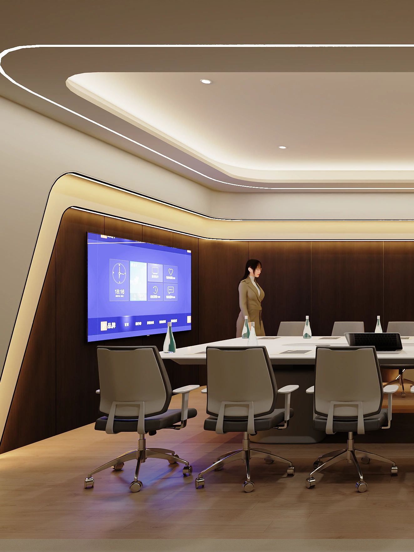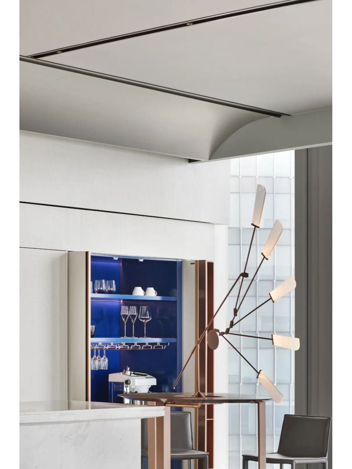 空间充斥着弧形,设计师将重要枢纽设计为一个圆柱空间,即独立又与整体机构融为一体,成为一个动线枢纽,一个视觉焦点。
