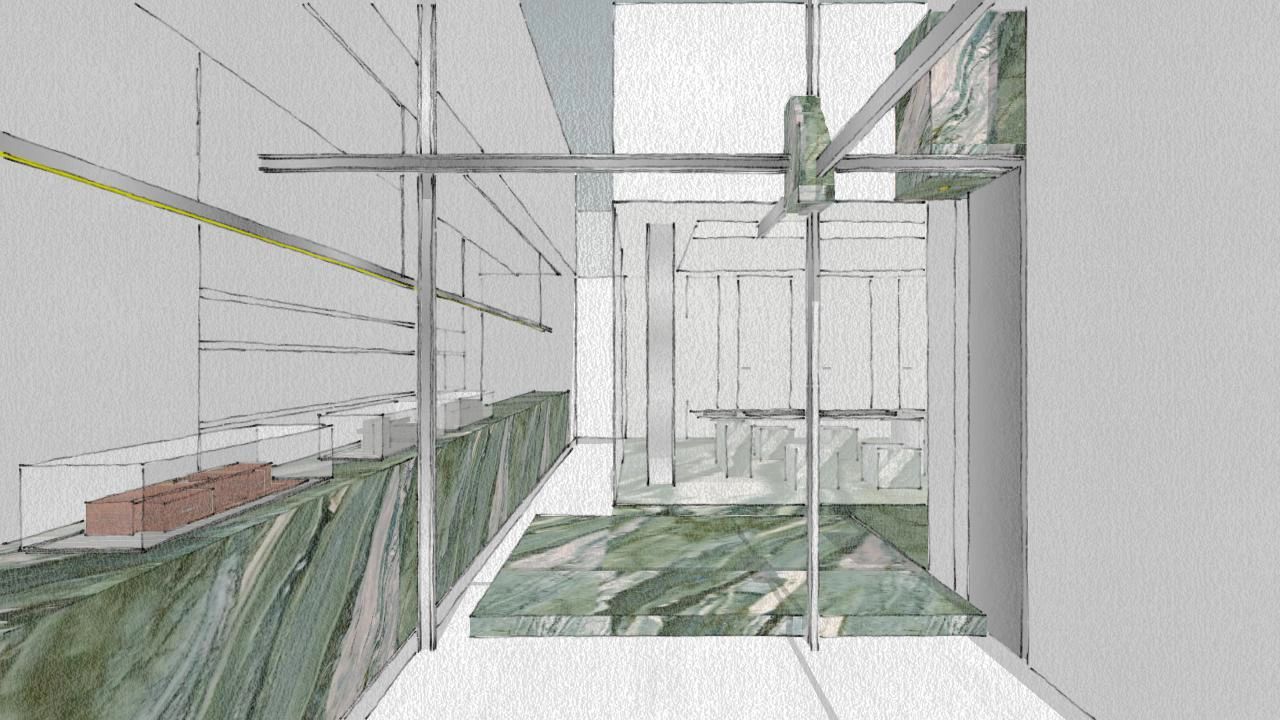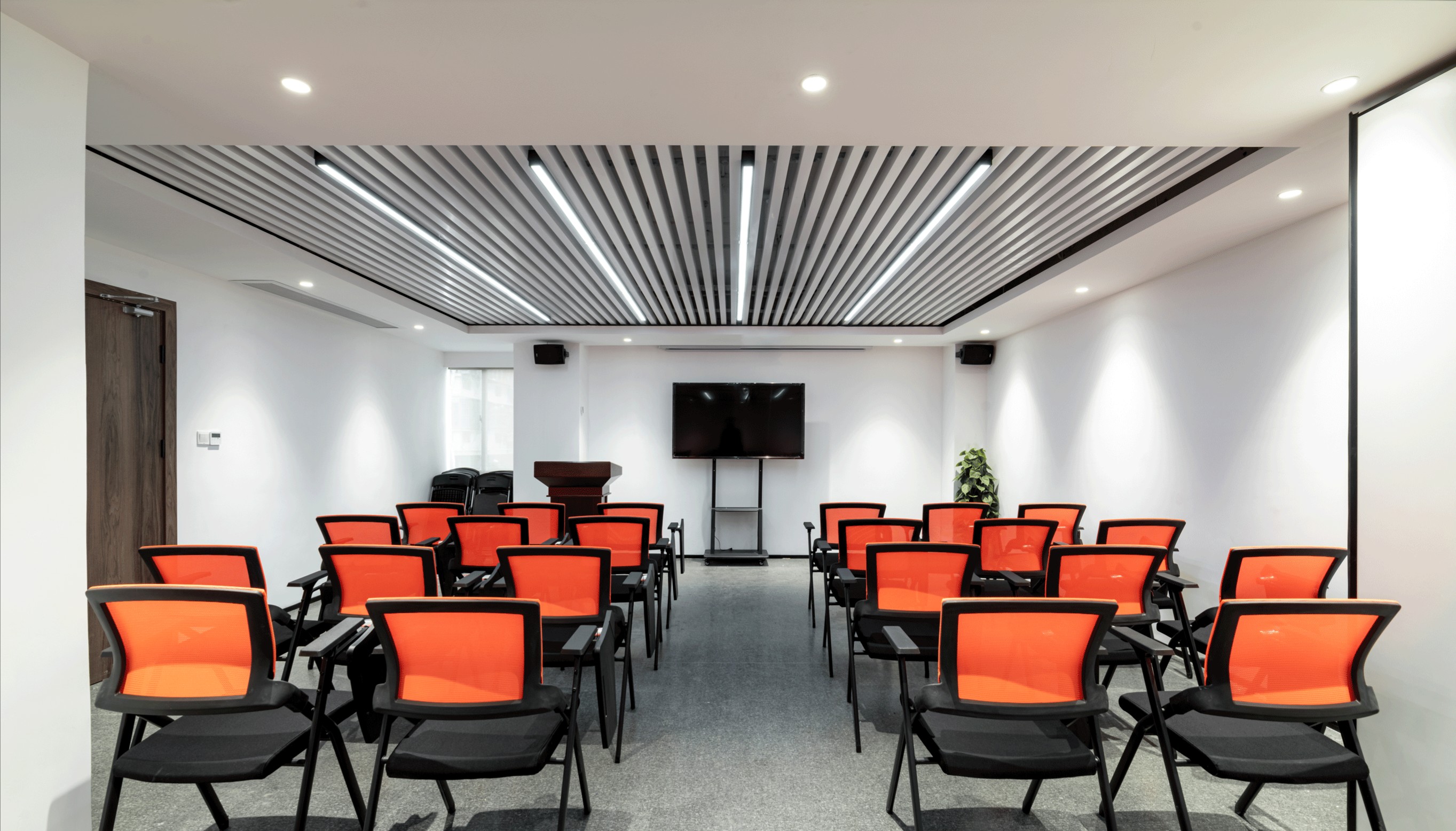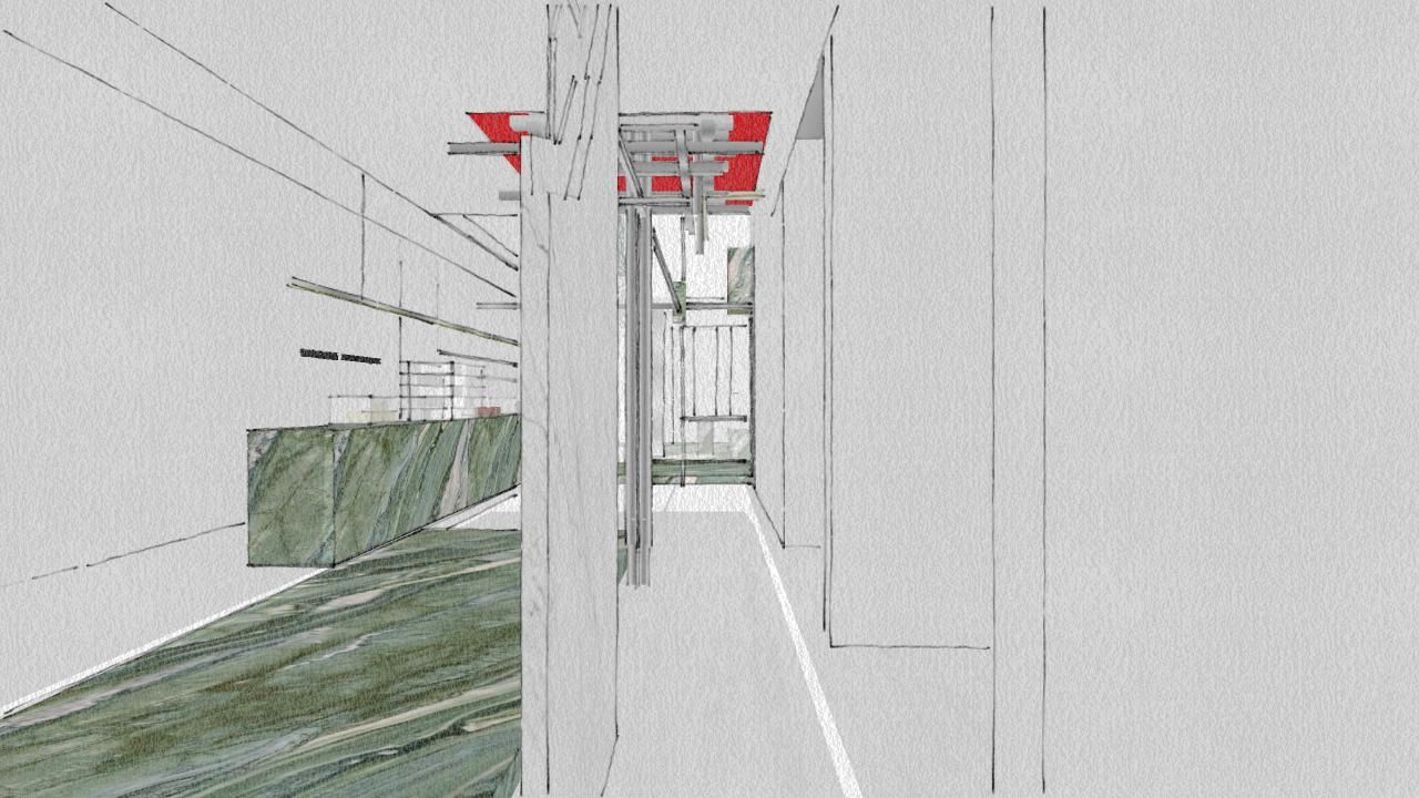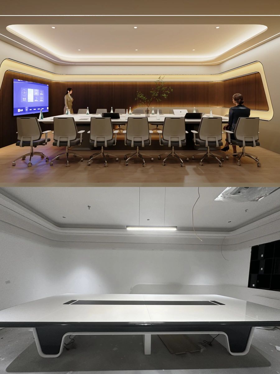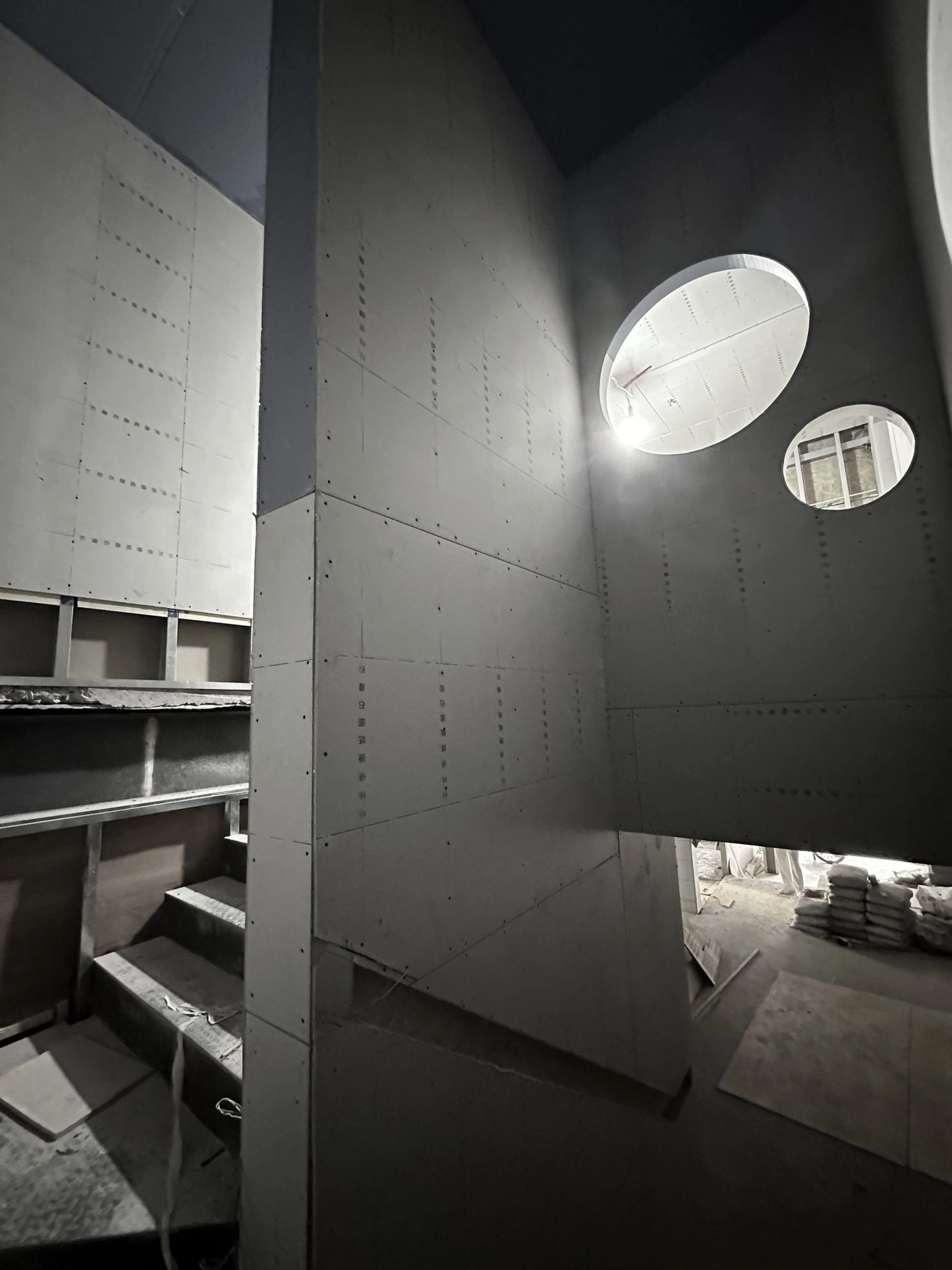 空间充斥着弧形,设计师将重要枢纽设计为一个圆柱空间,即独立又与整体机构融为一体,成为一个动线枢纽,一个视觉焦点。