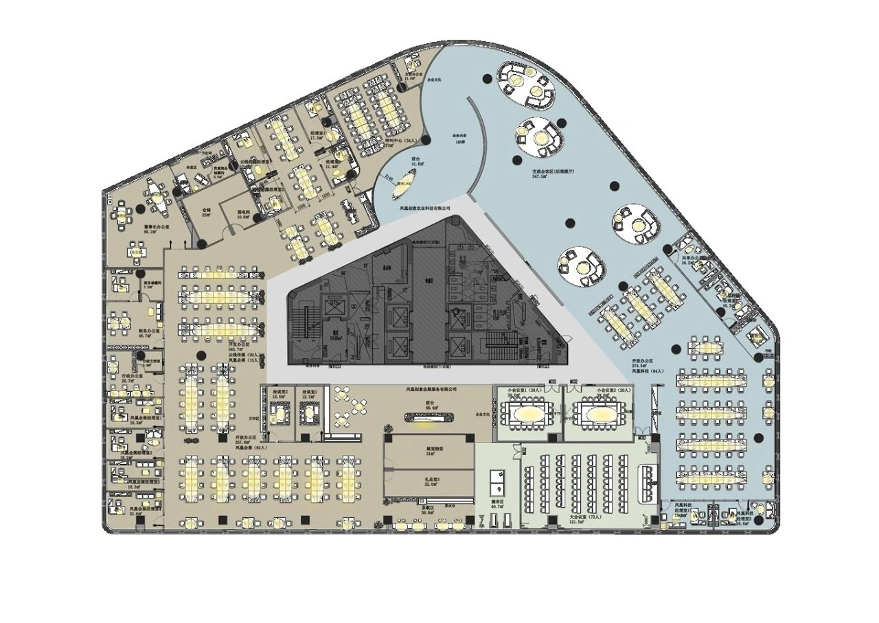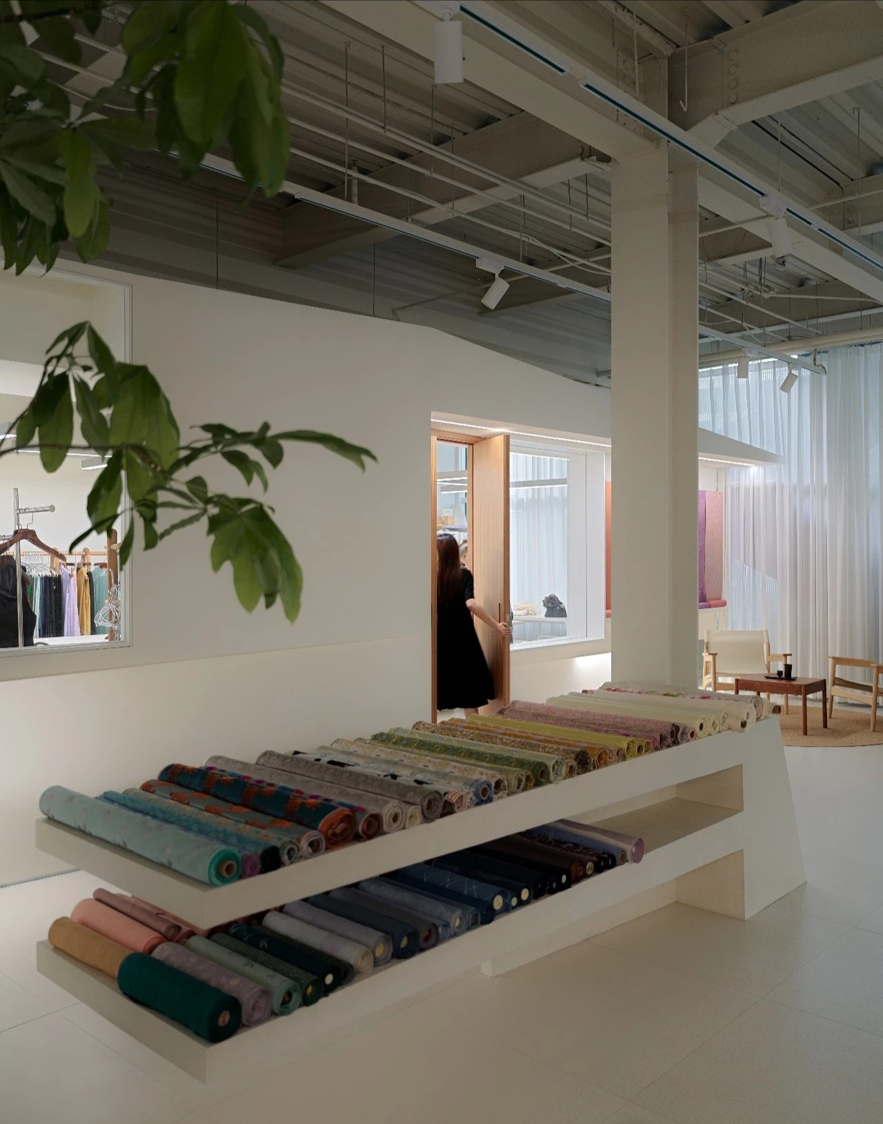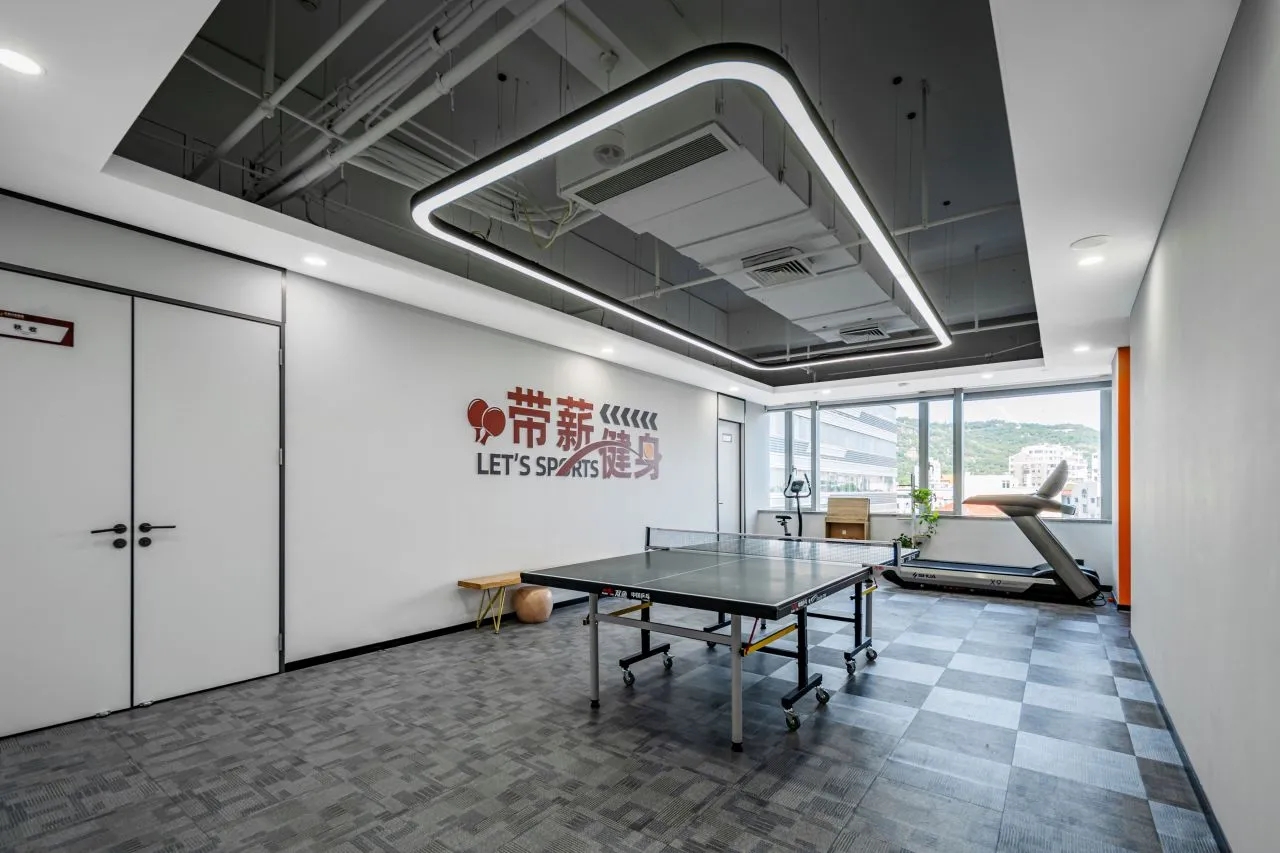 会议室保留办公区的风格设计,没有被框起的限制,重置了办公空间的距离感,实现了各功能区的融合延展,在规整有序的排列之中,可以看见的是人与人的高效交流合作。