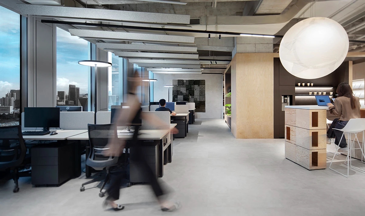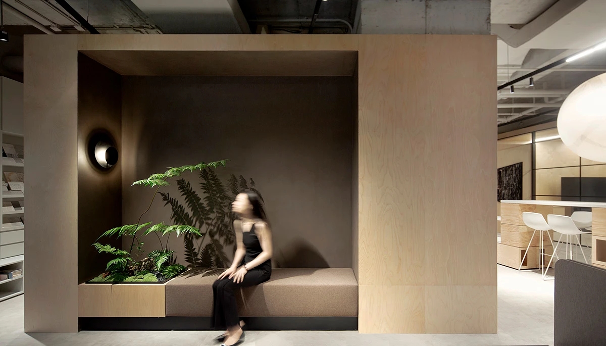 一工公司深圳新办公室的设计洋溢着青春能量、温暖又坚持了可持续性特色,用简单的材料打造出的空间充满活力和吸引力。主要饰面釆用了海洋板,它与天花、横梁和结构墙中裸露的天然混凝土相互协调,用自然的温暖平衡了工业的原始感。