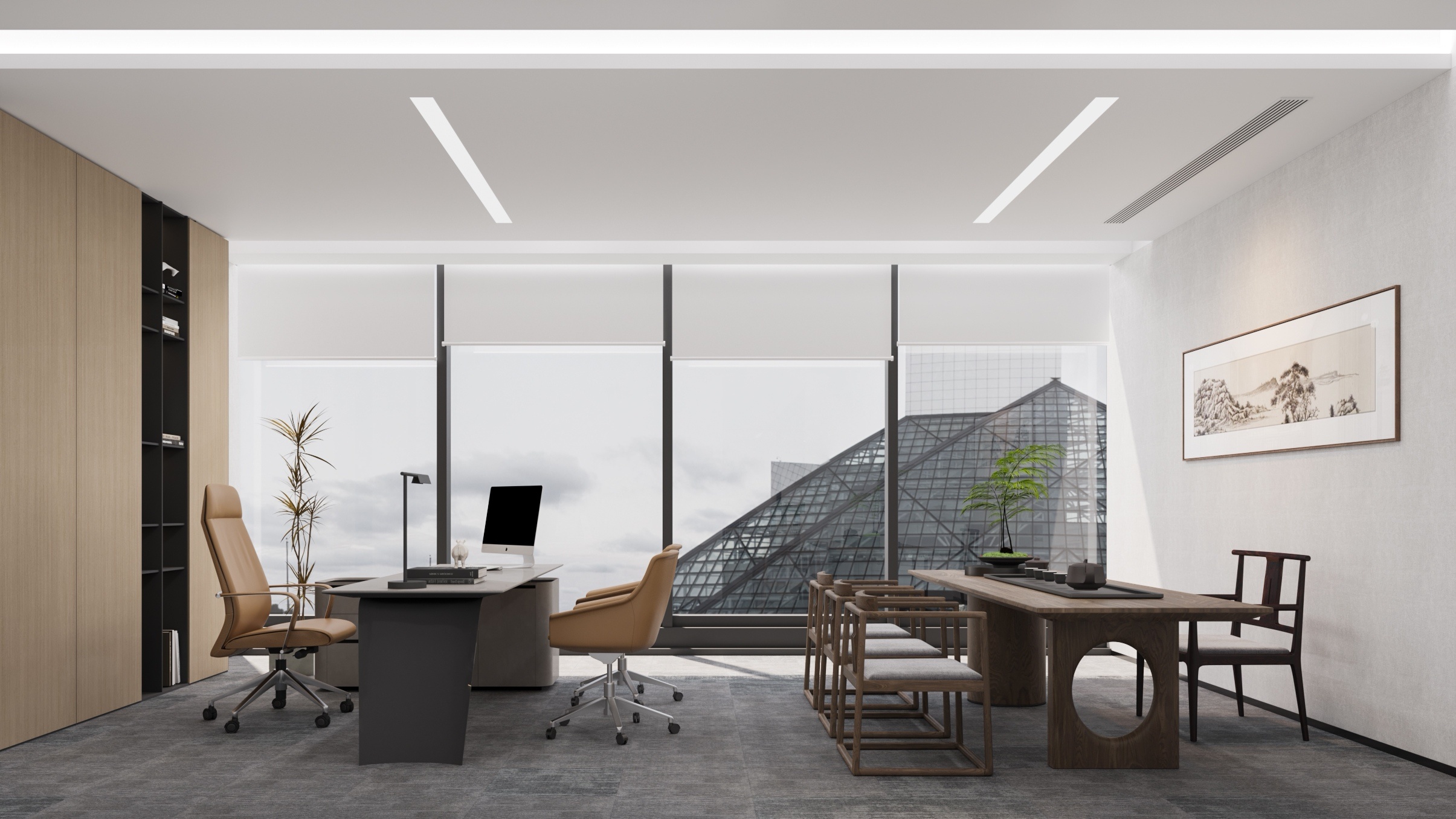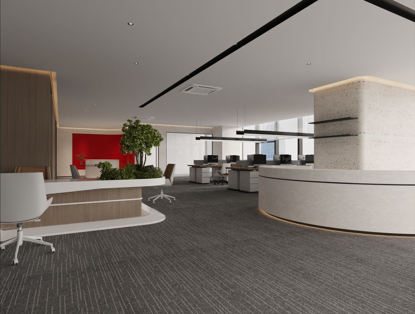 天然的木色、黑色和深摩卡色调、鲜艳的赭石黄和珊瑚色搭配,生物照明效果营造出动态阴影效果。集成智能照明和MAXHub技术确保空间可适应不同的任务。一工深圳新办公室体现了可持续性、创造力和功能性,营造了一个协作和灵活的环境。