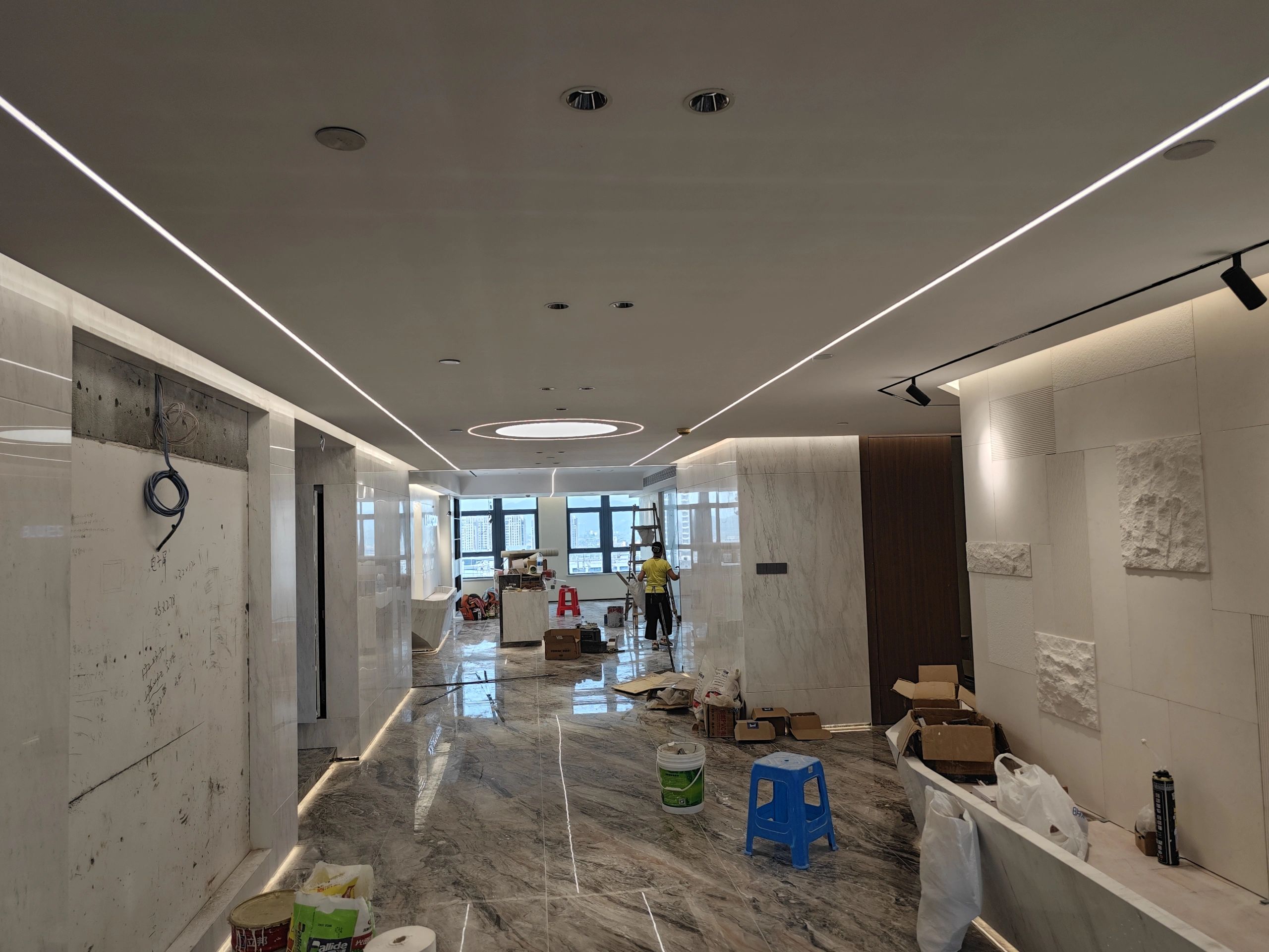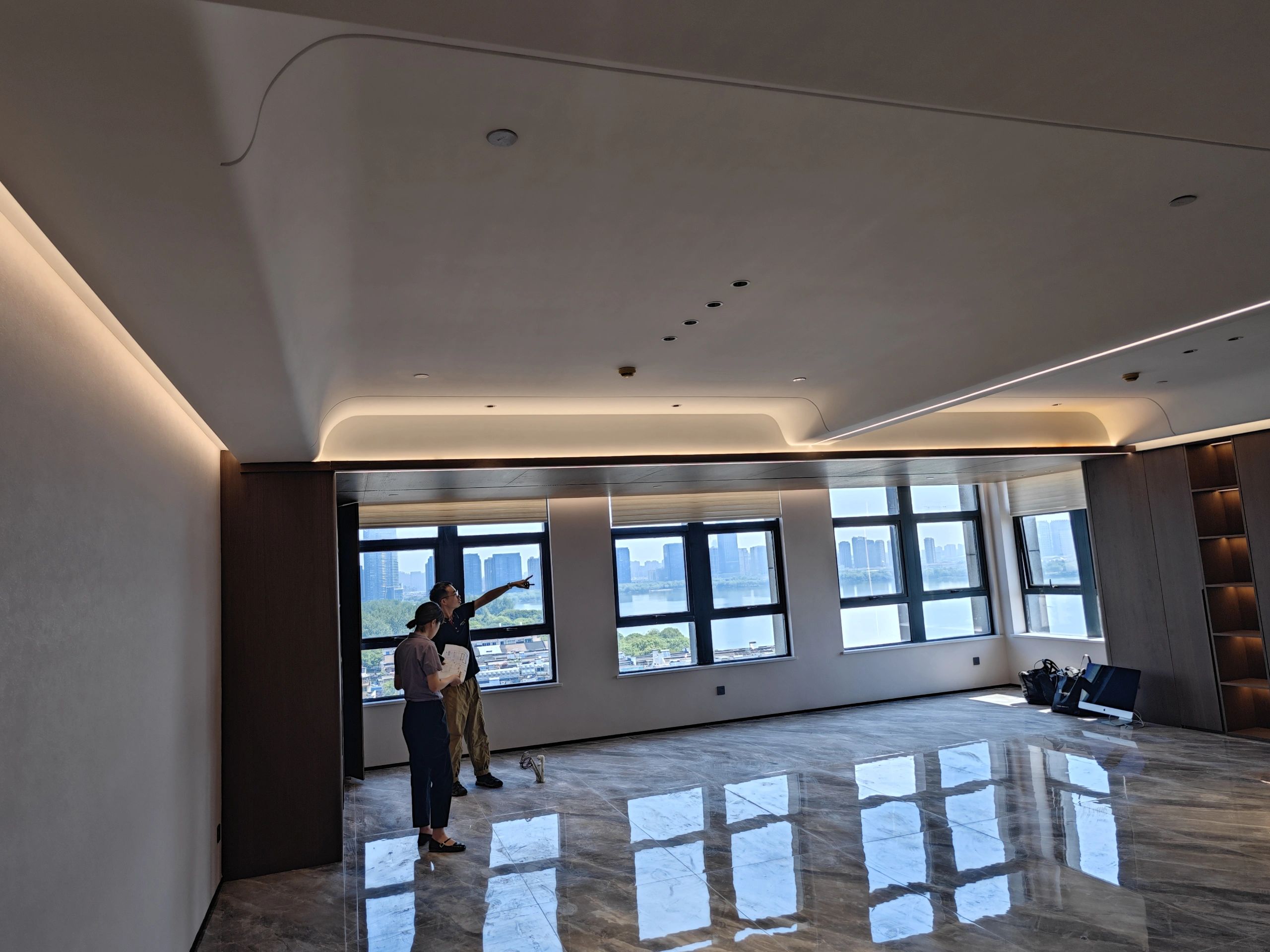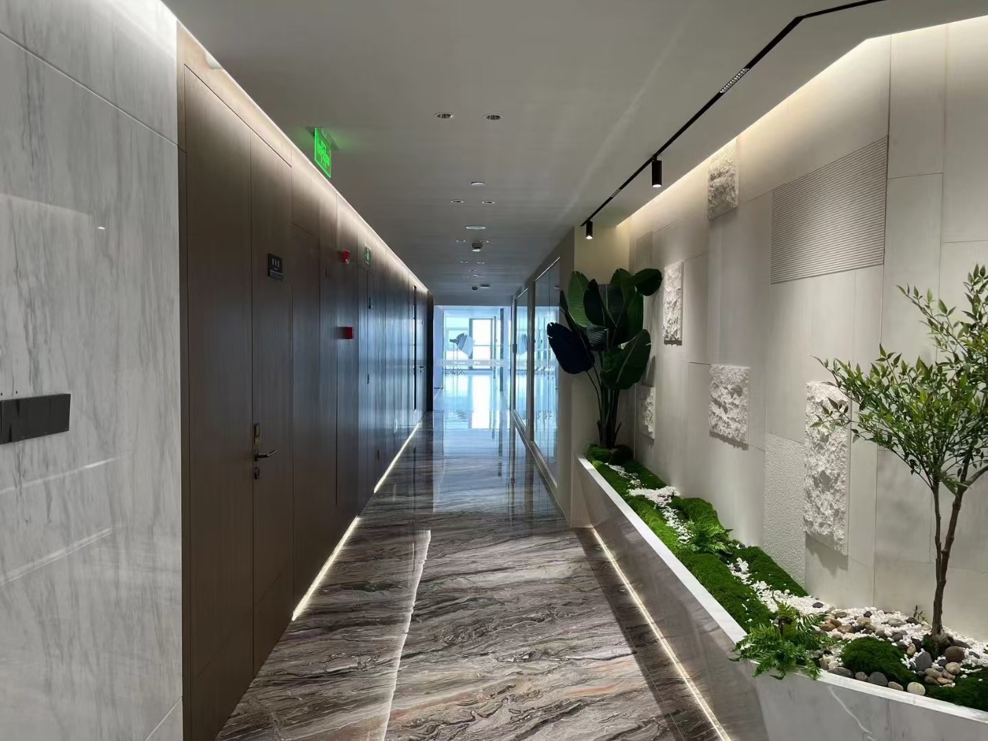 入口空间作为整体氛围感受的起点,每一位到访的“人”都可以瞬间感受充满流动感的艺术空间。感应门在有特殊的场景需求时可以整体全部打开,为空间增添更多的可能性。