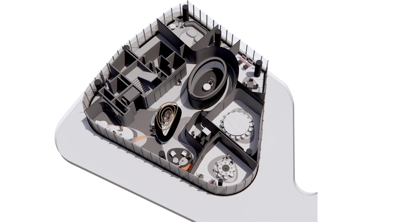 3F 三层作为办公空间的延伸功能区,通过入口处连续的曲线将公共空间与私密空间巧妙地区分,进而塑造流动的空间。