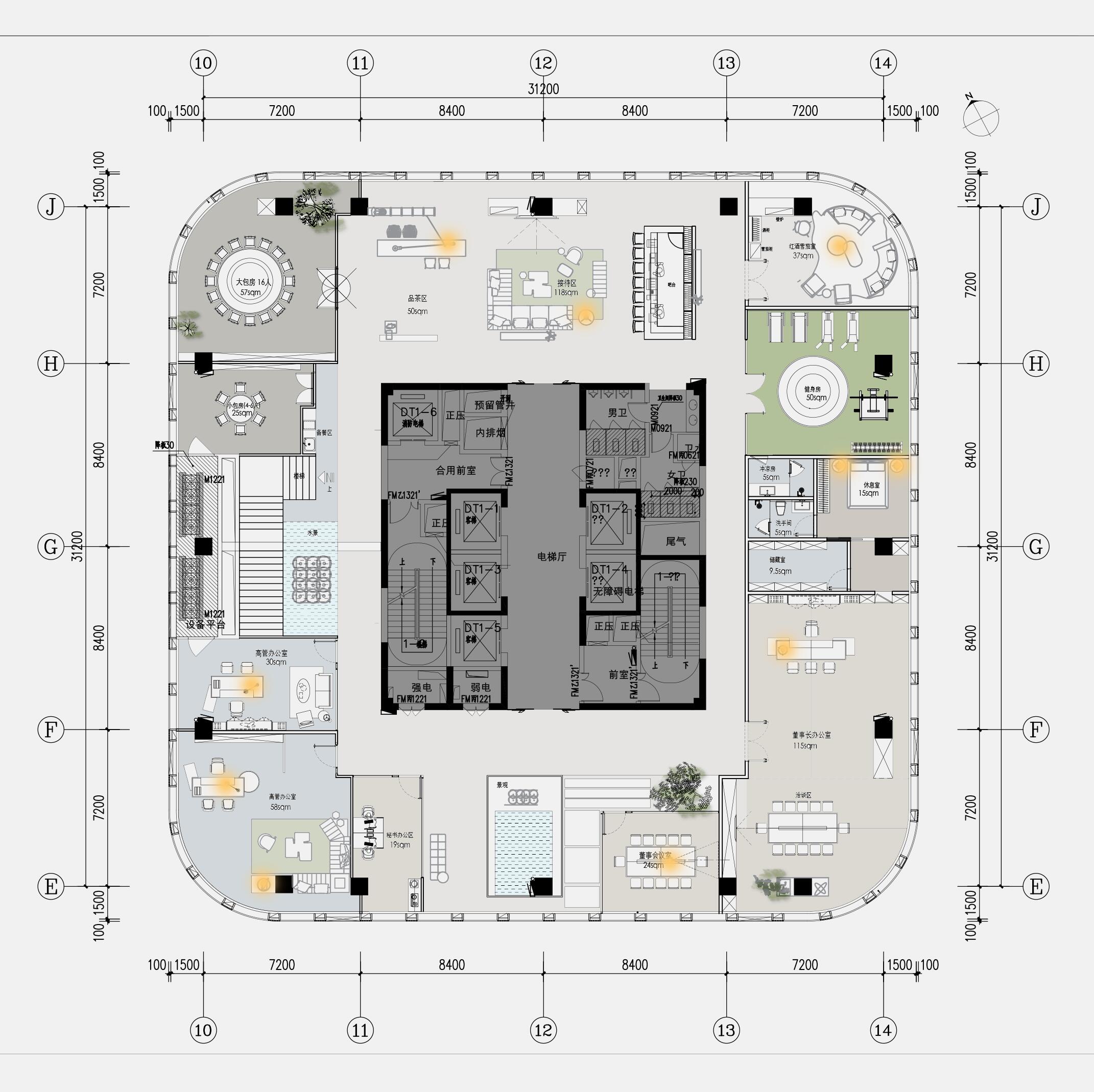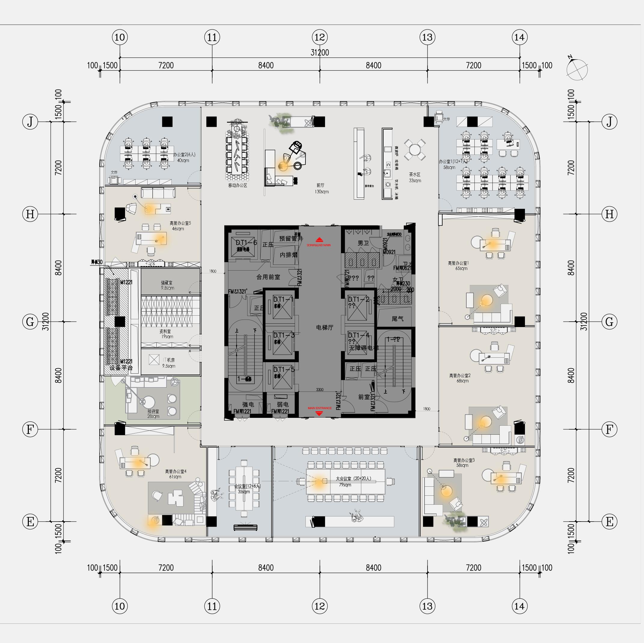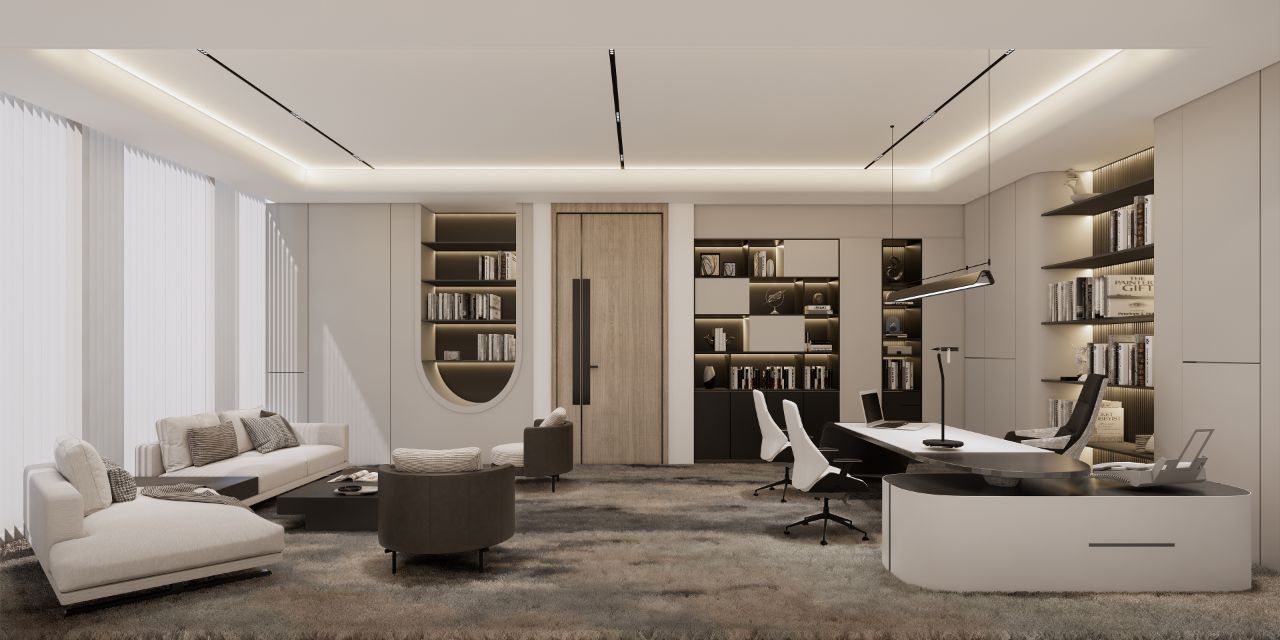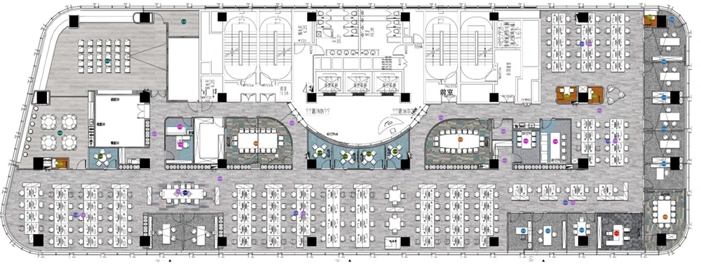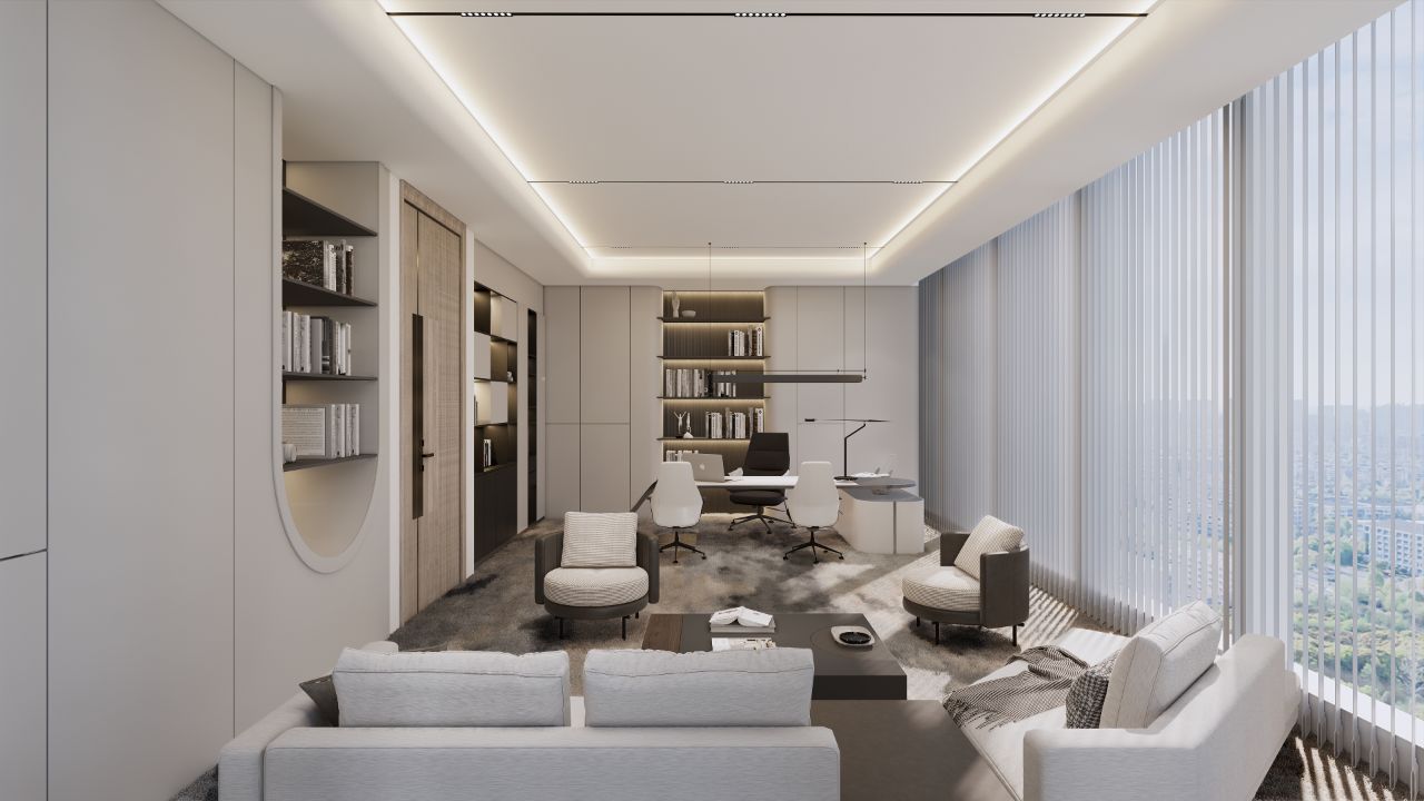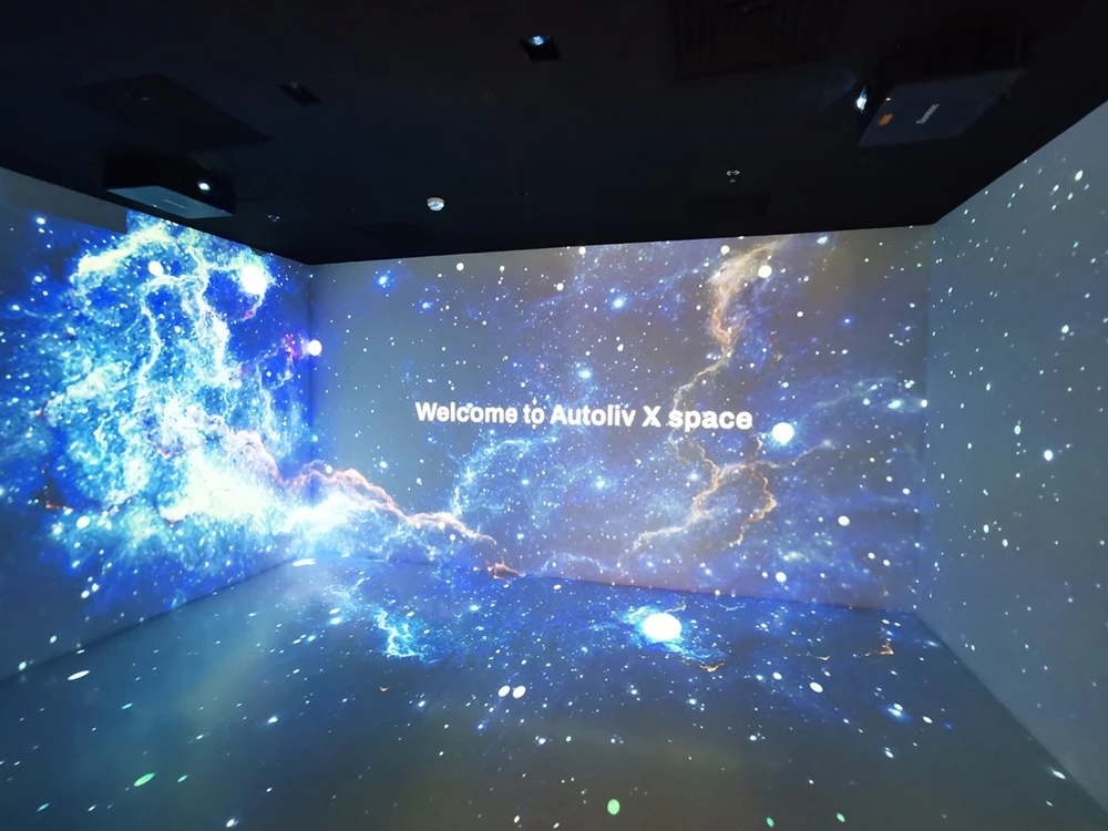 以企业的文化和元素,结合现代,科技的手法,趣味性的体现出企业对人文关怀,轻松活力的新工作环境,怎么与当下疫情下的安全卫生及防控相结合。整体设计打破了传统工作环境的氛围,设计师打造出一个“以人为本”的办公,展示,休闲和生活的个性空间,助力客户的进一步发展、创新和团队凝聚力。在这里,每位员工都能找到最适合自己的工作空间,以自己喜爱的方式和愉悦的心态完成每天的工作。Saving More Lives 是企业的目标,也是这次设计师要在空间里体现的主题。在电梯出来,一步入半圆弧的接待前厅,马上看到的是以安全气囊元素为主创意的,带灯光变化的半弧造型墙,时尚大气。在这纯粹的黑白灰空间里,一个纯白色飞驰动感造型的前台安安静静的摆设在那,在不使用的时候,它也是一个时尚的艺术品。和背镜墙相结合,体现了速度与安全的设计理念。
