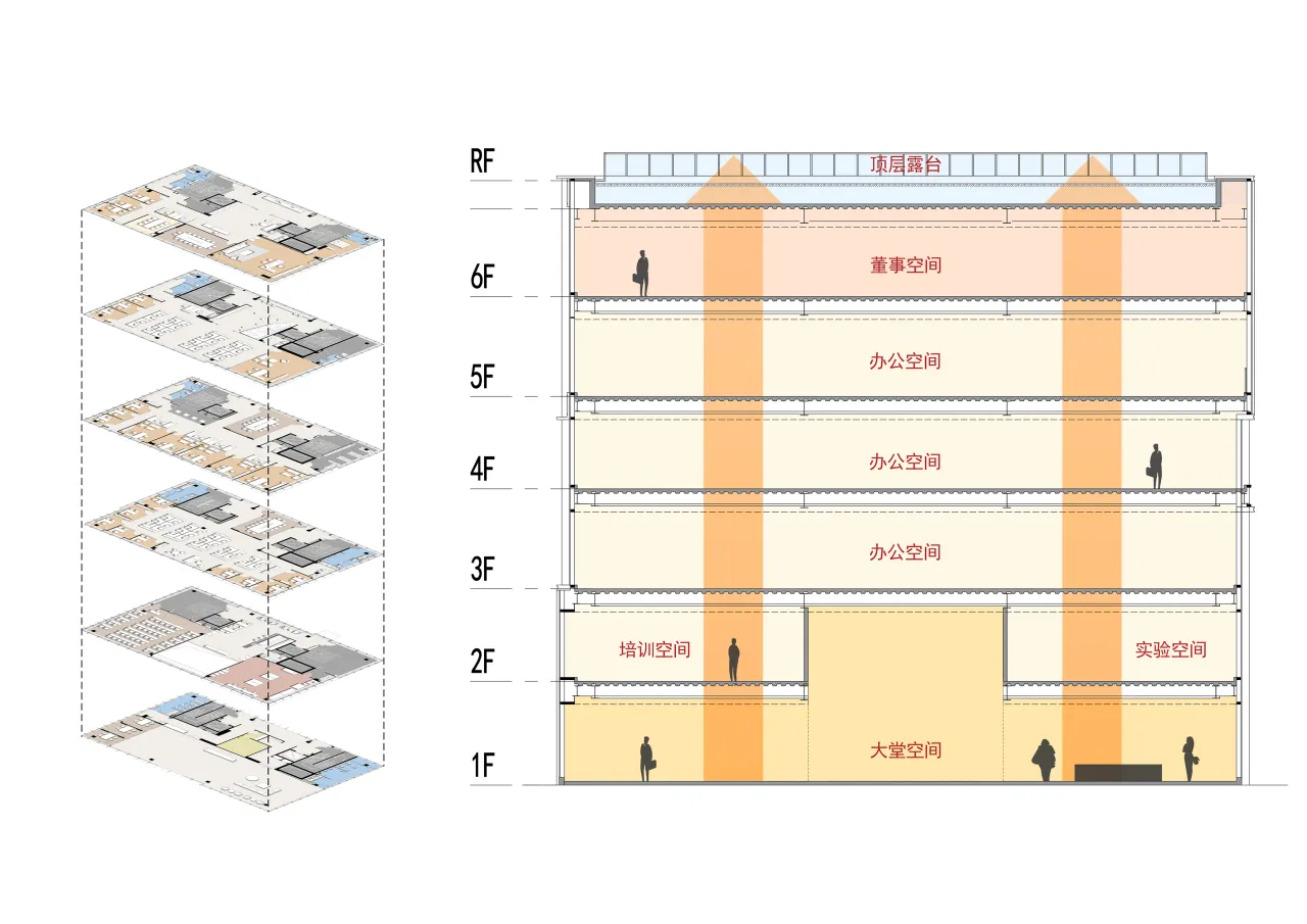 拓宽视野,彰显企业微笑服务理念多功能区采用玻璃幕墙,引入自然光促进楼层间视觉互动营造开放互动的企业环境