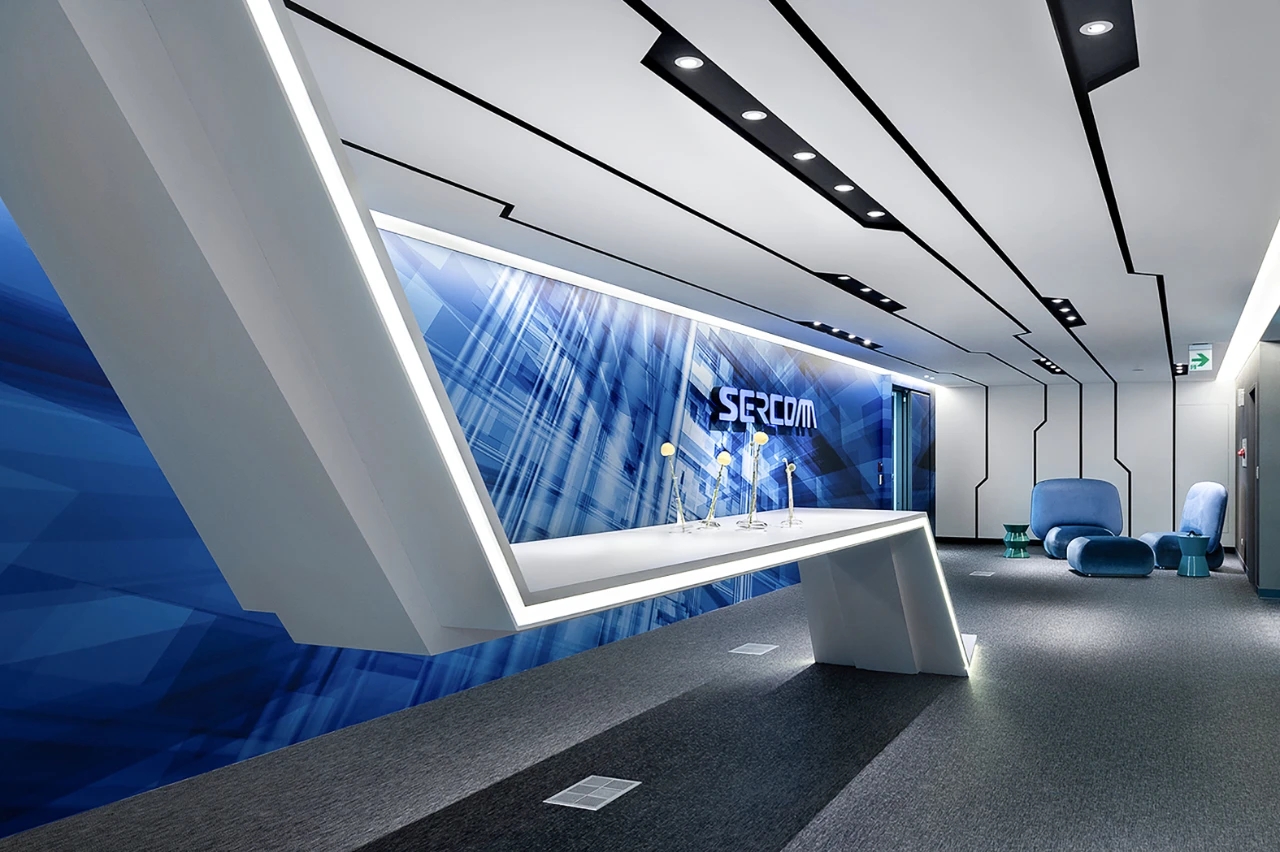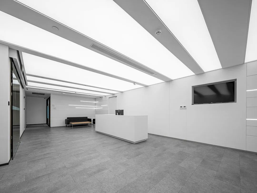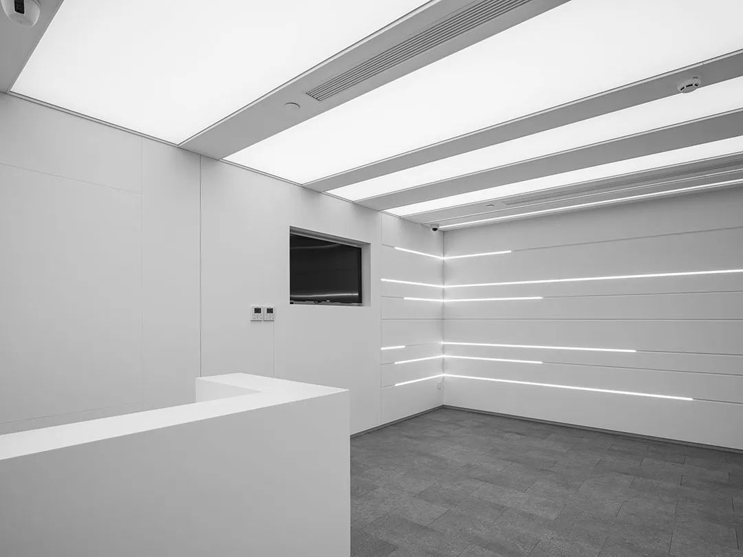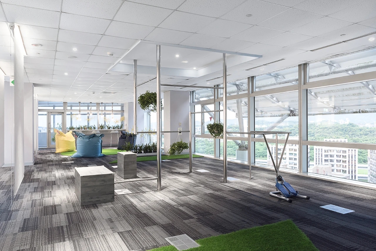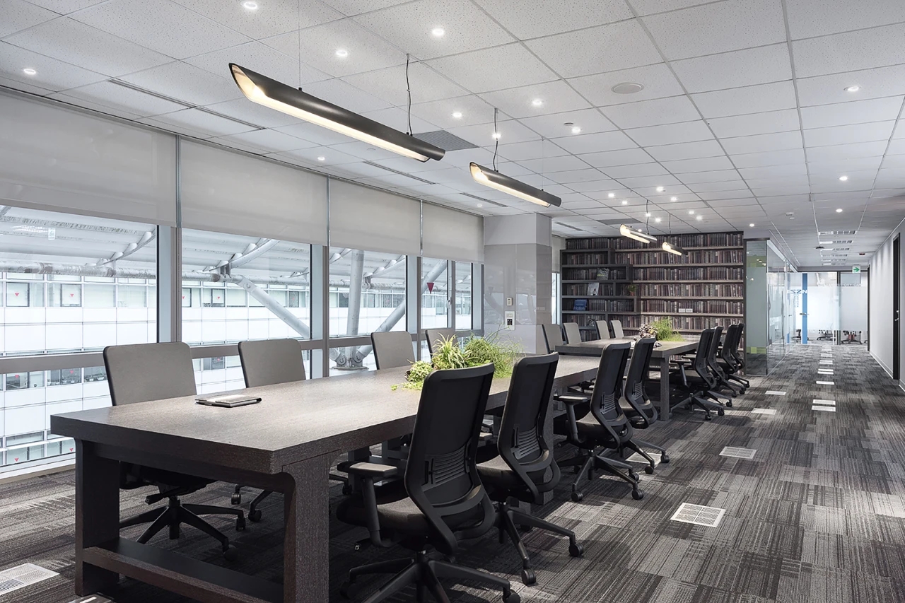培训室墙面则采用吸音材料毛毡以极佳的降噪效果将办公空间的舒适体验达到平衡与统一侧面视窗打破常规布局更显环境通透