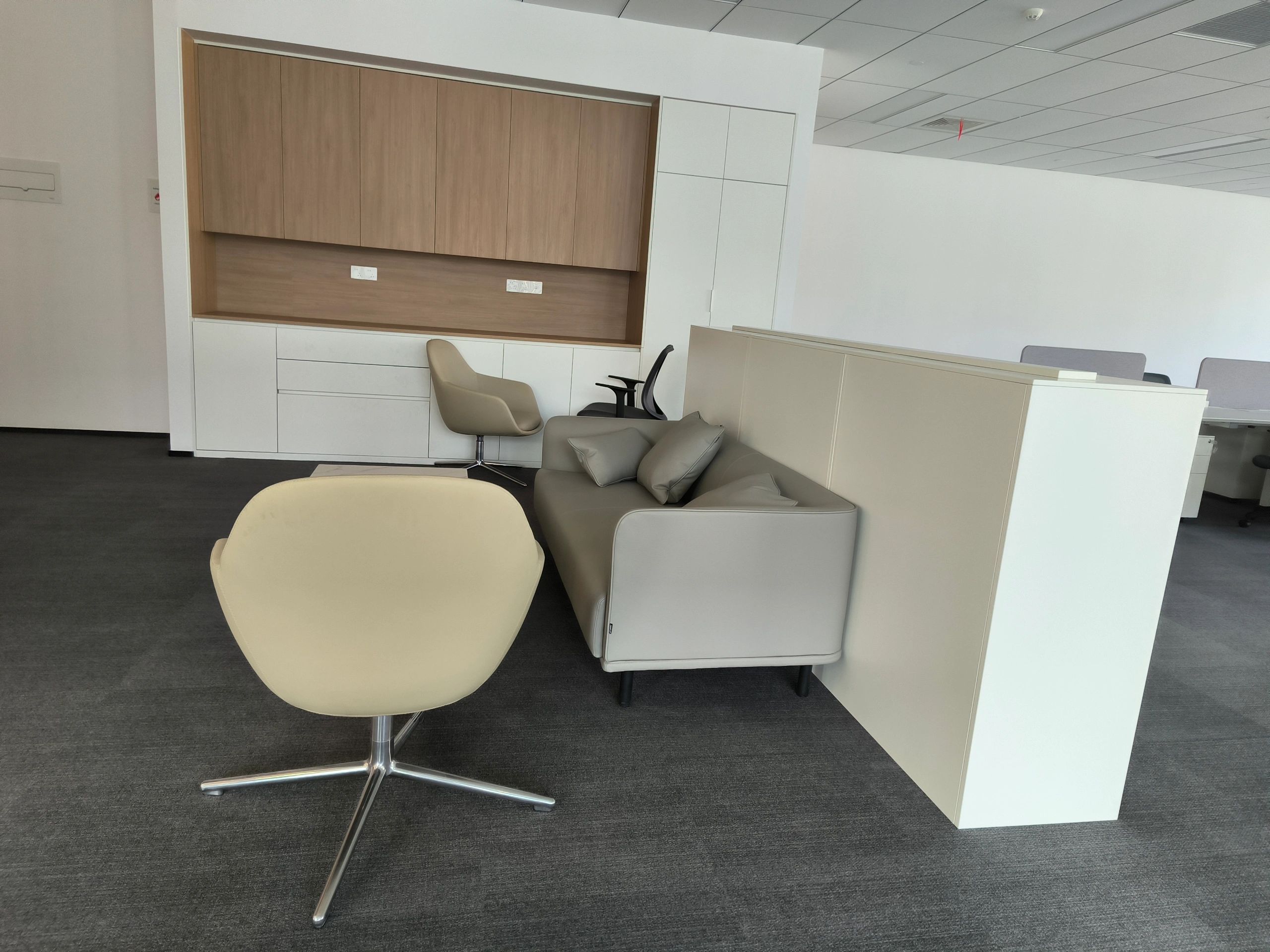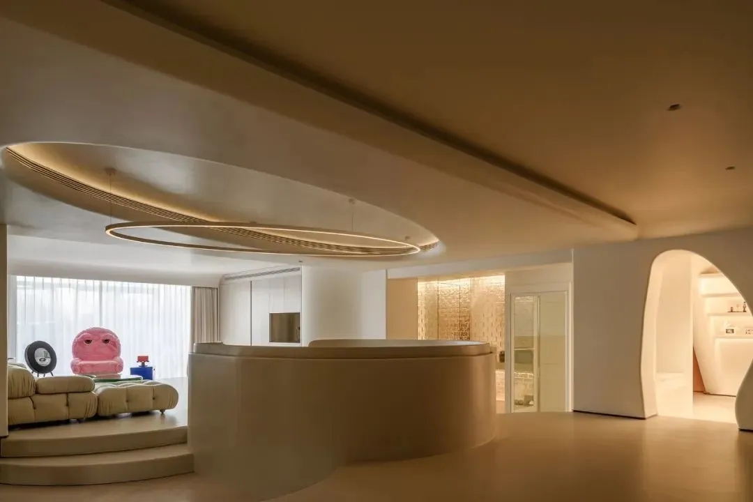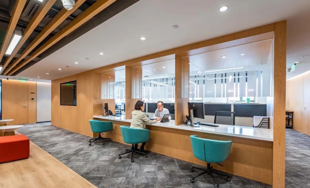 从进门的接待区开始,整个空间界面是呈现打开的状态,试图让到访的客户,能获取到开阔、通达的视野感,潜移默化中能够感受到空间赋予品牌的气场。双向分流的动线布局,访客及员工可以以最快路径进入到需要到达的区域。