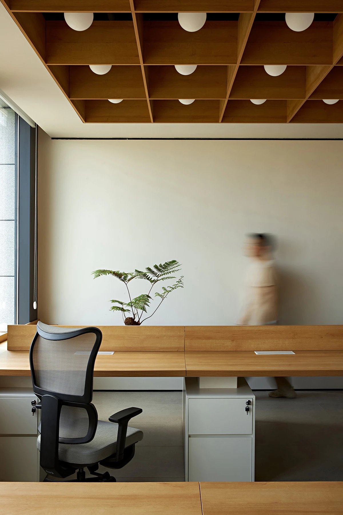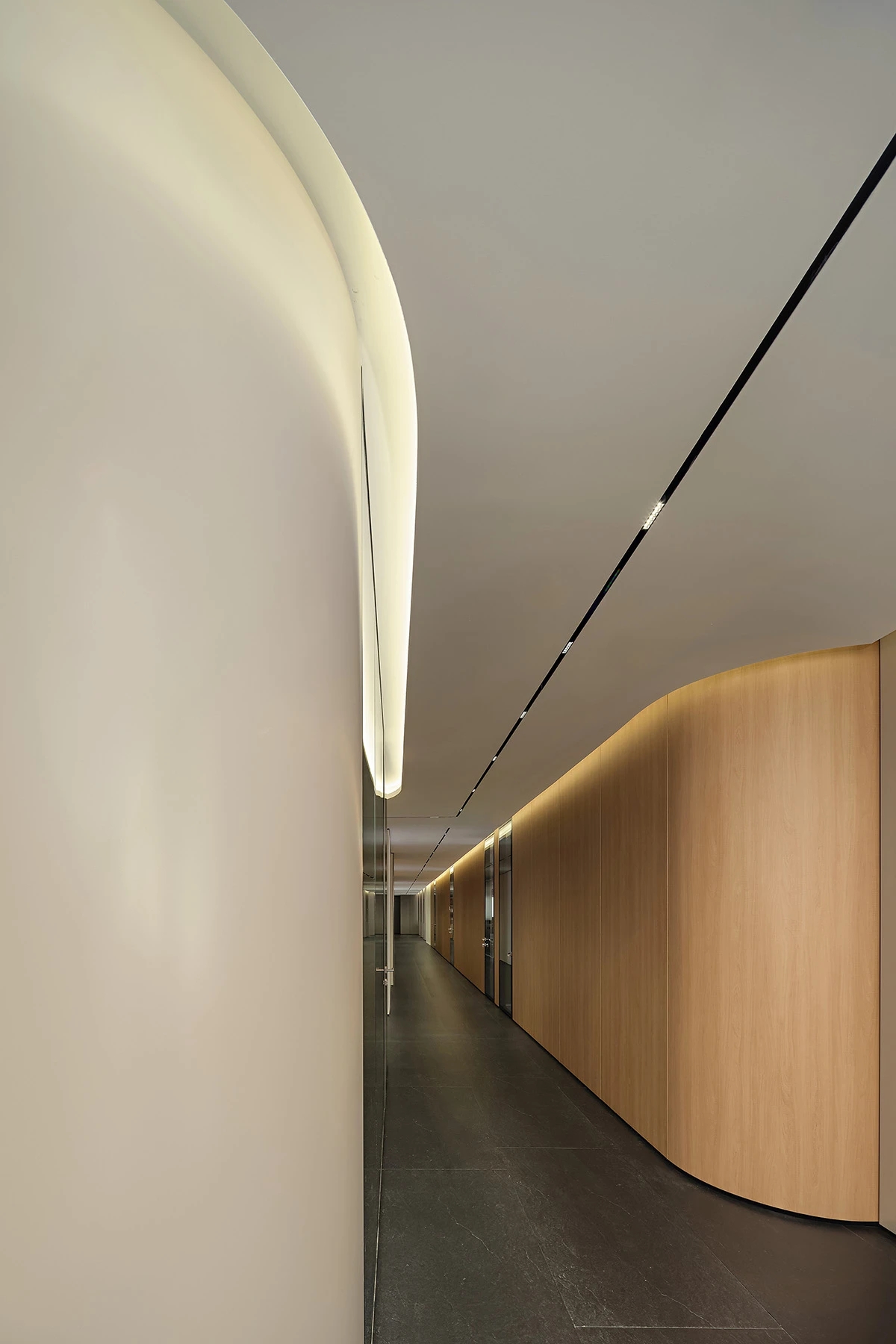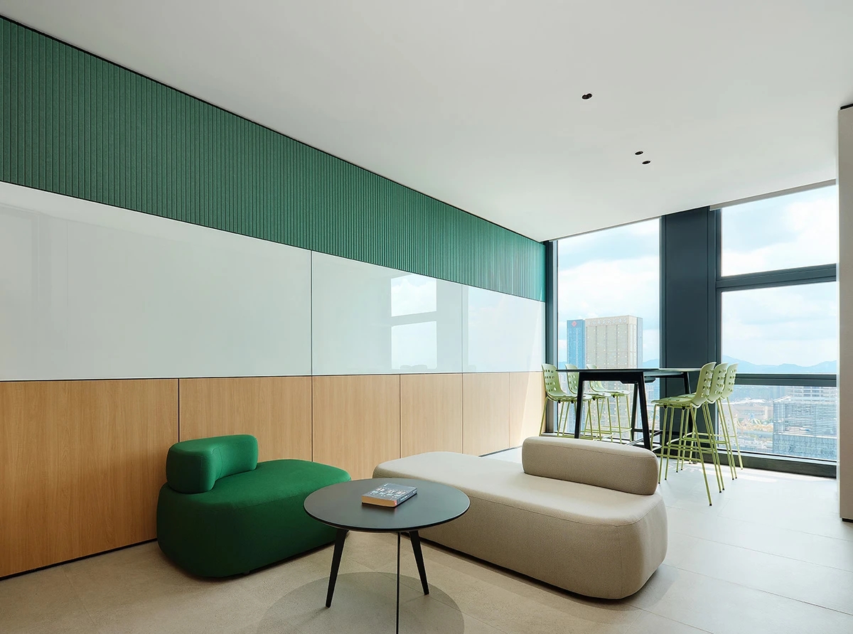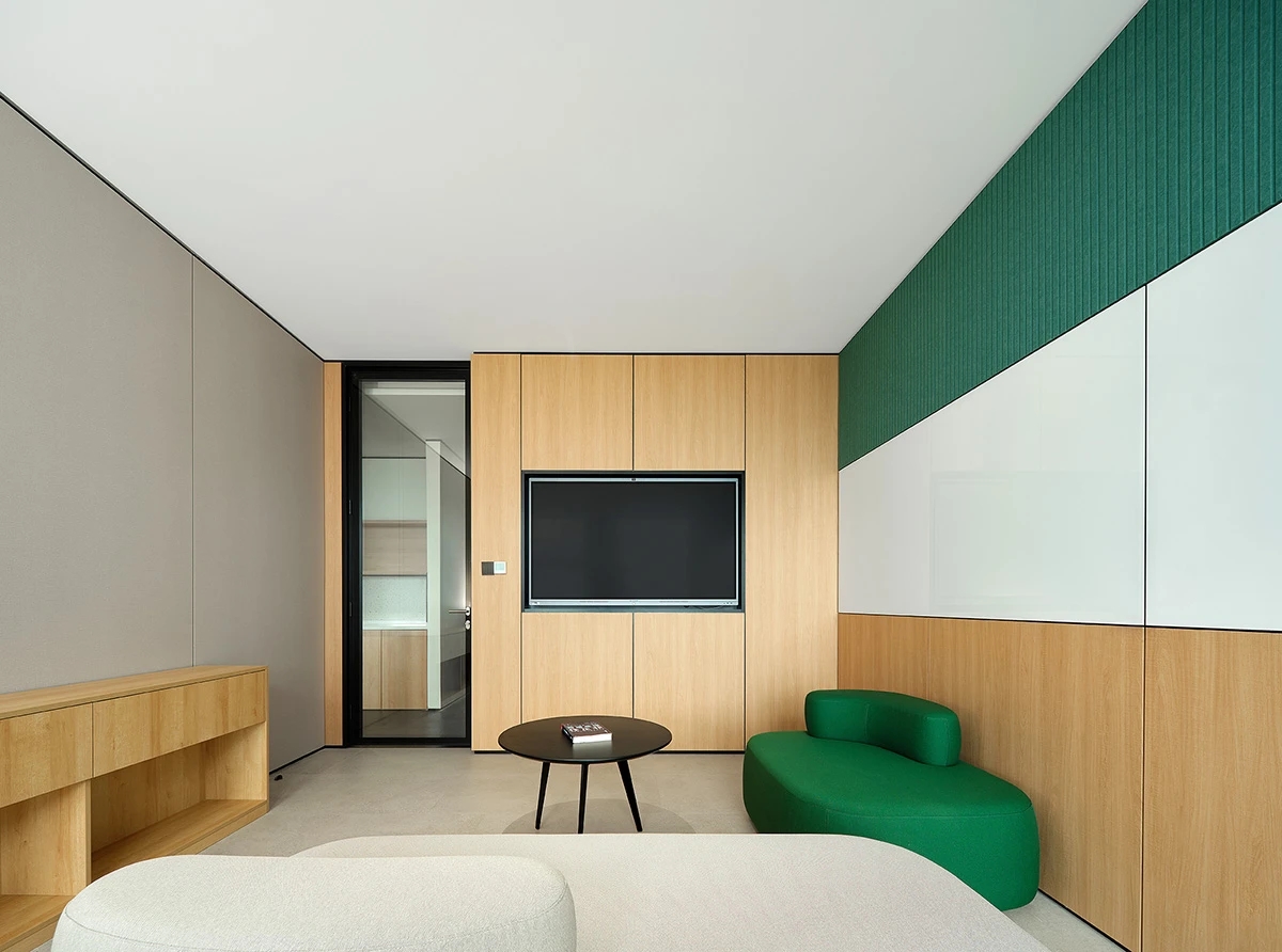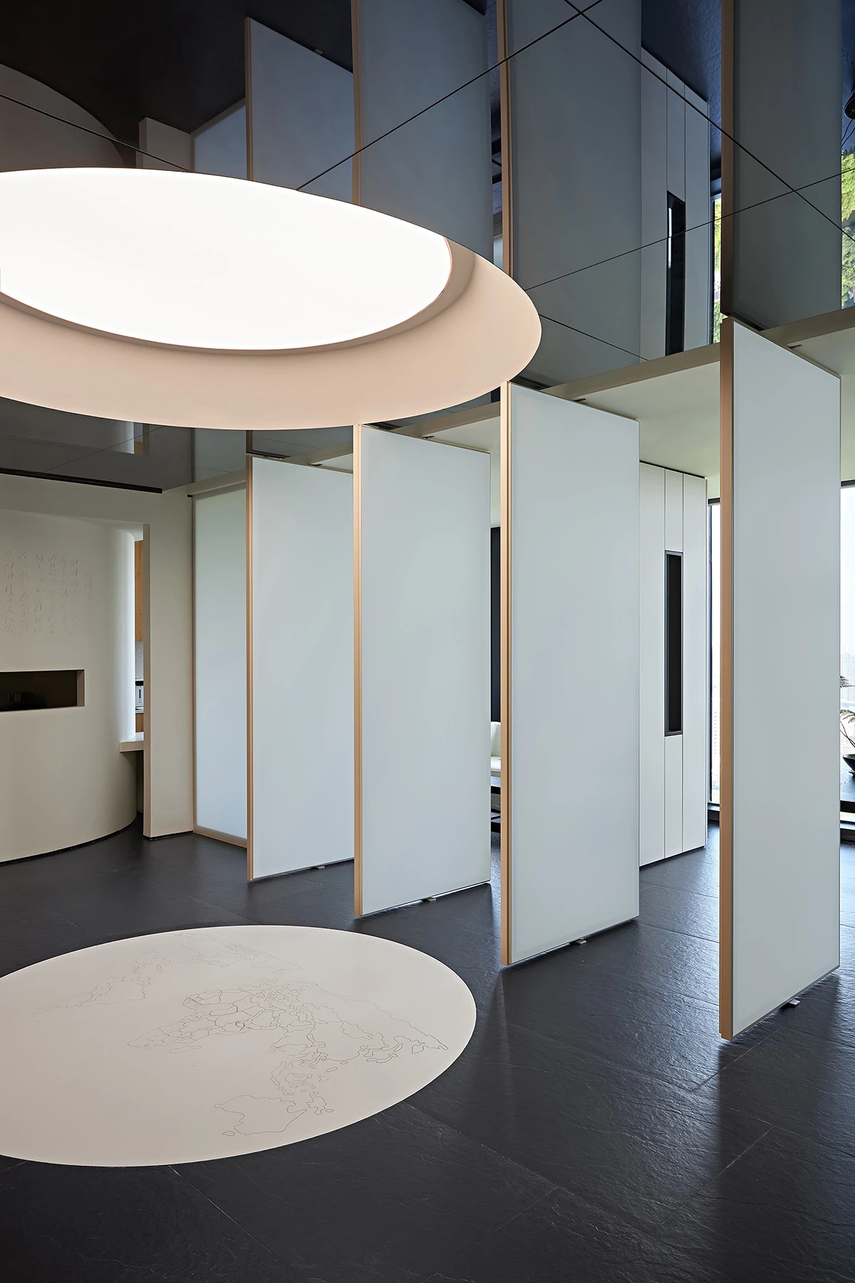 对办公空间进行重新定义,潜心探索设计的无限可能性,用前卫的想法将过去传统的办公需求与未来现代相结合,不断碰撞后产生新的极富生命力的办公空间。在此空间中,对空间进行重构,打破传统大堂使用的局限性,将大堂,前台以及洽谈区结合,开放式空间的设计最大化的利用了空间,兼具功能与美观性,开阔明亮,塑造一种灵动之感。旋转隔断的应用,打破了固有空间的局限性,动静结合,曲线与直线,方形与圆形的交响呼应,营造空间氛围的同时,给空间创造了更多的延展和可能性。通过对材料语言和空间形态的精简,打造一个”简洁,透明化,动静结合”的复合型空间!