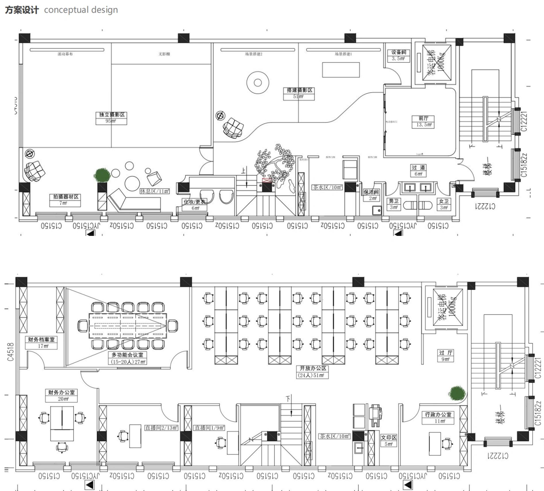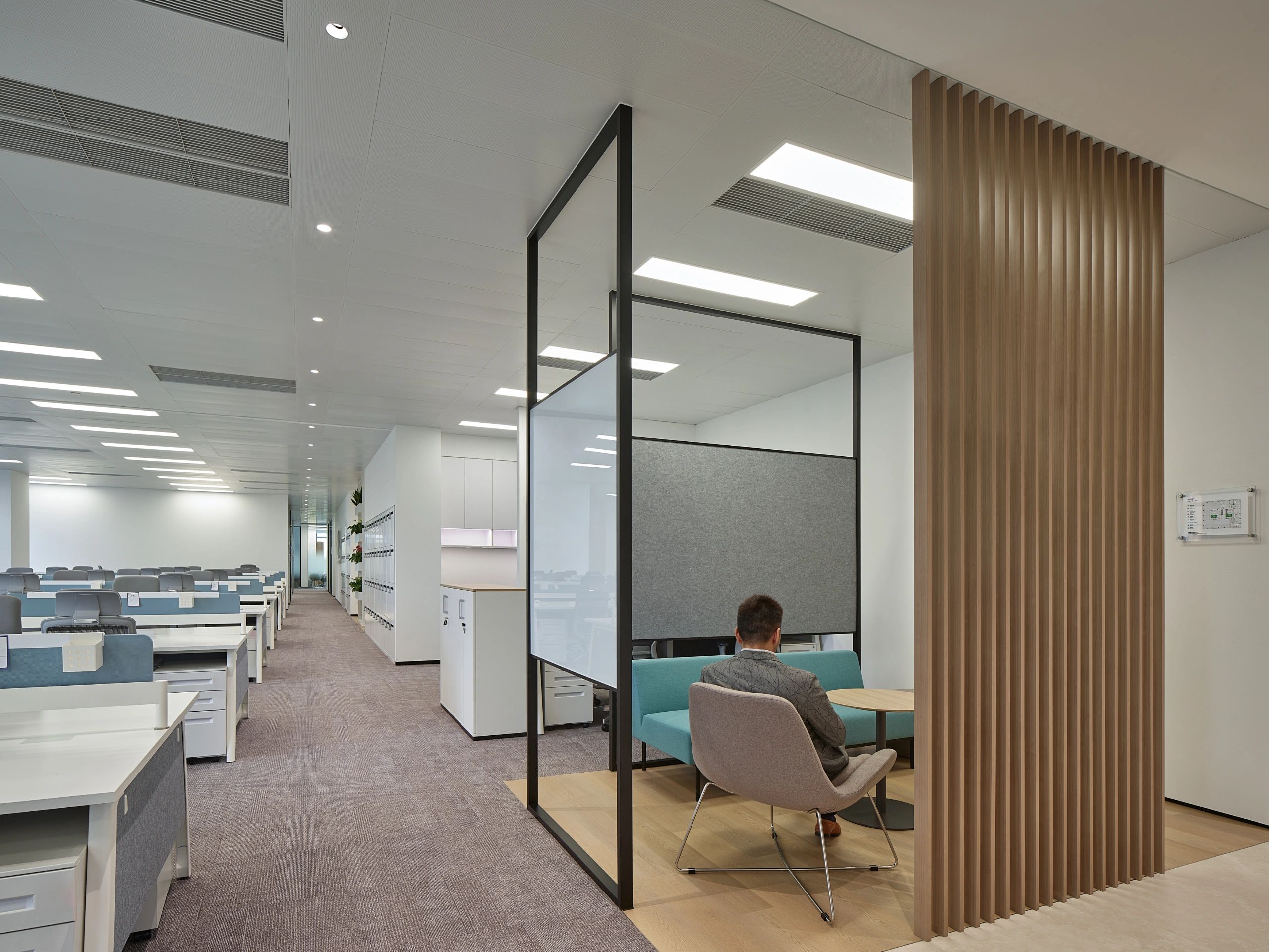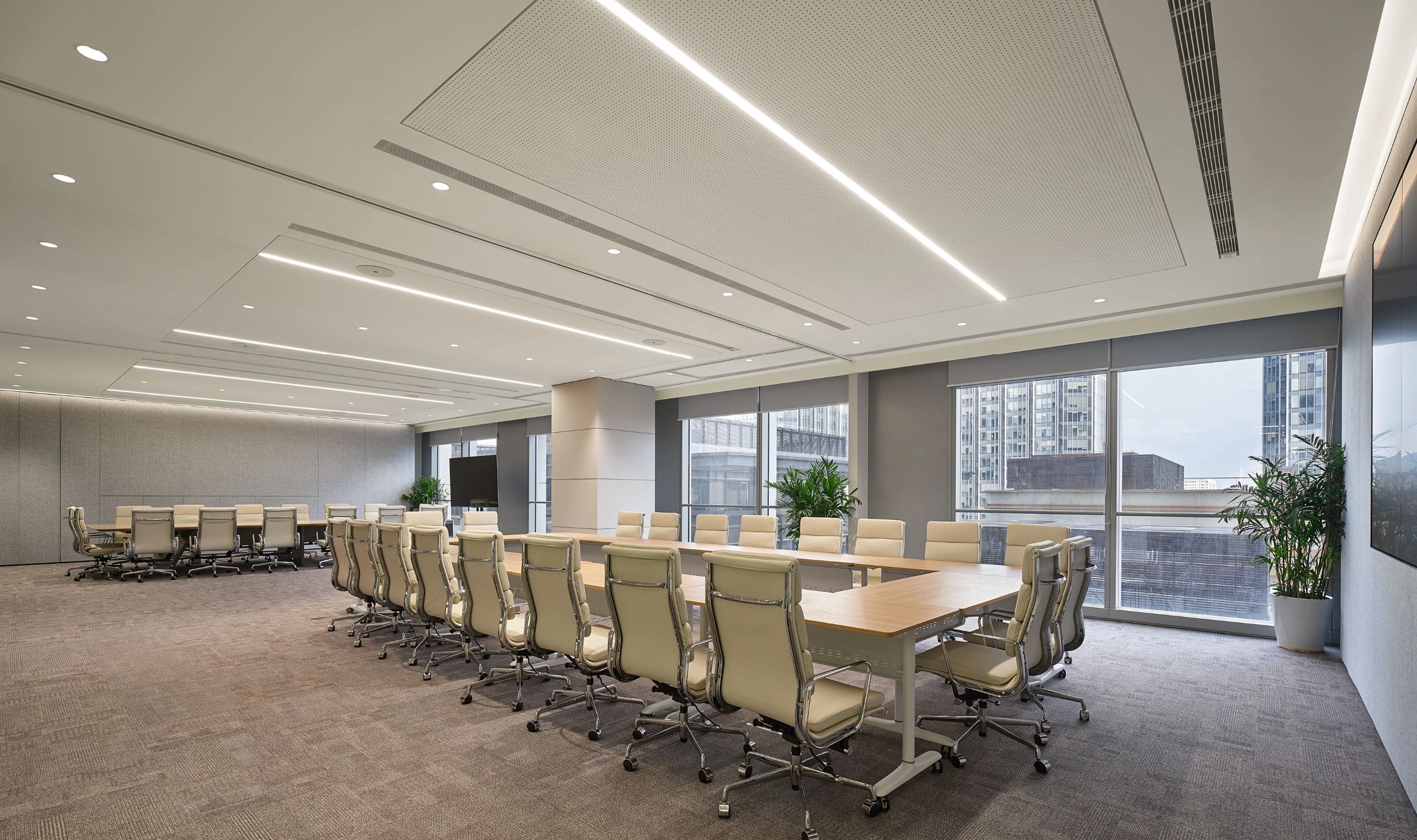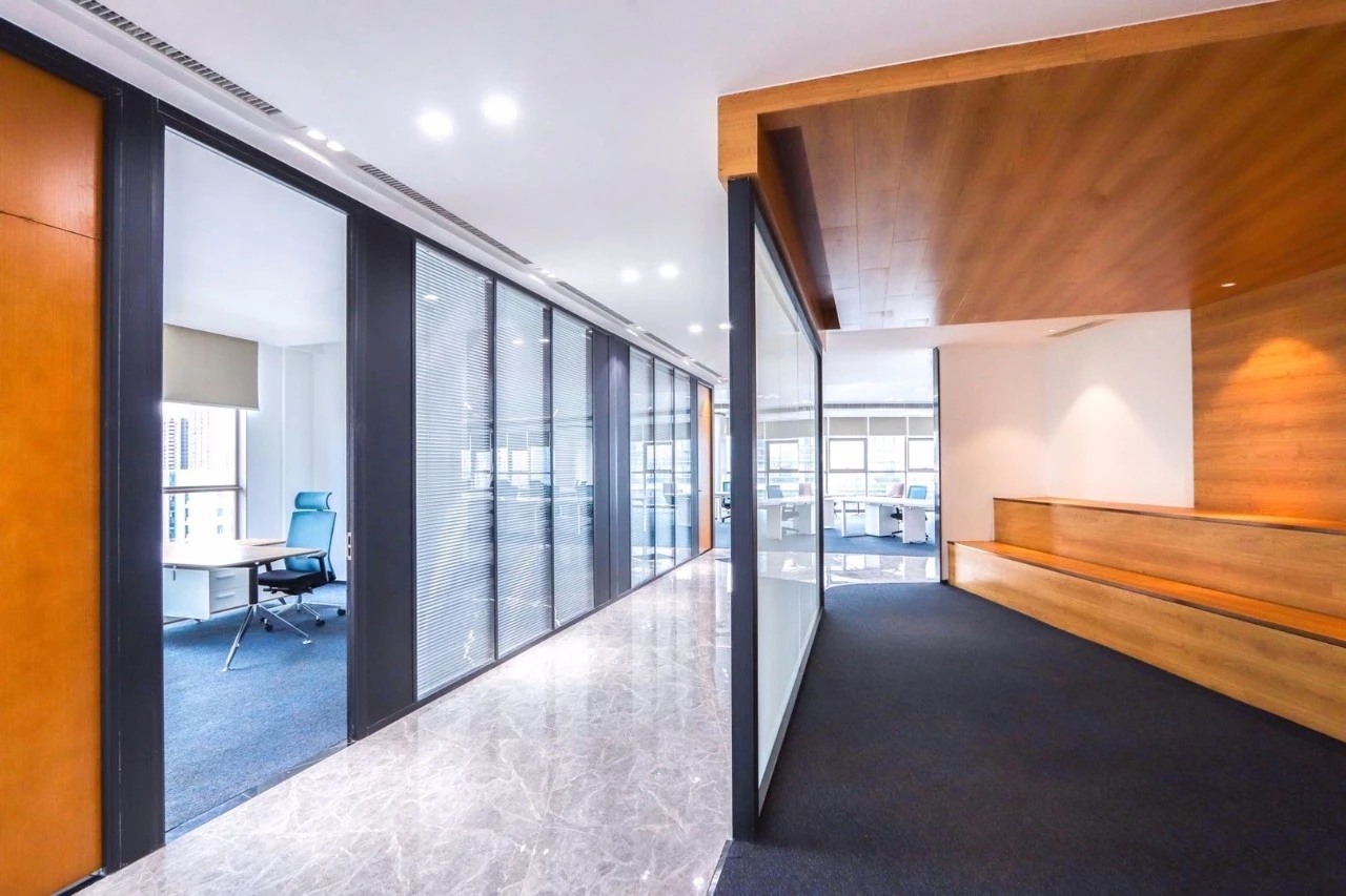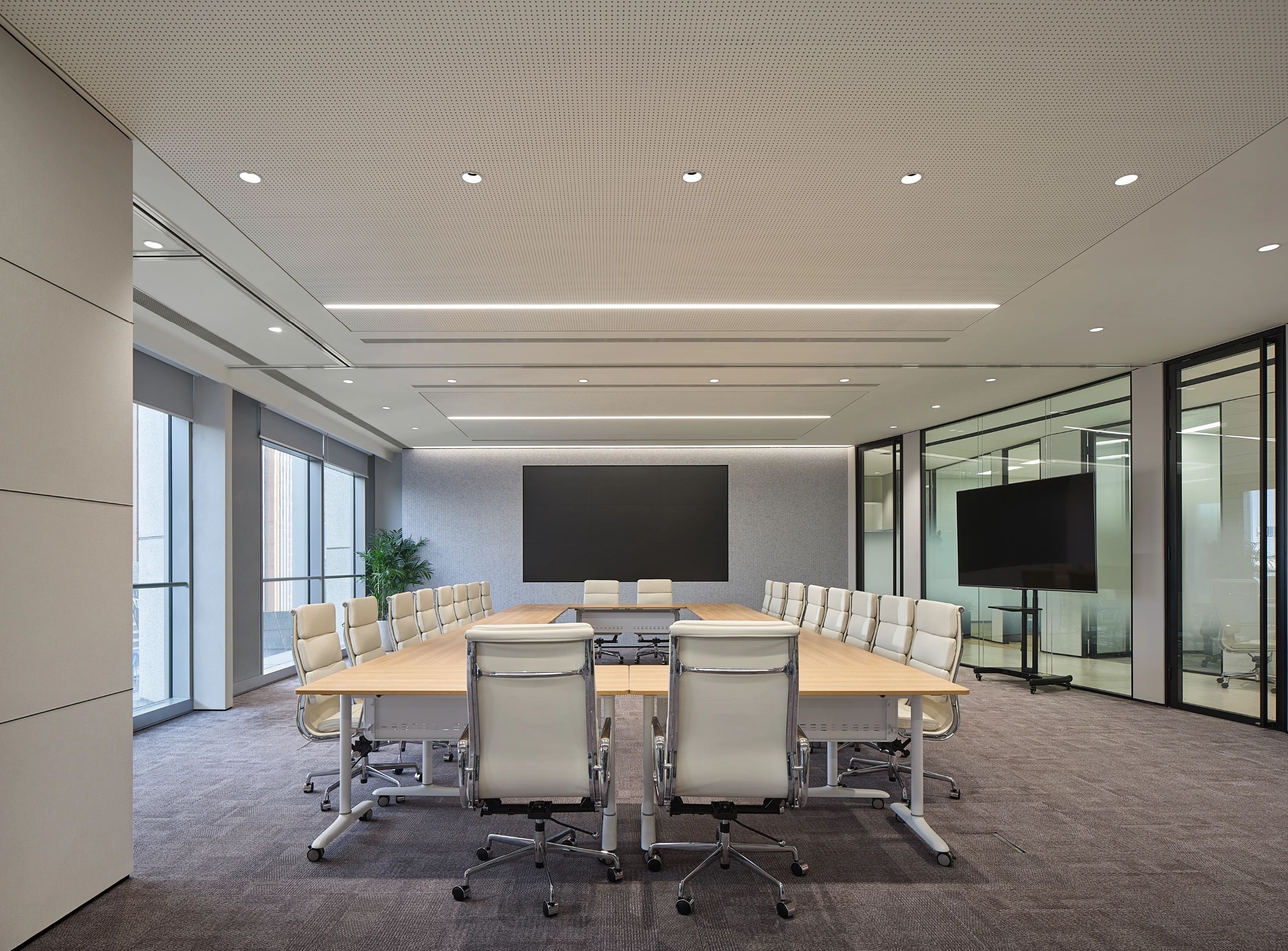 通透空间透明材质营造空间的通透感隔而不断,移步换景。考虑到使用的便利性办公室与展厅的多重变奏空间既要独立而连贯又互不干扰随着办公空间向公司高层管理区域的延伸家具及空间用色渐趋沉稳自然而然的区分了办公空间的性质使整个空间无论从功能性质还是色彩上都层次分明